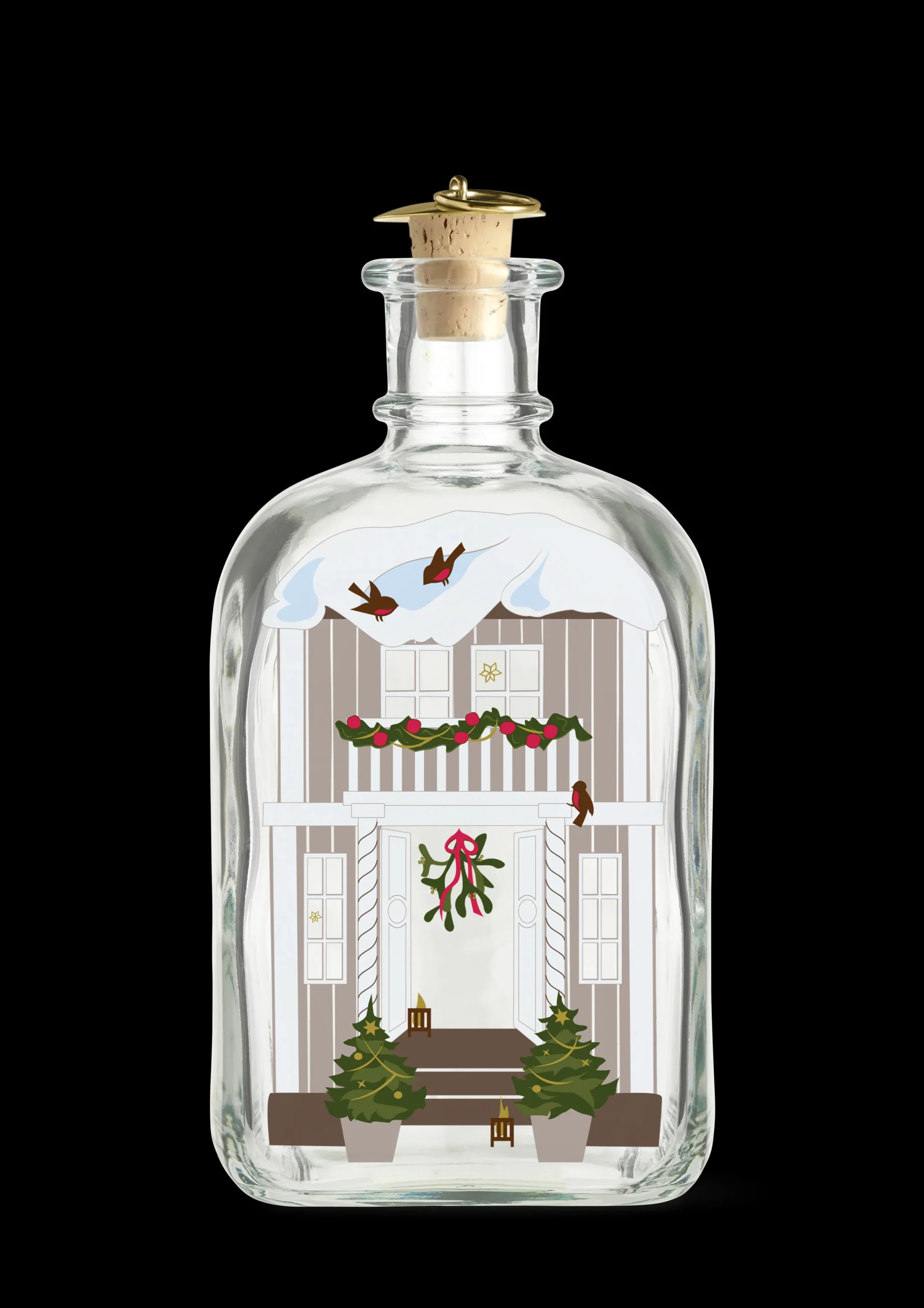 I 1981 skabte Jette Frölich for første gang sit karakteristiske papirklip til Holmegaards Juleflaske. Og her fire årtier senere er Holmegaards julekollektion blevet et højtelsket samlerobjekt for mange julefans. I år er designprocessen gennem refleksioner over julens magi mundet ud i en smukt illustreret julekollektion for Holmegaard, hvor Jette Frölich inviterer os til at holde julen sammen. Frölichs 2022-fortolkning af den stemningsfulde højtid illustrerer på smukkeste vis budskabet om vores fælles jul med hjemmet som omdrejningspunkt, og illustrationerne på flasken giver da også frit spil til forventningens glæde, når vi kryber sammen indenfor og samles med familie og venner fra nær og fjern. På forsiden ser du en hoveddør flankeret af juletræer, lanterner på trappen, julelys, sne og stakit. På siderne kan du gennem vinduerne se, at der er er pyntet op med julepynt, juletræ og gaver. Og for at understrege forventningens glæde – små børn der står ved vinduet og kigger ind. Der er også sørget for traditioner og forventningens glæde for de voksne, da du igen i år ned langs siden finder den klassiske kalender, så du dag efter dag indtil jul kan se frem til at nyde lidt af flaskens indhold og langsomt, men sikkert, nærme dig den 24. december.
