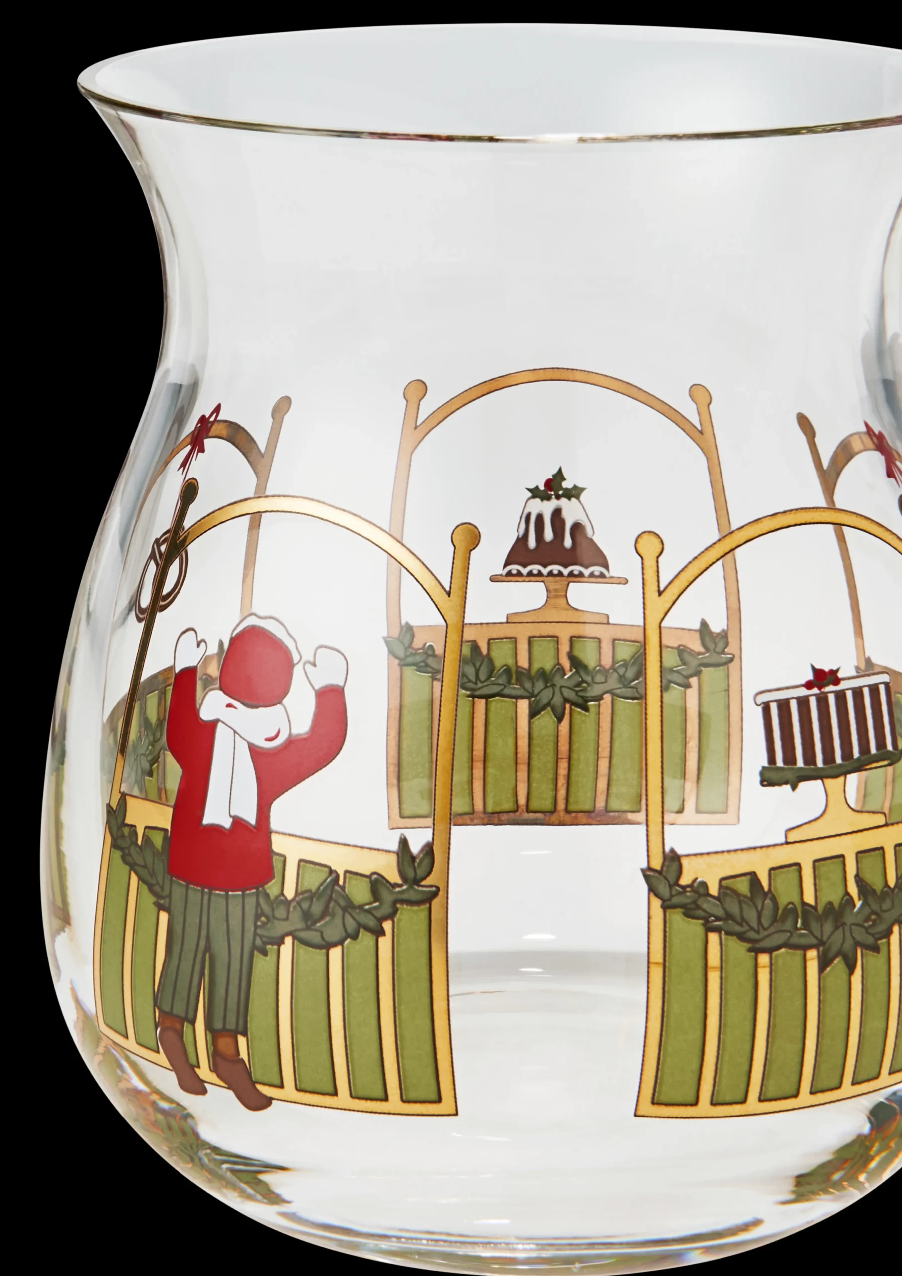 Med kunstner Jette Frölichs nostalgiske og mesterlige papirklip inviterer Holmegaard Christmas dig til et kig ind gennem ruderne i det gamle, traditionelle bageri. På de små fyrfadslysestager, der sælges i en pakke med to, kan du nyde Jette Frölichs originale og kunstneriske univers og hilse julen velkommen i lysets skær sammen med familie og venner. De 7,5 cm høje og meget dekorative fyrfadslysestager er meget æstetiske og skaber en hyggelig stemning, når flammens skær får motiverne på Jette Frölichs fyrfadslysestager til at kaste skygger og refleksioner. Motiverne er forskellige på de to fyrfadsstager og er begge variationer af Jette Frölichs nostalgiske juleunivers. På den ene fyrfadsstage står en dreng uden for butiksvinduet og kigger ind med stor nysgerrighed. Han kan se fire julekager – to julekager med glasur og kristtorn på opsats, et peberkagehus og en smuk julekringle. På den anden fyrfadsstage ser du en pige, der sidder i bageriets café og drikker en kop kakao, mens bagerbutikkens vindue er smukt pyntet af julekager og et honninghjerte. Motivuniverset på fyrfadsstagerne pryder hele Holmegaard Christmas 2023-serien i forskellige variationer. Alt sammen med udgangspunkt i refleksionerne over julens magi og juleflaskens stemningsfulde historie om børnenes juleglæde og forventningen til den store aften.