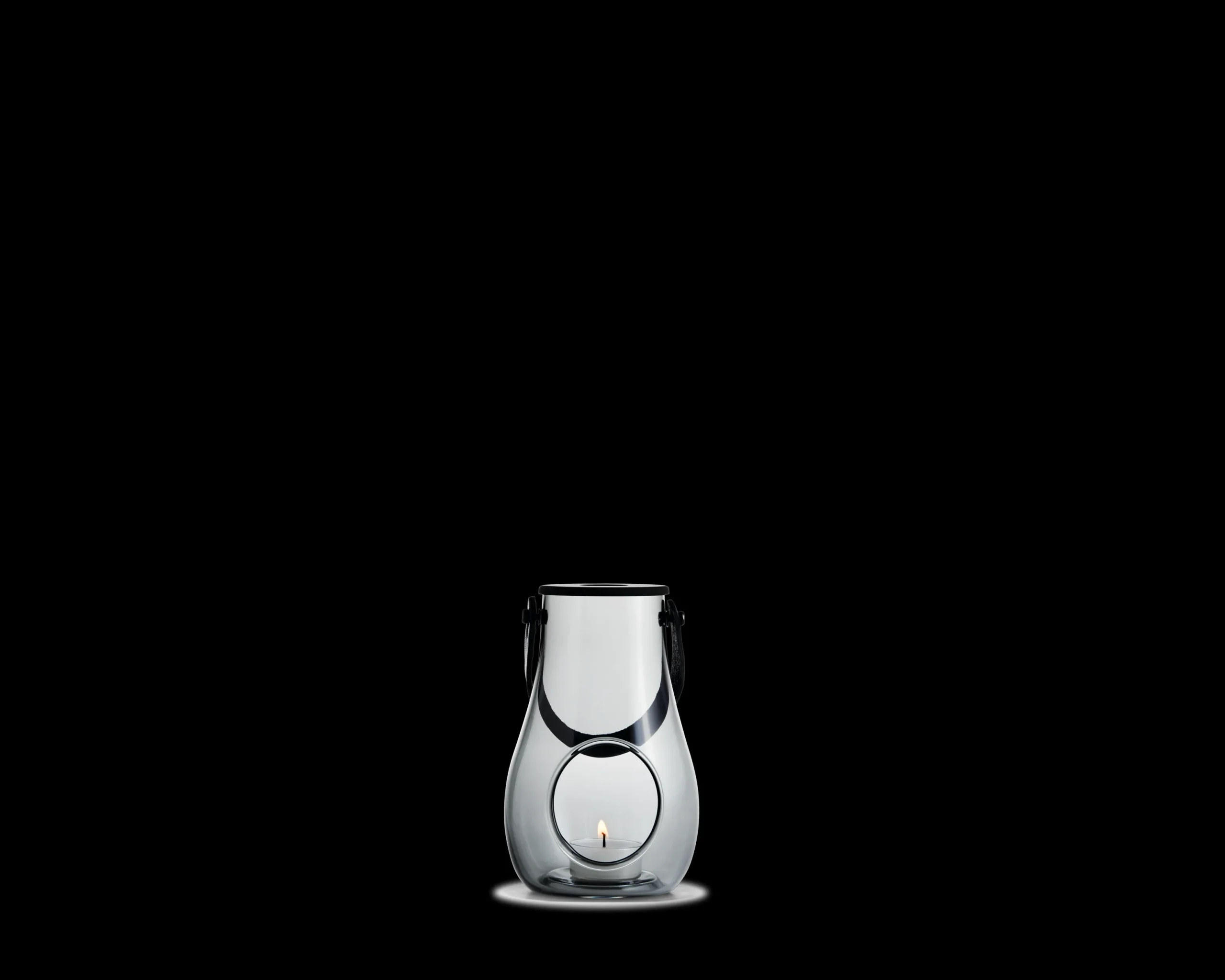 Brug Design With Light-lanternen året rundt både ude og inde. Lanternen er suveræn til sommeraftener på terrassen eller som dekoration på gulv, bord, trappe eller i vinduet. Kun fantasien sætter grænser. Designer Maria Berntsen har skabt den mobile lyskilde i smoke-farvet glas og kernelæder, der spreder lys og hygge i den bedste, skandinaviske ånd. Da glasset er mundblæst, er hver enkelt lanterne helt unik. Denne lanterne måler 16 cm i højden, men lanternen findes også i versioner på henholdsvis 25 cm og 29 cm.