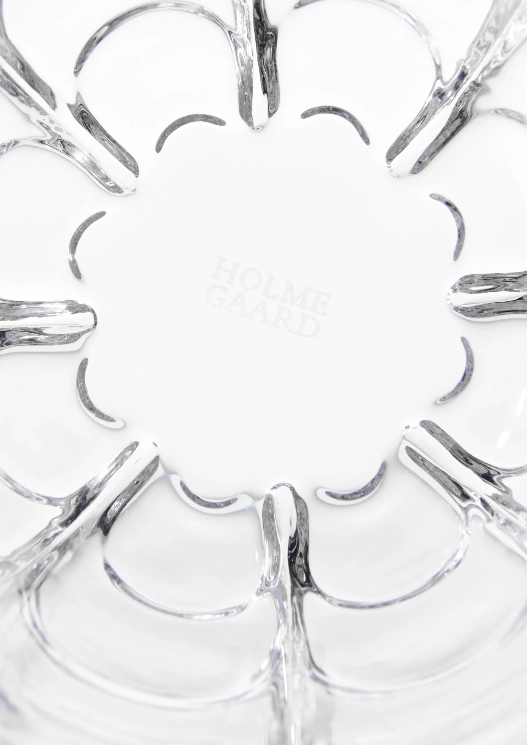 Holmegaards serie Lily er inspireret af de forskellige stadier i åkandens blomstring og har det samme lette og poetiske udtryk som den smukke blomst. Vandglasset i klart glas rummer 32 cl og kommer i en pakke a to – perfekt til servering af limonade, iste eller hjemmebrygget saft. Blomstermønsteret træder frem som relief i det formpressede glas, der både er transparent og taktilt. Linjerne i designet er enkle, bløde og organiske, men stadig på en simplificeret og stilistisk måde, så der opstår en fin balance mellem det romantiske og moderne. Glassene er nemme at stable og kan også gå i opvaskemaskinen, så du kan bruge dem til daglig uden at skulle bekymre dig om at vaske dem op i hånden. I serien findes også en stor serveringsskål, en mindre skål og en isasiet – alt sammen i fire forskellige farver. Alle delene i Lily-serien er skabt i gennemfarvet glas, så farven holder sig flot over tid.