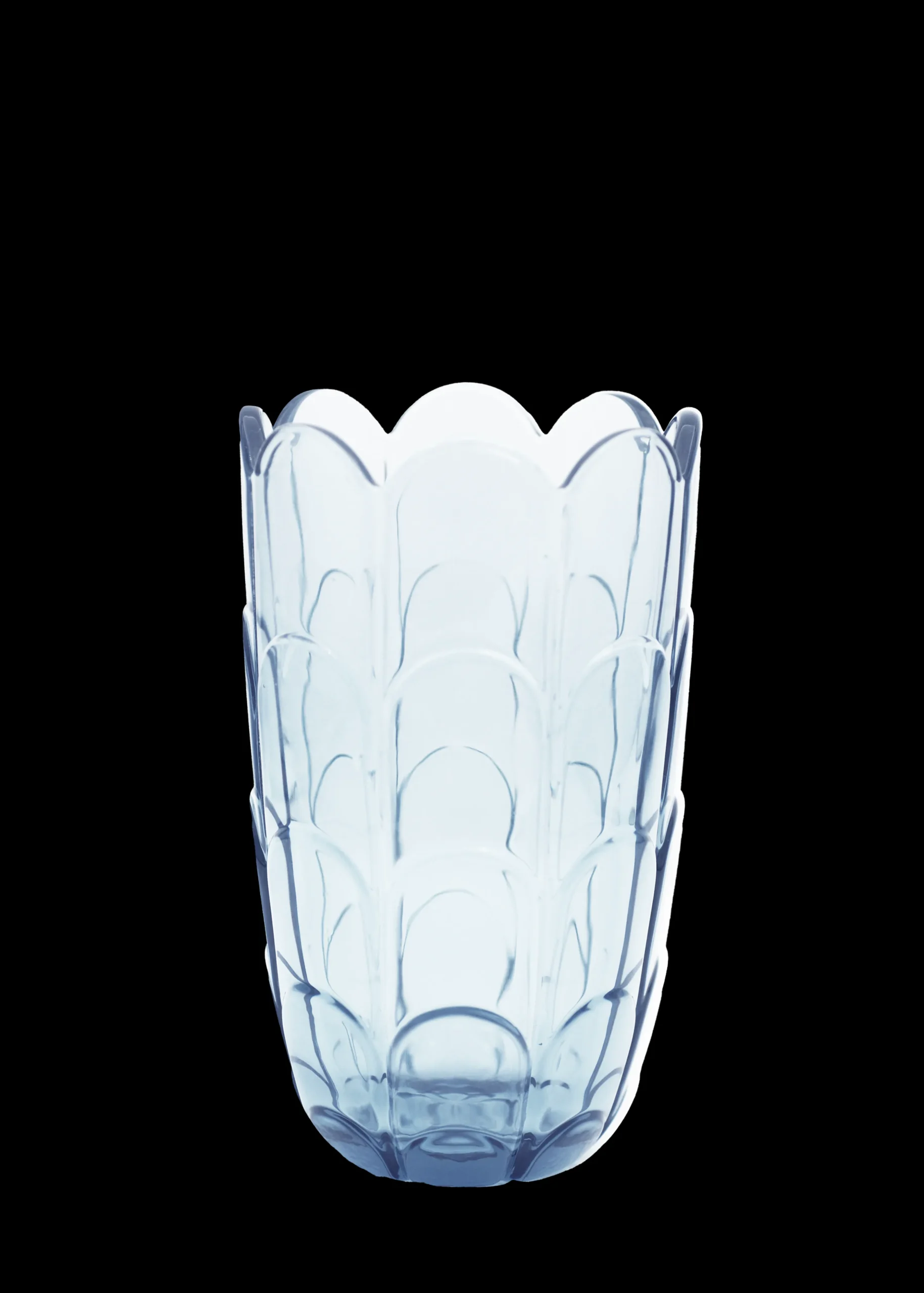Åkanden er en blomst, der flyder på stillestående vand. Roligt, nærværende og til stede. Der er noget drømmende over åkanden, og den følelse findes også i Lily-serien fra Holmegaard, der er inspireret af de forskellige stadier i åkandens blomstring, som produkterne i serien afspejler hver især. Den fine vase i farven blue iris måler 19 cm i højden, og som en sød lille detalje lægger stænglerne sig smukt hele vejen rundt i de små fordybninger langs kanten, når buketten folder sig ud. På den måde er det rent visuelt kronbladene på vasen, der bærer buketten, mens vasen som en smuk forlængelse omfavner buketten og støtter stænglerne. Det blåtonede glas betyder, at du ikke kun skal nøjes med at nyde toppen af din buket, men får glæde af hele blomsternes længde og Lily-serien smukke refleksioner i glas, når du betragter buketten. Linjerne i designet er enkle, bløde og organiske, men stadig på en simplificeret og stilistisk måde, så der opstår en fin balance mellem det nostalgiske og det moderne. Smukt kvalitetsglas fra Holmegaard er for alle og er skabt til at blive brugt – også i hverdagen. Derfor er glasset også gennemfarvet, så farven ikke ridses af ved brug.