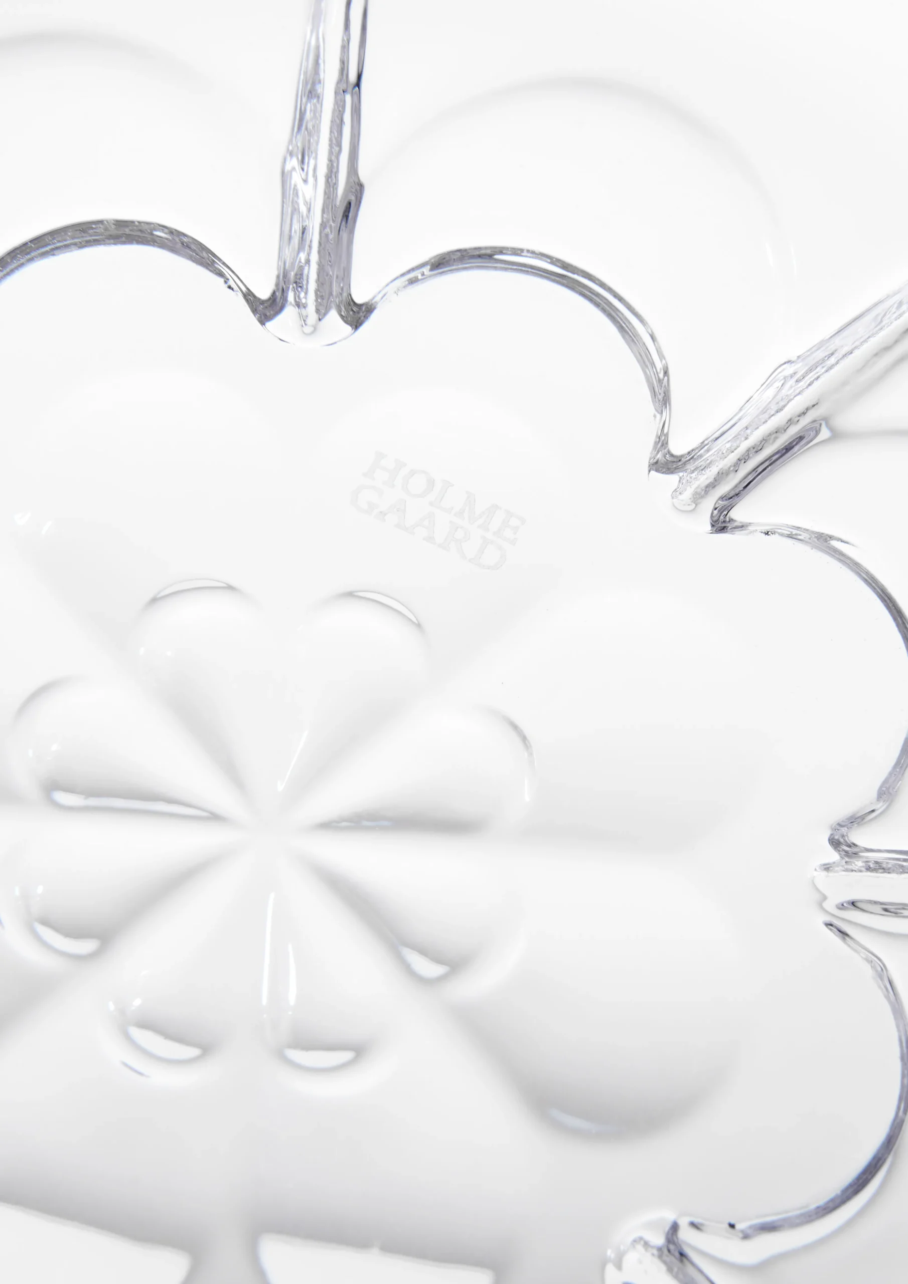 Holmegaards serie Lily er inspireret af de forskellige stadier i åkandens blomstring og har det samme lette og poetiske udtryk som den smukke blomst. Skålen i klart glas har en diameter på 23 cm og er perfekt til en gammeldags æblekage med ristede havregryn, flødeskum, æblemos og ribsgele på toppen. Eller til frugtsalaten, den grønne salat eller som frugtskål. Blomstermønsteret træder frem som relief i det formpressede glas, der både er transparent og taktilt. Linjerne i designet er enkle, bløde og organiske, men stadig på en simplificeret og stilistisk måde, så der opstår en fin balance mellem det romantiske og moderne. Skålen kan gå i opvaskemaskinen, så du kan bruge den til daglig uden at skulle bekymre dig om at vaske den op i hånden. I serien findes også en mindre skål, en isasiet og vandglas – alt sammen i fire forskellige farver. Alle delene i Lily-serien er skabt i gennemfarvet glas, så farven holder sig flot over tid.