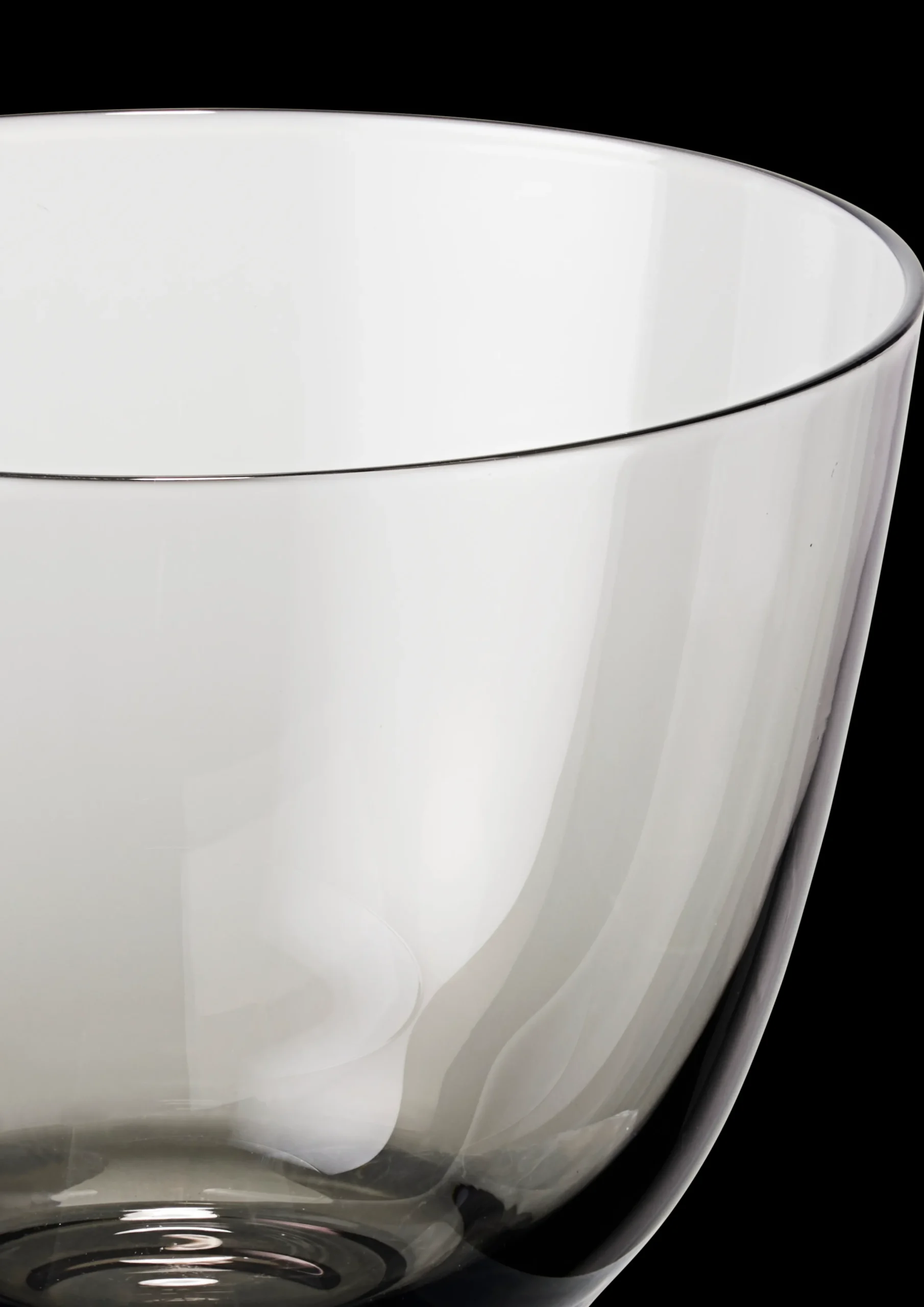 Sæt kulør på hverdagen med en verden af glas i smukke farver. De smukke farver i Holmegaard-serien Flow giver øjeblikkeligt liv til borddækningen og vækker sanserne på ny. Glassene har en klassisk form og er designet med et diskret bølgemønster i bunden inspireret af ringe i vandet. Flow-vandglasset i størrelsen 35 cl i farven Smoke har en dejlig tyngde i bunden og sidder godt i hånden. Den flammepolerede kant gør glasset robust og behageligt at drikke af, og så kan det mundblæste vandglas stables. Det gør både glasset klassisk og praktisk. Alle glas i Flow-serien er mundblæste, så hvert enkelt er helt unikt. Farven Smoke er en elegant, klassisk glasfarve, der passer til al borddækning og sørger for at skabe balance mellem de mere farverige glas. Find din favoritfarve i Flow-serien, eller bland flere forskellige farver i borddækningen og skab dit helt eget udtryk fuld af personlighed. Tåler opvaskemaskine ved maks. 55 grader.