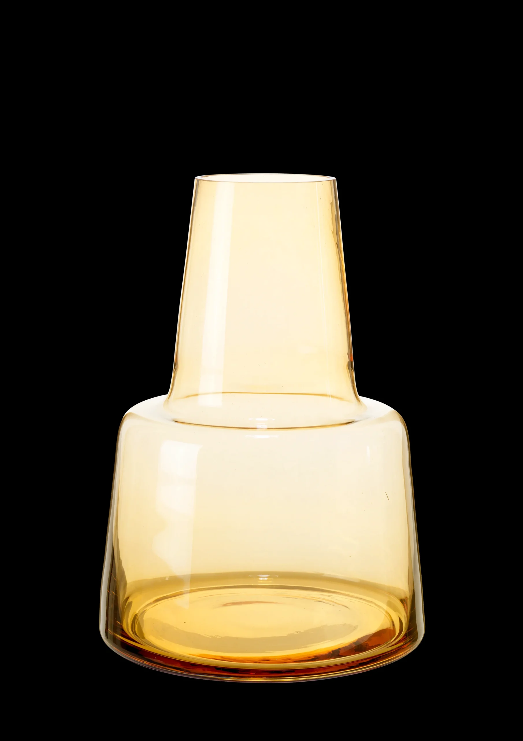 Denne Flora vase i farven amber er fremstillet i mundblæst glas og designet med tanke om, at friske blomster skal have masser af vand. Det unikke design er skabt af den prisvindende designer Louise Campbell. Vasens solide bund står i harmoni til den smalle åbning, der passer smukt til en langstilket blomst. Fås også med kort hals i farven amber.