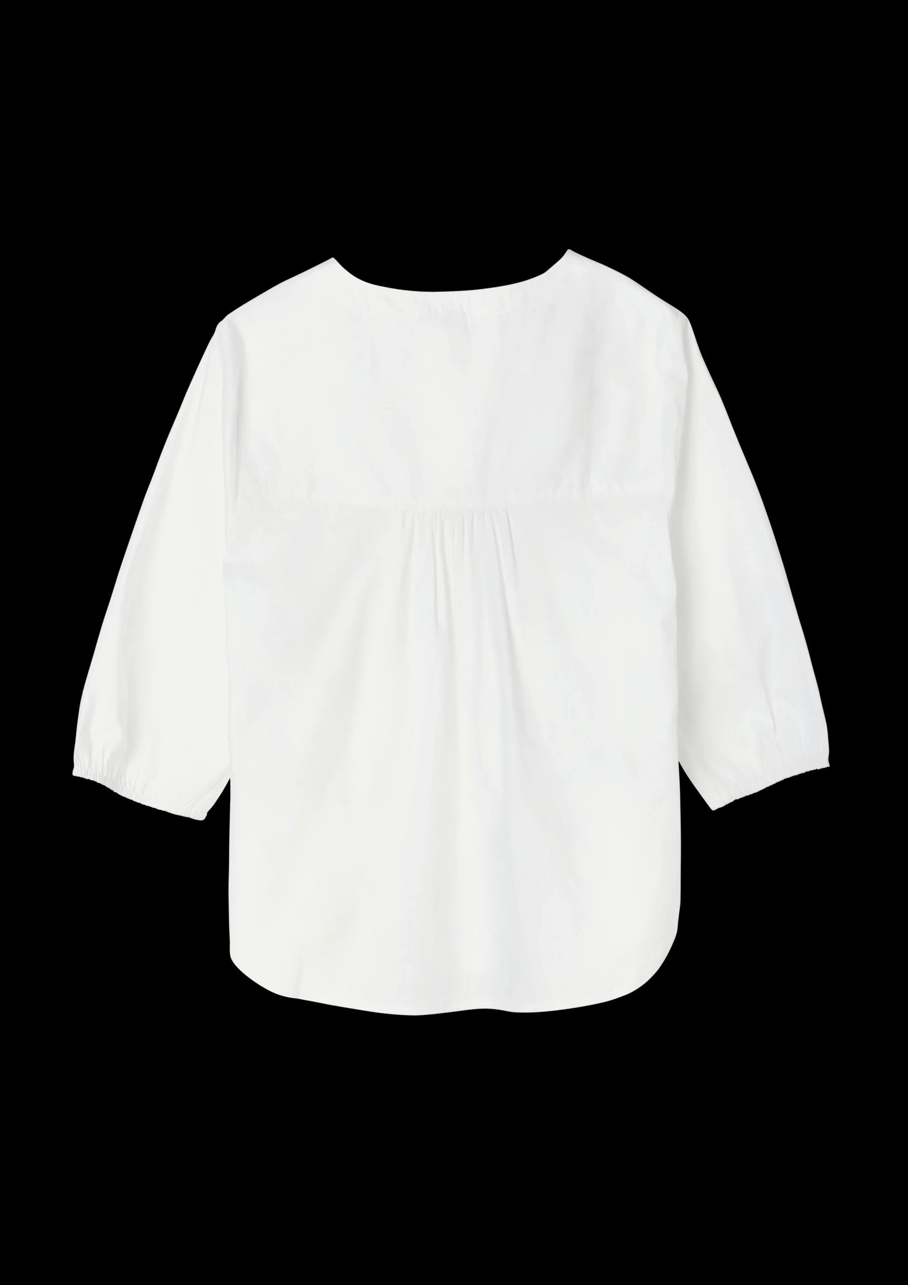 Juna Garderobe er fyldt med det fineste lette og luftige sommertøj, der både kan bruges som nattøj til de varme sommernætter og som en del af en casual sommergarderobe perfekt til lange sommerdage i haven, is på kajen og ture ud i det blå. Som en del af Junas bæredygtige designfilosofi bruges der altid overskudsstof fra produktionen af sengetøj til Juna Garderobe, og lige netop denne vævning og farve er den sidste af sin slags på Junas lager. Juna Soft har en helt unik struktur og kvalitet, der nærmest svæver over huden – stilfuldt og elegant. Stoffet kommer i hvid farve som passer til alt og er smuk mod solgylden sommerhud. Skjorten i modellen Adele har mange fine detaljer som V-neck, gennemgående knapper, læg ved skuldrene og øverst på ryggen og elastik ved ærmerne, der giver et klassisk og feminint look. Skødesløst og casual, men i et skarpt snit og en lækker stofkvalitet. Tøjet i Juna Garderobe er altid fremstillet i 100% økologisk bomuld, produceres i overensstemmelse med EU standarder og tåler maskinvask op til 40°, hvilket ikke blot er skånsomt for miljøet, men også for tøjet, som får længere levetid ved den lavere temperatur. Bemærk, at dette produkt er stor i størrelsen.