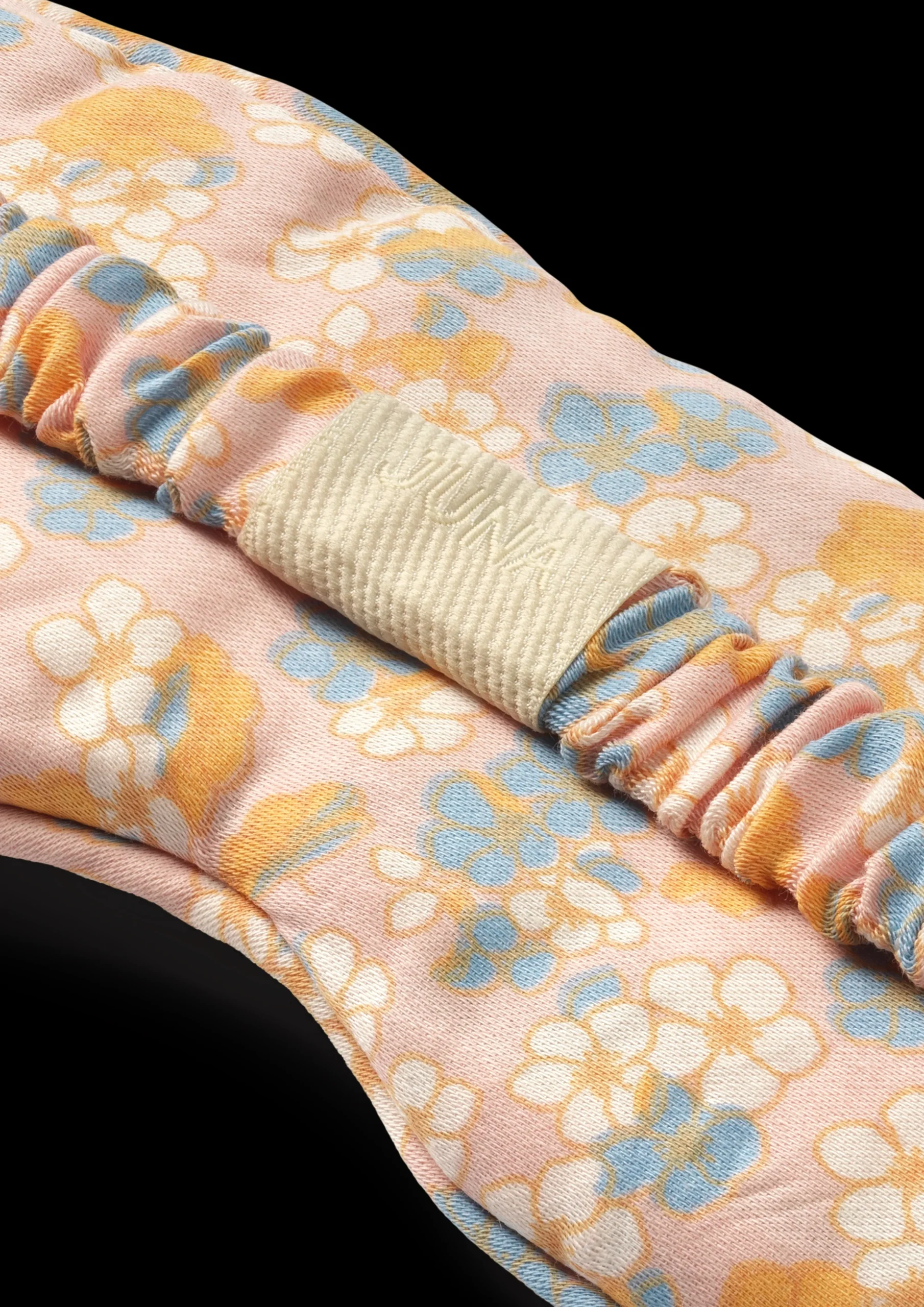 JUNA handler om glæden ved at omgive sig med tekstiler, der gør livet smukkere, blødere, mere farverigt og sjovere – også når du sover. Og med Dodo fra JUNA får du en både smart og praktisk sovemaske med Bæku0026Bølge i farvekombinationen grøn/sand på den ene side og Pleasantly med en bundfarve i gul på den anden. Dodo-sovemasken er syet i 100% økologisk bomuld, og den dejlige bløde padding er perfekt til en god nats søvn med uendelige drømme. Samtidig sikrer den behagelige stofbeklædte elastik, at sovemasken er nænsom mod håret og altid sidder, hvor den skal. Kombinationen af Bæku0026Bølge-tern og Pleasantly-blomster giver et herligt mønstermix, hvor farverne er afstemt, så de to sider taler smukt sammen farvemæssigt. Det er helt op til dig og dit humør, hvilken side der skal vende udad. Som en del af JUNAs ansvarlige designfilosofi er sovemasken naturligvis som altid produceret af overskudsstof fra produktionen af JUNA-sengetøj.