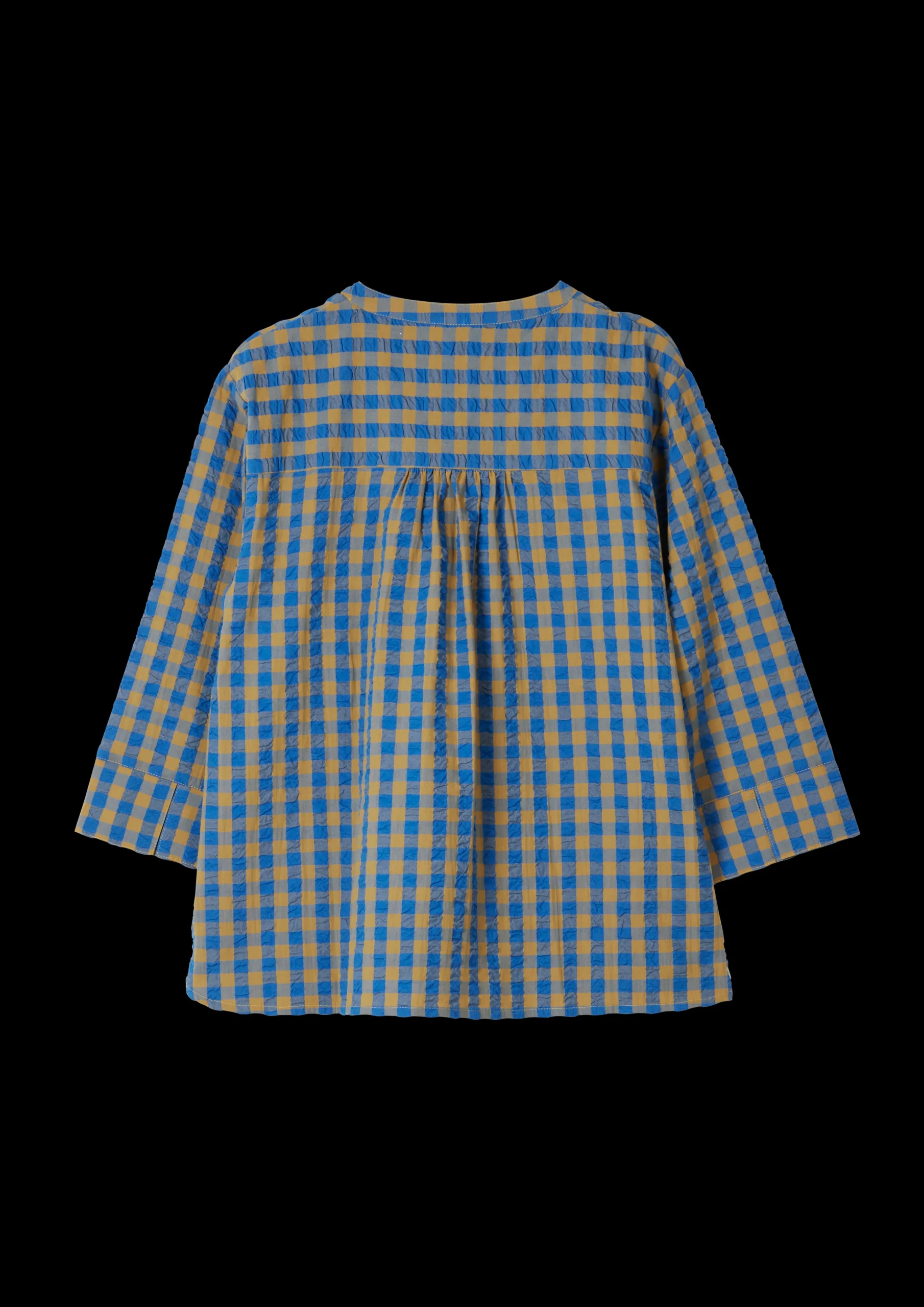 JUNA Garderobe er fyldt med tidens moderigtige outfits fremstillet af de samme økologiske tekstiler, der bliver brugt til JUNAs populære sengetøj, og kan bruges som nattøj, sommertøj og som en del af en casual indendørsgarderobe. Irene-skjorten i ternet Bæku0026Bølge i blå/okker har en løs pasform og et behageligt snit, der gør den oplagt til mange formål. Skjorten har knaplukning, og de halvlange ærmer giver den et let og elegant udtryk – perfekt til både en lang vinterweekend derhjemme eller til sommerens strandture. Irene-skjorten i Bæku0026Bølge blå/okker er fremstillet i 100% økologisk bomuld, der er GOTS-certificeret og produceres i overensstemmelse med EU-standarder. Den tåler maskinvask op til 40 grader, hvilket ikke blot er skånsomt for miljøet, men også for tøjet, der får længere levetid ved den lavere temperatur. Bemærk at skjorten er stor i størrelsen.