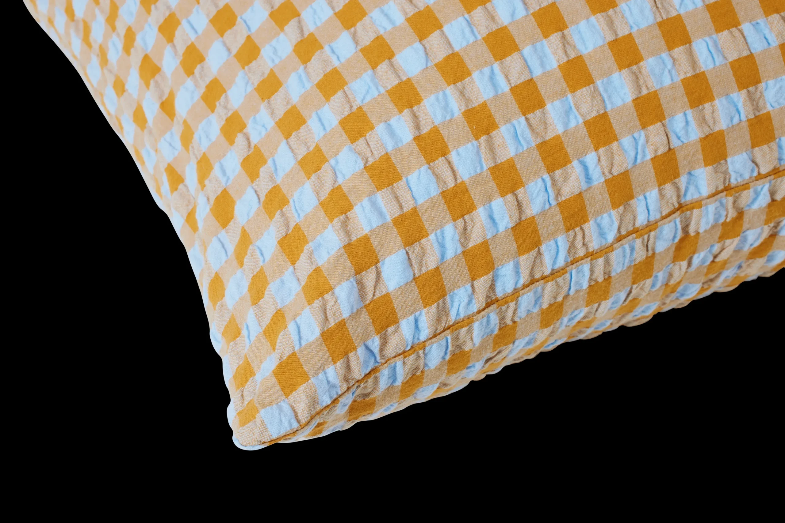 Lad hovedet hvile på det bløde pudebetræk i Bæku0026Bølge fra JUNA. Farvekombinationen lyseblå/sand har et køligt og roligt udtryk, der leder tankerne hen på en kyststrækning, hvor sand og vand mødes i skæret af det kølige og elegante skandinaviske lys. Materialet er 100% økologisk bomuld, der både er OEKO-TEX®-mærket og GOTS-certificeret. Pudebetrækket lukkes med kuvertlukning og måler 60×63 cm. Har du flere forskellige pudebetræk eller sengesæt fra JUNA, kan du lege med at blande de forskellige farver og mønstre på kryds og tværs og skabe din helt egen stil. Pudebetrækket kan vaskes ved 60 grader, men JUNA anbefaler, at du vasker det ved 40 grader, så du skåner miljøet og bevarer blødheden og kvaliteten mange år frem.