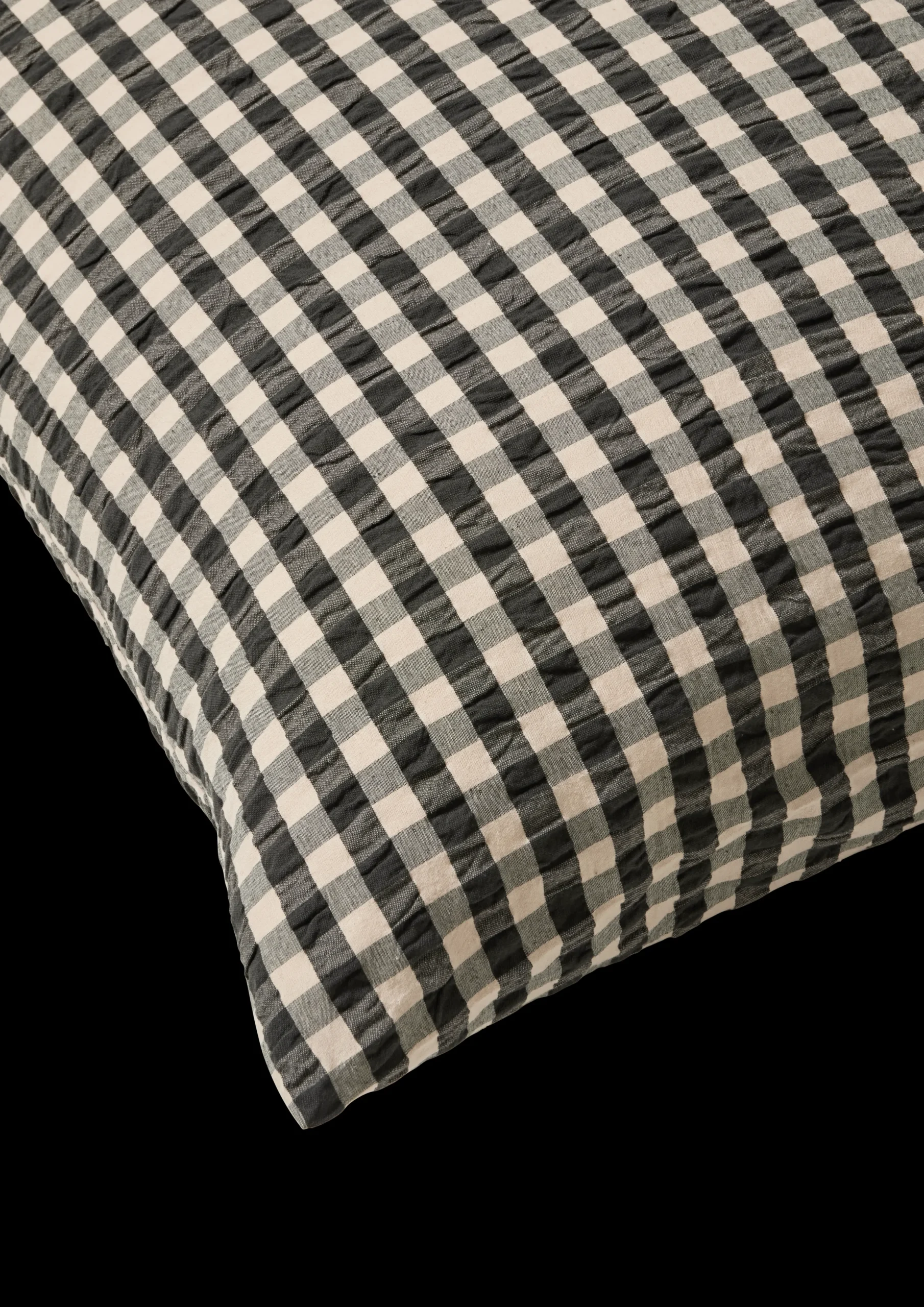 Lad hovedet hvile på det bløde pudebetræk i Bæku0026Bølge fra JUNA. Farvekombinationen sort/sand leder tankerne hen på de varme jordfarver, du finder i efterårets smukke skovbunde, når bladene falder af træerne, men som alligevel er så klassiske, at de sagtens kan bruges året rundt. Materialet er 100% økologisk bomuld, der både er OEKO-TEX®-mærket og GOTS-certificeret. Pudebetrækket lukkes med kuvertlukning og måler 60×63 cm. Har du flere forskellige pudebetræk eller sengesæt fra JUNA, kan du lege med at blande de forskellige farver og mønstre på kryds og tværs og skabe din helt egen stil. Pudebetrækket kan vaskes ved 60 grader, men JUNA anbefaler, at du vasker det ved 40 grader, så du skåner miljøet og bevarer blødheden og kvaliteten mange år frem.