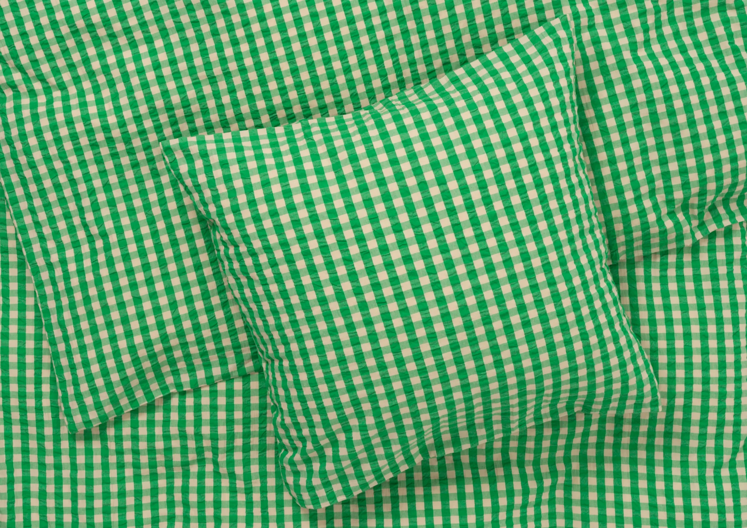 Det sæt tøj du bruger allermest tid i, er dit sengetøj. Derfor er sengetøj fra Juna skabt med intentionen om at være sanseligt, behageligt og 100% økologisk og bæredygtigt, så du trygt kan lægge dig til ro hver aften og få en god nats søvns. Juna handler om glæden ved at omgive sig med tekstiler, der gør livet smukkere, blødere, mere farverigt og sjovere. Derfor er farver og mønstre en stor del af Juna og giver sengetøjet en hyggelig og uhøjtidelig følelse. Den velkendte og klassiske ternede vævning fortolkes i en moderne farvepalet og det er netop kombinationen af det nostalgiske og nyskabende er med til at skabe en unik og glad stemning i indretningen. Den ternet Bæk u0026 Bølge i grøn/sand har en skøn friskhed og sprødhed over sig – nærmest som nyudsprungne bøgeblade. Materialet er 100% økologisk bomuld, der både er OEKO-TEX®-mærket og GOTS-certificeret. Pudebetrækket lukkes med kuvertlukning, mens dynebetrækket lukkes med knaplukning. Har du flere forskellige sengesæt fra Juna, kan du mixe og matche de forskellige farver og mønstre på kryds og tværs og skabe din helt egen stil i soveværelset. Bæk u0026 Bølge er vævet, så det har en helt speciel tekstur, der lader luften cirkulere mellem huden og dynen – perfekt til de varme sommernætter. Det giver en god nats søvn, så du kan restituere og lade op til en ny dag. Og så er det ovenikøbet strygefrit, så du kan lade den lune sommervind om tørringen og lægge sengetøjet på direkte fra tørresnoren. Sengesættet består af 1 dynebetræk på 220×220 cm og 2 pudebetræk på 60×50 cm.