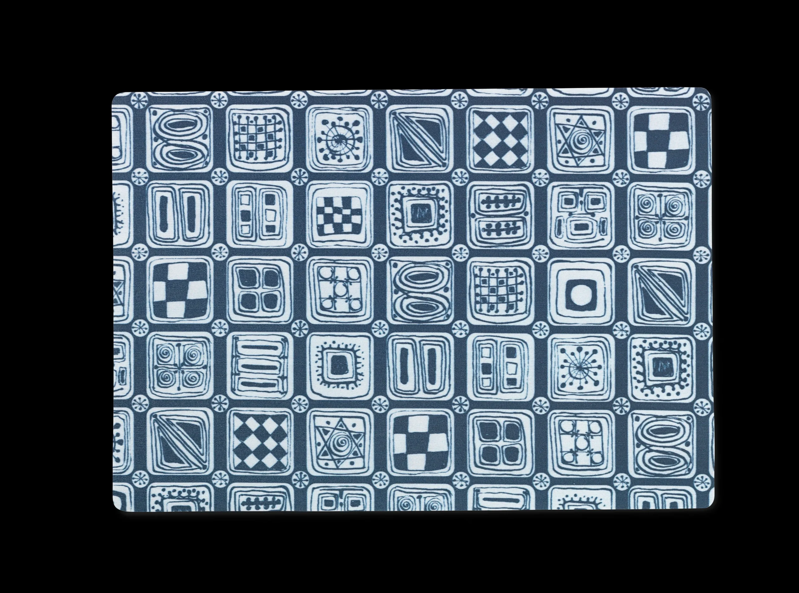 Dekorative Squares-dækkeservietter i blå har et flot mosaikprint og en praktisk akrylbelægning, så dækkeservietterne er lige til at tørre over med en fugtig klud ved behov. Dækkeservietten med mønster designet af Bjørn Wiinblad måler 43 x 30 cm og er fremstillet i 50 % bomuld og 50 % polyester, der til sammen skaber en lækker dækkeserviet, som du kan have glæde af i rigtig mange år. Dækkeservietten ligger godt fast på overfladen takket være ”antiskrid”-effekt på bagsiden af produktet.