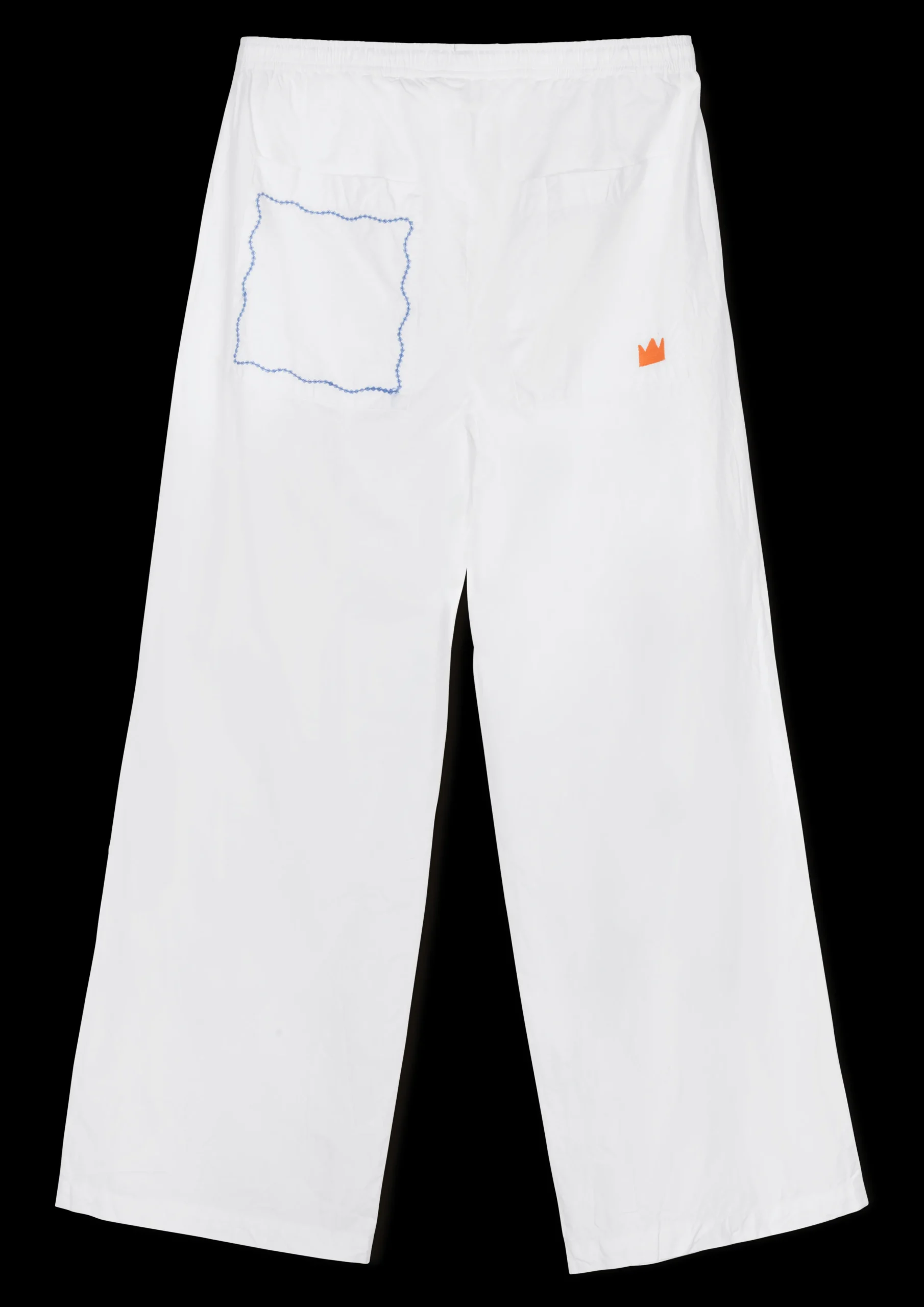 OBS. Nattøjet er stort i størrelsen.nHvem siger, at man kun kan have nattøj på om natten? De skønne pyjamasdele i Lollipop-kollektionen indbyder til, at du bliver i nattøjet hele dagen, og bukserne kan sagtens kombineres med en pæn bluse, ligesom overdelen ville se fantastisk ud til jeans eller en nederdel. Med klassiske skrædderdetaljer er håndværket i orden, og designet kan sagtens tåle dagens lys, men giver selvfølgelig også en dejlig nats søvn. De hvide natbukser i str. S/M har samme Percale-tekstilkvalitet som sengetøjet i Lollipop-serien og er fremstillet i 100% økologisk bomuld. Som altid med JUNA er tekstilerne desuden GOTS-certificeret, hvilket betyder, at du er sikret en ansvarlig produktion og tekstiler af en høj kvalitet skabt med omtanke og omsorg over for både miljø og mennesker. Bukserne er baggy med brede bukseben, der giver et cool og afslappet look, der eksekveres til perfektion med to sidelommer, baglomme og en casual snørelukning. Som en hyggelig detalje er natbuskerne broderet med en sød, lille regnbue. Et drømmende og muntert motiv, der symboliserer den fantasifulde og farverige verden, som KIMPOP inviterer os til at skabe og træde ind i – dag og nat. (GOTS ”Organic” Certified by Control Union, CU1026087)