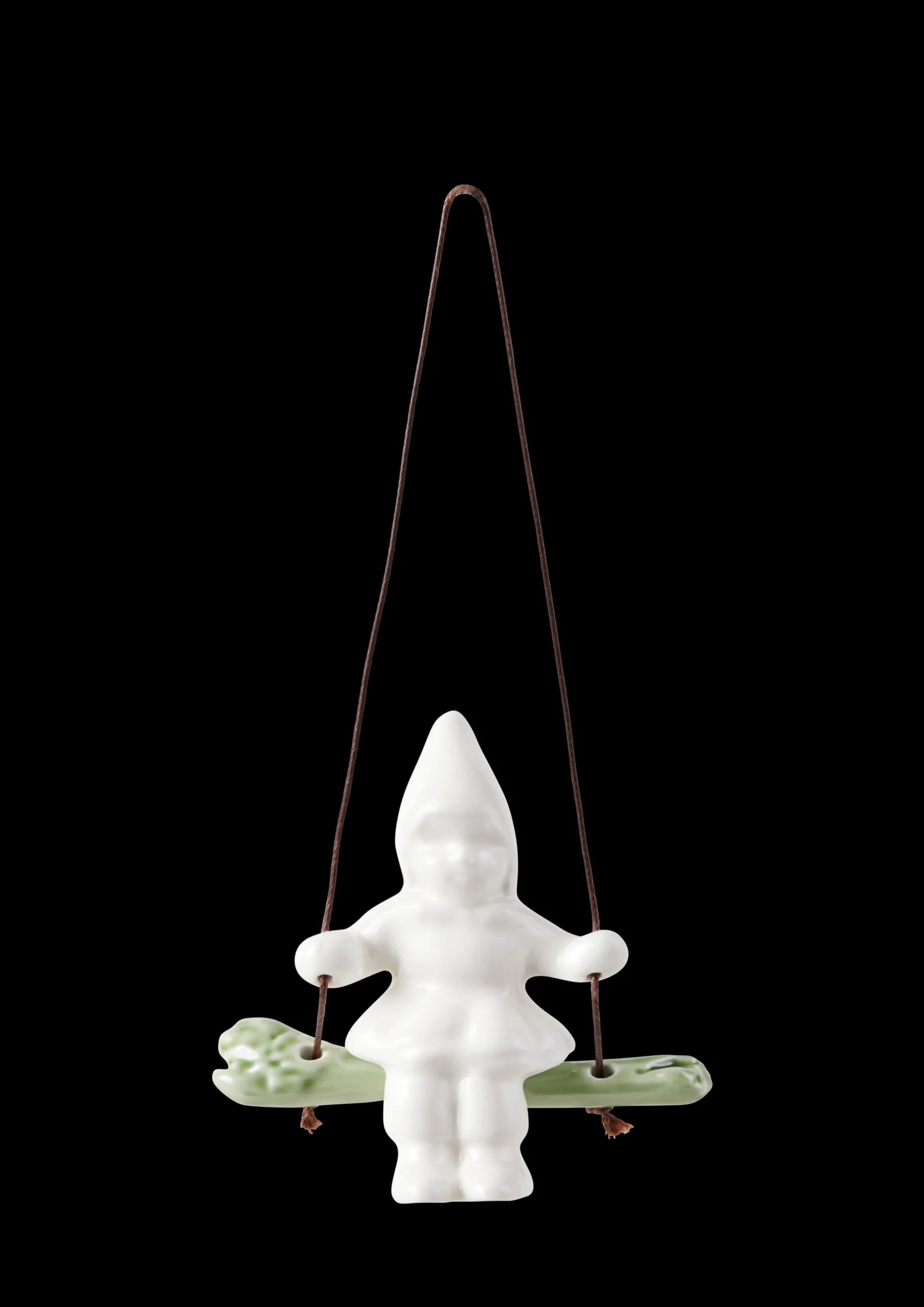 Grankogler og kristtorn er nogle af de elementer i naturen, som mange forbinder med jul. Vi samler grankogler til små dekorationer, og vi klipper kristtorn af til vasen, til døren og til kransen. Naturen er fuld af julemagi. Og præcis den julemagi har keramisk designer Thora Finnsdottir skabt i Christmas Tales-serien fra Kähler, hvor hun blandt andet har designet denne Gyngenisse i form af en hvidglaseret pige i keramik iført nissehue og træsko. På sin lille gynge skabt i en mat grøn farve, der matcher naturen, nyder hun julens ro og de mange hyggelige stunder. Alle figurerne i serien er fremstillet i keramik og har et blødt og enkelt overfladeudtryk. Udtrykket er roligt og tidløst, og på miljøet omkring seriens nissefigurer er der brugt forskellige farvede glasurer i naturlige og nordiske nuancer. Naturens strukturer og former er skabt gennem direkte afstøbninger af kogler og stubbe, som Thora Finnsdottir med vanlig nysgerrighed har givet nyt liv gennem keramikken. Julefigurerne og ophængene fra Christmas Tales er en oplagt gaveide, og ligesom vi sender et julekort med en kærlig hilsen, kan vi glæde vores kære med en dekorativ figur, der får os til at stoppe op og huske hinanden på, at vi må glædes over julen og hinanden.