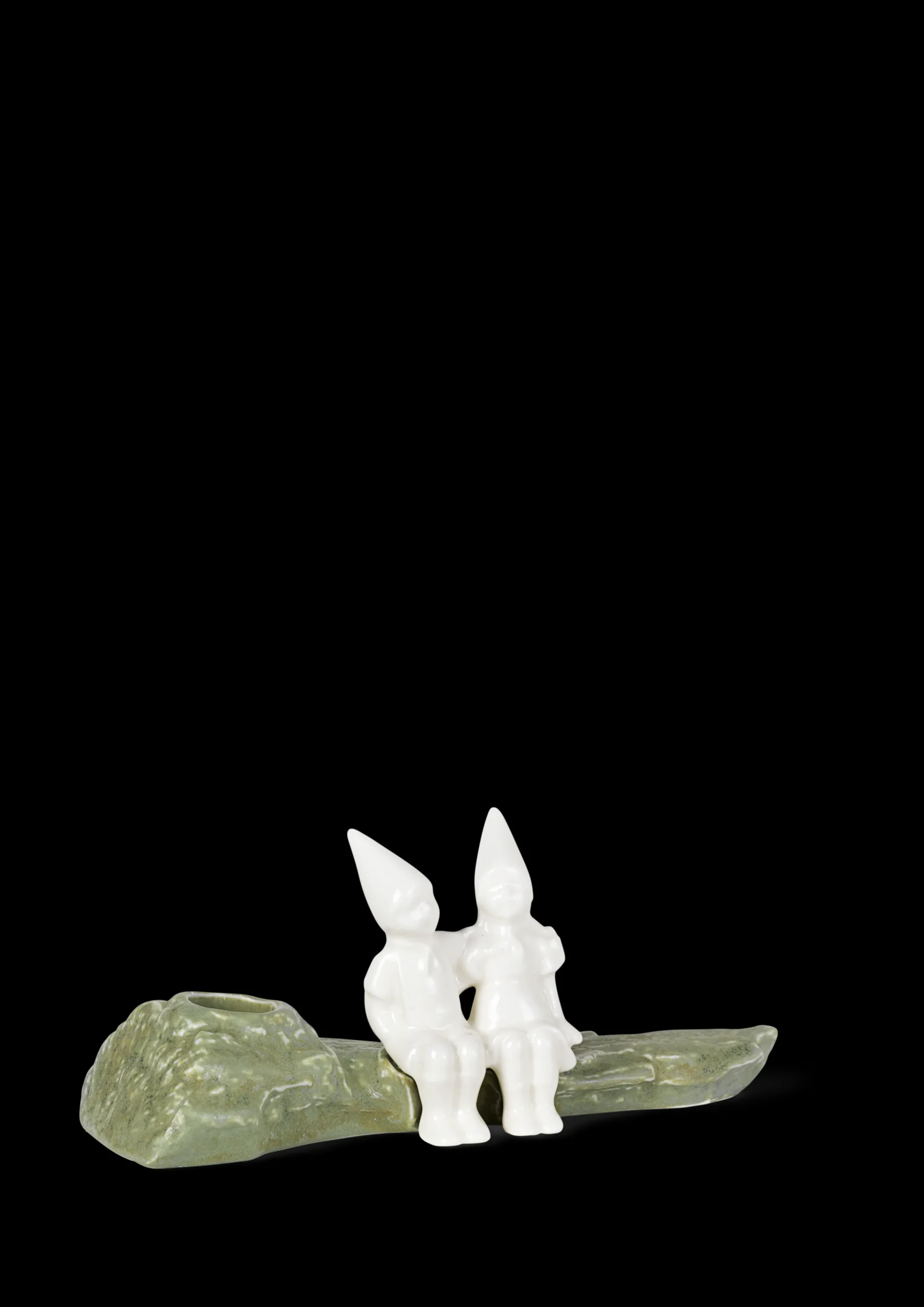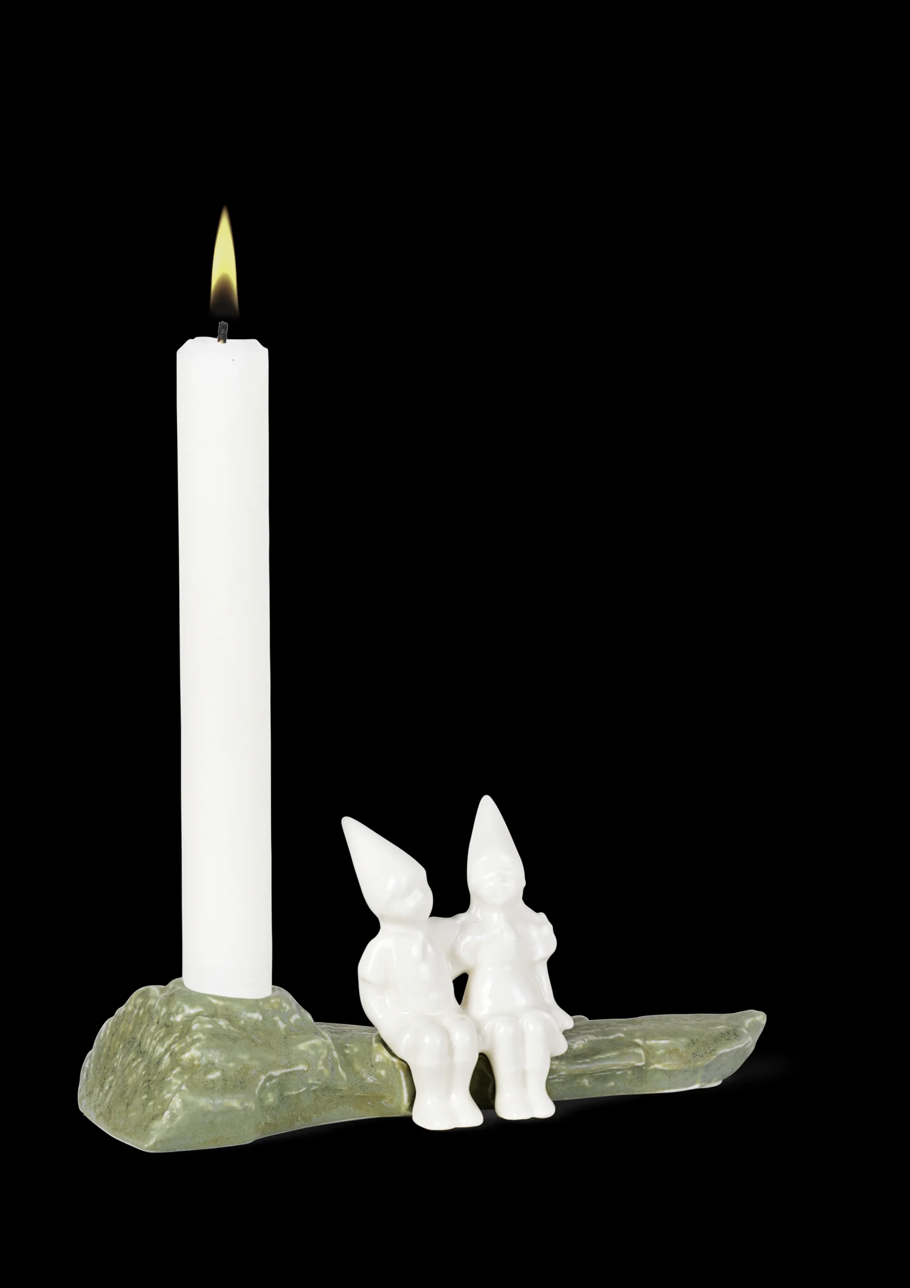 De dekorative porcelænsfigurer i Christmas Tales kollektionen er fulde af julemagi. De er inspireret af gamle julefortællinger, og hver af dem fortæller en historie med elementer fra den smukke nordiske natur. Formerne er skabt ved afstøbninger fra naturens overflader og træstubbe, hvilket skaber en smuk kontrast til de stilistiske figurer. De to venners kram viser os, at omsorg og nærhed er to af de vigtigste elementer i en glædelig jul. Lad et lys fuldende den kærlige atmosfære.