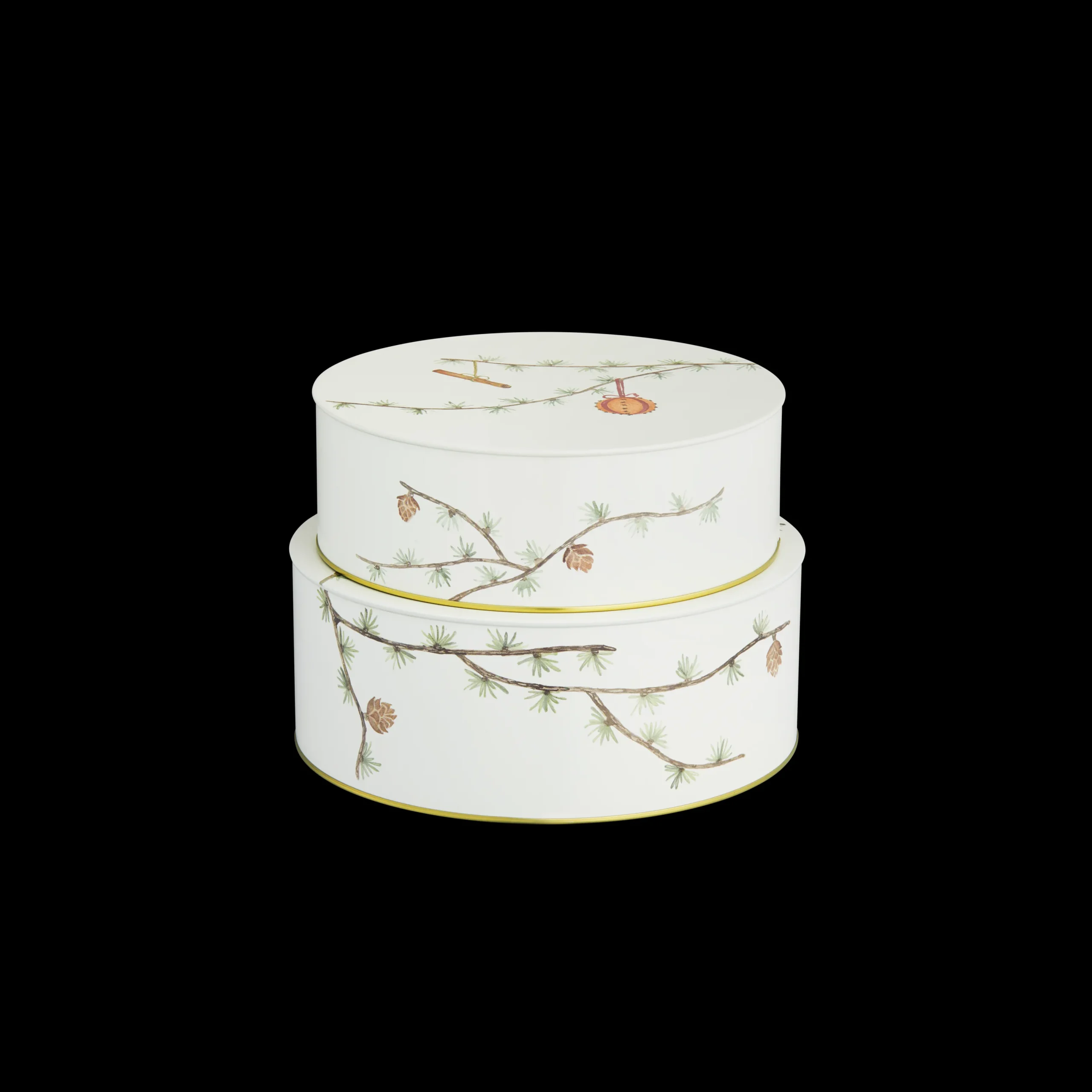 Hammershøi Jul er en juleserie fra Kähler, hvor der er tanke for den klassiske fortælling. Hans-Christian Bauer og Rikke Jacobsen står i spidsen for dette års design, og her får du et sæt med to smukke juleopbevaringsdåser. Disse kommer i hvidt metal, der gør dem yderst anvendelige til f.eks. dit hjemmebag eller til julens værtindegaver. Den elegante udsmykning består af fine grene med gran og små kogler, der fint pynter på dåsen. Der er også små juleophæng af finde, og derved er den både klassisk, enkel og særdeles stilfuld at have stående i sin bolig. Den må ikke komme i opvaskemaskinen.