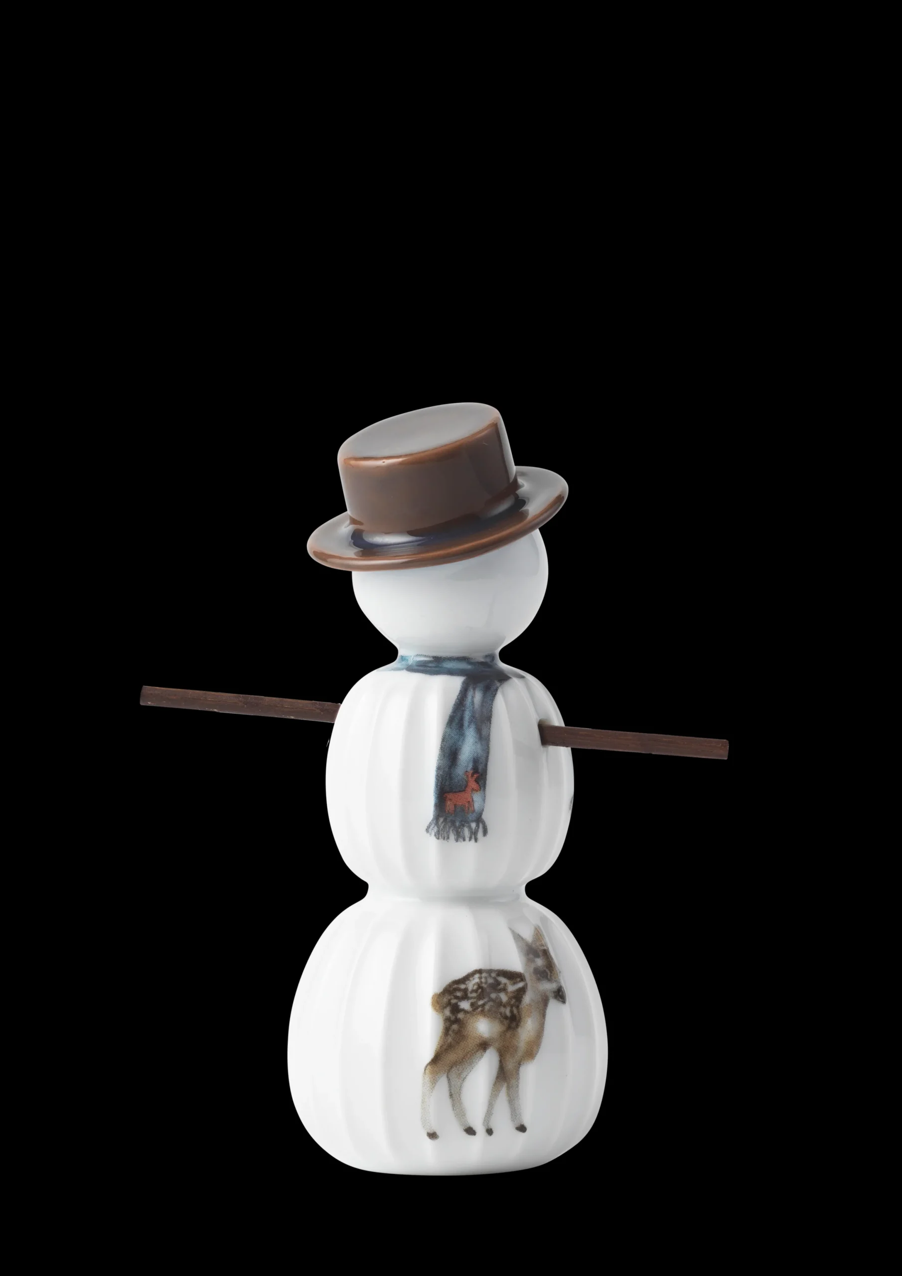 Juletraditioner og håndværkstraditioner i skøn forening. Med familien af snemænd fra Kählers juleserie Hammershøi Christmas bringer du enkelt og autentisk julestemningen ind i boligen med glade smil og hyggelige julemotiver, der matcher seriens øvrige dele og fuldender julehyggen, samtidig med at du kan nyde nostalgien i Kählers håndlavede designtraditioner. Gå en tur i haven, parken eller skoven og find jeres egne små kviste, der kan bruges som arme til seriens søde figurer. Måske som en ny, hyggelig juletradition den 1. december. På den måde bliver snemændene endnu mere personlige og betydningsfulde. Vær opmærksom på at de medfølgende arme til både den stående og hængende familie af snemænd udelukkende er vedlagt som inspiration til, hvordan du kan personliggøre dine Kähler-snemænd i din helt egen DIY-stil. Snemanden har selvfølgelig en høj hat på, som vi forbinder det med den klassiske snemand. Han måler 11,5 cm i højden og 5 cm i diameter og er udformet i bløde linjer med Hammershøi-seriens ikoniske riller, der kendetegner Hans-Christian Bauers stel og bordpynt. Denne model er den stående udgave af Snemanden, men du kan også få ham som ophæng. Så der er frit valg. Skab dit eget snelandskab i vinduet, på hylden eller på julebordet, eller lad hele familien pynte på juletræet eller på smukke grene i en flot vase. Kählers snemandsfamilie består af Snemanden, Snekonen, Snedrengen og Snepigen, der alle på forskellig vis er dekoreret med motiver fra Hammershøi Christmas-serien malet i akvarel af Rikke Jacobsen og overført til det snehvide porcelæn. Motiverne er klassiske julemotiver som julehjerter, kræmmerhuse og gaver i en autentisk, hyggelig og håndmalet stil, som man slet ikke kan undgå at komme i den helt rigtige julestemning af.