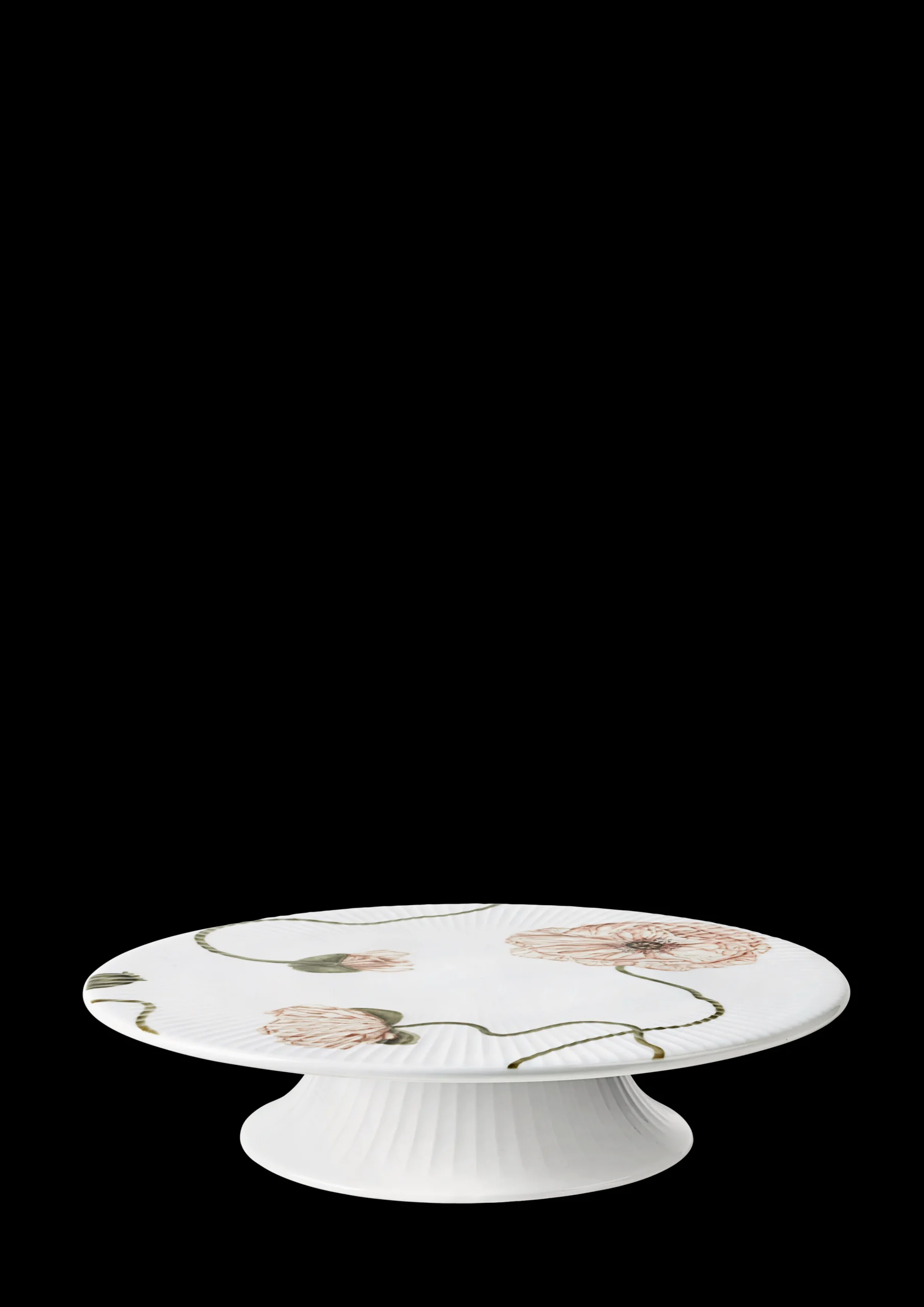 Skab en elegant og gennemført kageservering med yndefulde valmuer i blød bevægelse og stilke, der snor sig langs porcelænets former og nysgerrigt dukker op, når du mindst venter det. Hammershøi Poppy er et moderne blomsterstel inspireret af valmuens betagende skønhed – helt sit eget, elegant og feminint. Og med Hammershøi Poppy-kagefadet med en diameter på 30 cm kan du i fuldt flor nyde det populære stels poetiske univers med sart rosa valmuer fulde af liv og bevægelse med feminint touch og rødder i tidens florale megatrend. Kagefadet stråler af minutiøs naturalisme og sart poesi og er dekoreret med en stor åben blomst, der ligger smukt og omfavner fladen. Brug fadet sammen med Hammershøi Poppy-opsatsen og de andre dele i serien og gør bordet til en fin blomstermark. Hvis du ønsker et mere subtilt udtryk, kan du kombinere Poppy med det klassiske hvide Hammershøi-stel.