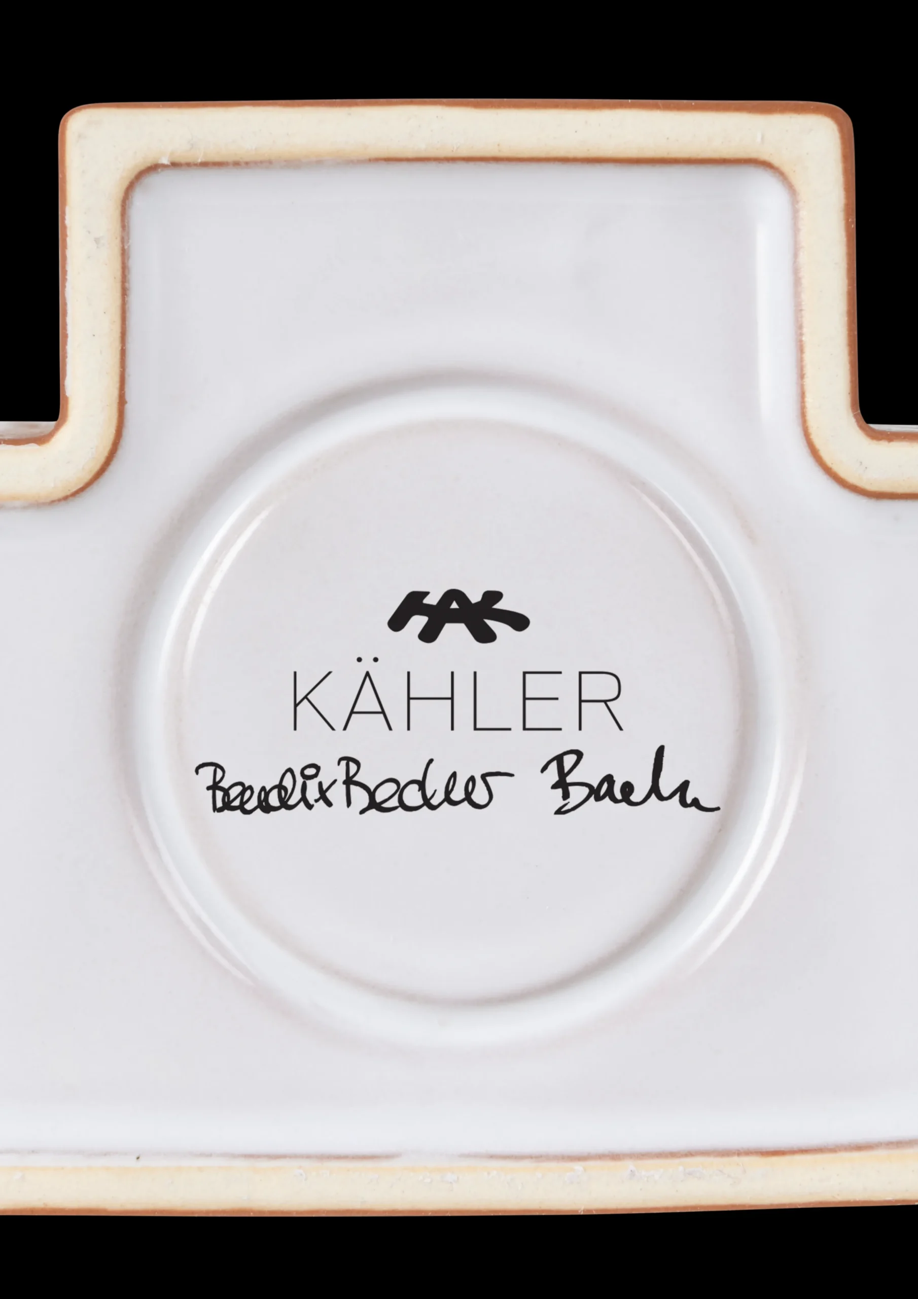 Kähler Gingerbread er en serie af håndlavede honningkagehuse, hvor Kählers keramiske ophav og den danske jul er sat på en fælles designformel. Dette honningkagehus emmer af jul, charme og traditioner og er med sine 17 cm i højden det største af honningkagehusene. Husets forside er belagt med et fint bindingsværkmønster, et cirkelformet og smukt dekoreret vindue og en stor port, der inviterer indenfor til masser af autentisk varme og hygge. Siderne på lyshuset er pyntet med store, hvide hjerter som symbol på den kærlighed, der ligger i hjerternes fest – julen. Skab et hyggeligt julelandskab med nisser omkring husene eller brug dem alene som håndlavede designelementer, der med deres blanke og taktile glasur og den rå, uglaserede keramik vil stå smukt og sprede hygge. Gingerbread-lyshusene har en brun, mat yderside, der minder om honningkagedejen og er pyntet med hvide, blanke dekorationer og hvide tage, der ligner glasur. Og som en vigtig detalje er honningkagehusene hvidglaseret indvendigt, så det varme lys fra fyrfadslyset reflekteres og skinner ud. Store som små er de alle udskåret i hånden, og lyset fra husene skaber på denne måde legende klynger af lys og skygge omkring sig, hvor end honningkagehusene placeres.