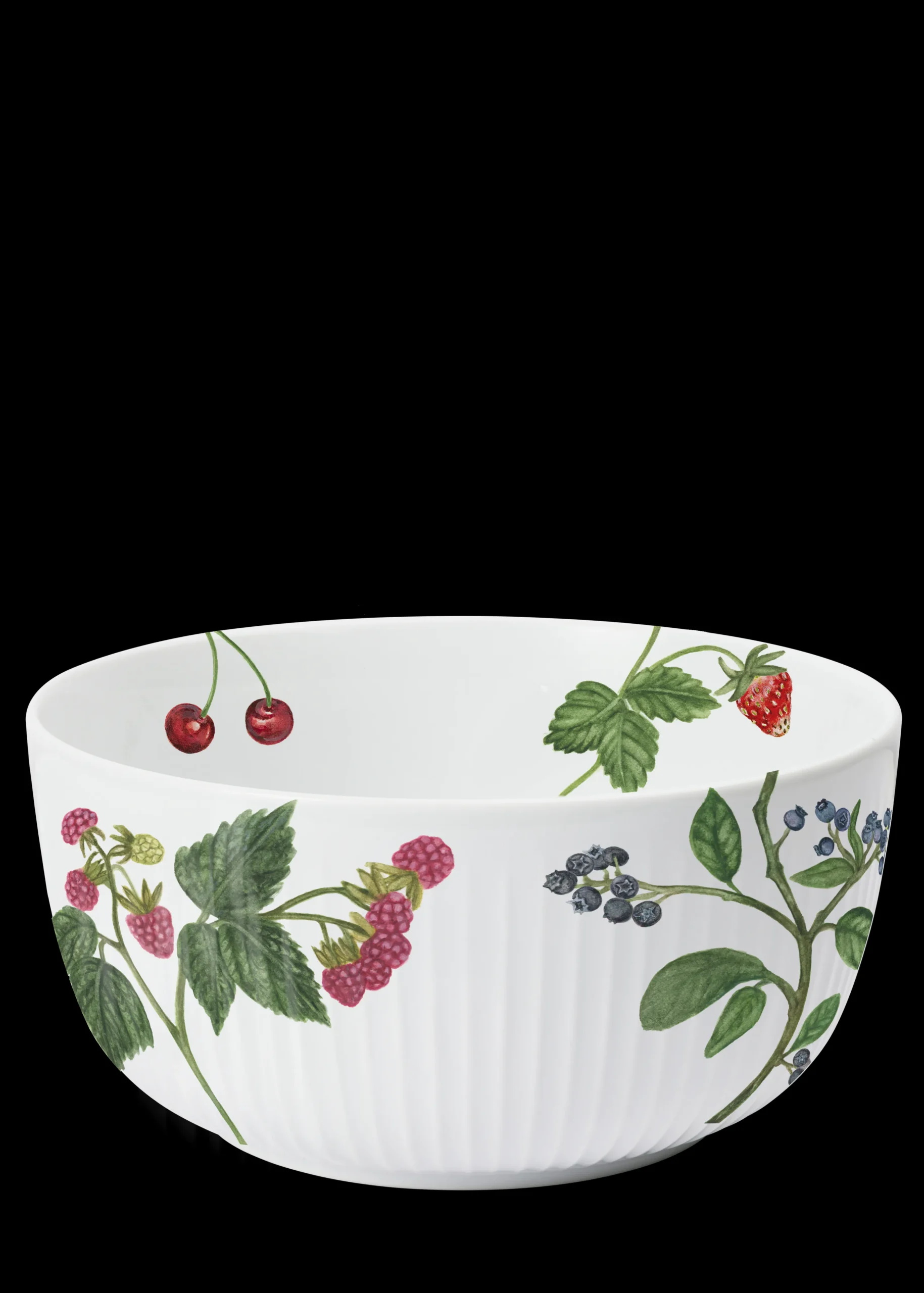 Blomstrende farver, former og følelsen af autentisk sommerstemning. Med Hammershøi Summer fra Kähler kan du næsten mærke solens stråler og den lune sommervind, når du dækker op til kaffe og lidt lækkert på terrassen, altanen eller i sommerhuset. Hammershøi Summer-serien er inspireret af den danske sommers eventyrlige former, farver og følelser, og Hammershøi Summer-skålen med sommerbær med en diameter på 21 cm er ligesom de andre dele i sommerbærtemaet flot udsmykket med blandt andet jordbær, blåbær og sommerfuglen dagpåfugleøje, der legende og poetisk flyver gennem sommeren. Sommerbærtemaet er malet på samme måde som de andre temaer i Hammershøi Summer-serien, hvor planter og blomster nærmest bevæger sig uvilkårligt hen over de klassiske riller på de hvide keramikdele. Det er som om de nærmest vokser op, ja, næsten danser hen over porcelænet med deres forskellige asymmetriske retninger. Skålen vil være et smukt supplement til de øvrige dele i serien – også på tværs af temaer – hvor den vil fuldende en glad og hyggelig sommerstemning på bordet, samtidig med at du nyder den autentiske nostalgi i Kählers håndlavede designtraditioner. Det er nemt at forestille sig Hammershøi Summer-skålen som den perfekte base for en sprød salat fra haven, og både størrelsen og selvfølgelig motivdesignet gør den helt oplagt til servering af et par bakker nyplukkede jordbær fra vejen eller det nærliggende gårdudsalg. Motiverne er skabt af kunstner Rikke Jacobsen på Hammershøi-stellets eksisterende dele designet af Hans-Christian Bauer. Med sine smukke akvareller skaber hun detaljerige motiver, hvor flora og fauna spiller en gennemgående rolle og indfanger stemningen i naturen og årstiderne omkring os.