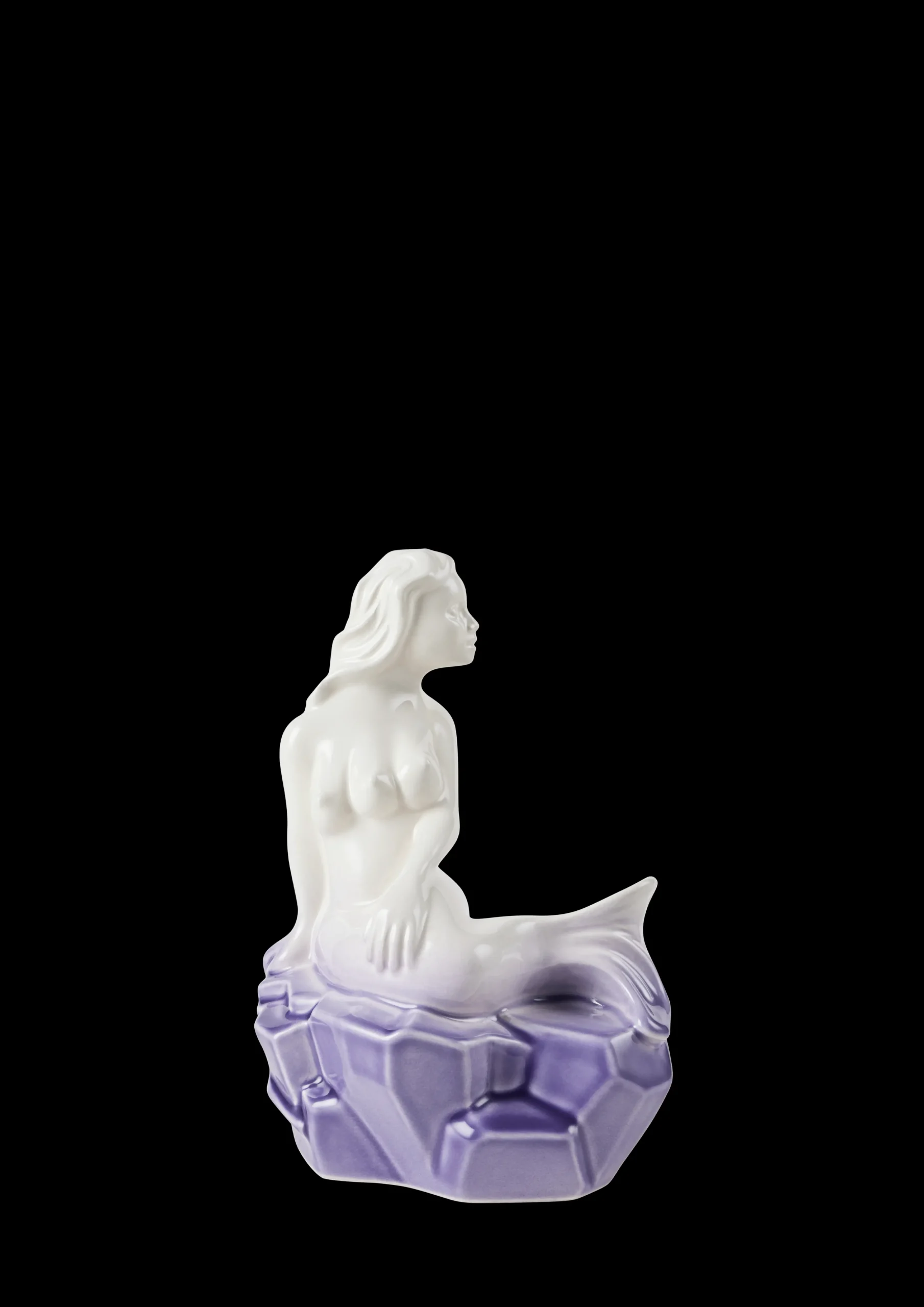 Improved and impatient. Forbedret og utålmodig. Med udgangspunkt i H.C. Andersens verdensberømte eventyr om Den Lille Havfrue har kunstner Louise Hindsgavl med sin vanlige pirrende og provokerende keramiske kunst endnu engang i samarbejde med Kähler skabt en figurativ kickstarter til livets ofte lidt svære snakke. The Ambitious hedder hendes nye figurer i glaseret keramik. Her fortæller hun historien om en havfrue, der prøver nye veje for at gøre sine drømme til virkelighed. Som den foretagsomme og initiativrige unge kvinde hun er, har hun forsøgt sig med ben i stedet for hale. Og hun er klar til at tage et skridt videre. Måske skal der et ekstra bryst til for at charmere prinsen? Den utålmodighed, som havfruen efterhånden må føle i sine bestræbelser på at få prinsen i nettet, har Louise Hindsgavl i sin fænomenale formgivning subtilt udtrykt med den svirpende bevægelse i halen. The Ambitious-figurerne er 20 cm høje og fås i grå, blå og denne lilla variant. Alle emmer af Kählers autenticitet og håndlavede designtraditioner, samtidig med at de med deres udfordrende udtryksform lægger op til samtalen om det, Louise Hindsgavl kalder ’de ting, vi skylder hinanden at tale om, men ofte ikke selv tør tage hul på’. Med The Ambitious tager hun os med ind i en utålmodighedens og mulighedernes verden og stiller sit figurative arbejde til skue – og debat. Hun påtager sig som kunstner ansvaret, påtager sig risikoen ved at starte den svære samtale. For ud over at skabe moderne kunst og design til boligen, så vil Louise Hindsgavl med The Ambitious-figurerne gerne kradse i overfladen på vores kultur og skabe platformen for en diskussion. For eksempel om hvad der ligger i vores stræbsomhed, og hvor langt vi vil gå for at indfri vores ambitioner. The Ambitious bliver kun solgt på Holmegaard værket og på Rosendahl.com. Der bliver kun produceret 200 stk. af hver farve, og de er alle nummererede. Vi kan ikke oplyse om hvilket nummer din figur har/får.