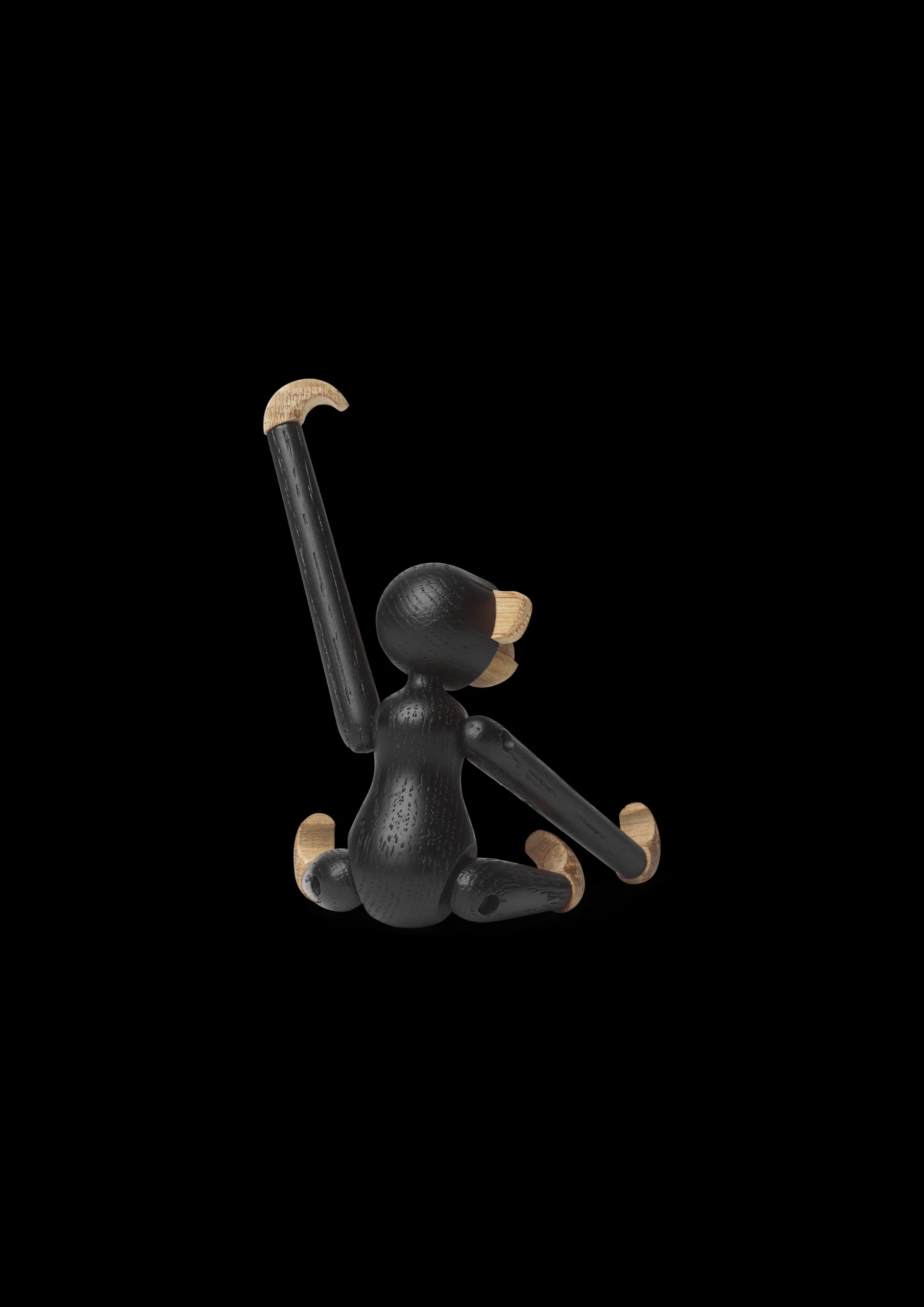 Byd velkommen til en helt ny abe i Kay Bojesens designunivers: den elegante og grafiske miniabe i mørkbejdset egetræ. Den unikke håndværksfinish, der kendetegner Kay Bojesens produkter, er tydelig i den nye miniabe, hvor træet spiller hovedrollen og er behandlet med nænsomhed og respekt. Det kræver stor omhyggelighed og erfaring, når abens små dele skal bejdses, og der ligger mange timers håndværk i hver enkelt lille abe. Den bejdsede overflade giver træet en dybsort overflade med glød, varme og liv, og de imponerende håndværksdetaljer skaber sammen med den mørke farve et eksklusivt udtryk. Den nye, stilfulde abe er den perfekte gave til designelskeren. Eller til ham eller hende, der slet ikke kan få nok af Kay Bojesens aber. Uanset hvor aben flytter ind, vil den skabe smil og stil med sin finurlige fremtoning og sit elegante udseende.