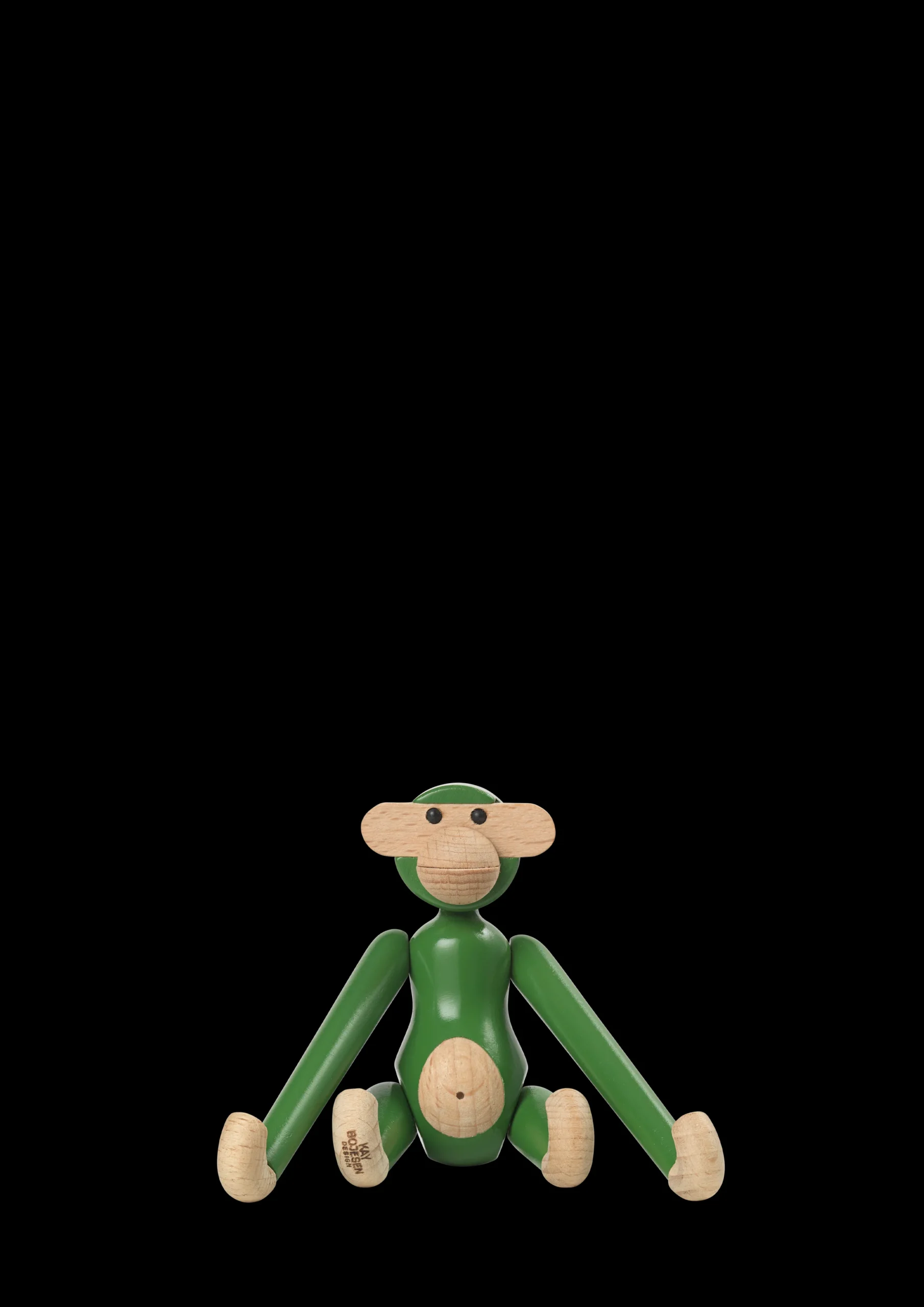 Kay Bojesens Abe har altid haft en farverig personlighed. Og miniversionen i bøgetræ i farven vintagegrøn er hentet fra et originalt tapet fra arkiverne, som Kay Bojesen designede til børneværelset i slutningen af 1940’erne. Den grønne farve har en herlig retro-vibe, der passer perfekt til den designklassiker, som Aben er. Nuancen står smukt til bøgetræets kølige udtryk og er med til at fremhæve skønheden i det FSC®-certificerede bøgetræ, der træder frem på hænder og fødder, ansigt og mave og giver den farvede miniabe et ungdommeligt og charmerende præg. I legen med farver ser man Abens linjer på en helt ny måde, og enkeltdelenes originale og geniale designkvaliteter fremhæves i kontrasten mellem træ og bemaling. Miniaben måler ca. 10 cm i højden og findes også i vintageblå, vintagerød og vintagegul – alle originale farver fra arkiverne der bringer endnu mere smil til de smilende linjer, der kendetegner Kay Bojesens design. Alle fire aber komplimenterer hinanden smukt og vil skabe smil og stil med deres farverige personligheder, uanset hvor de flytter ind.
