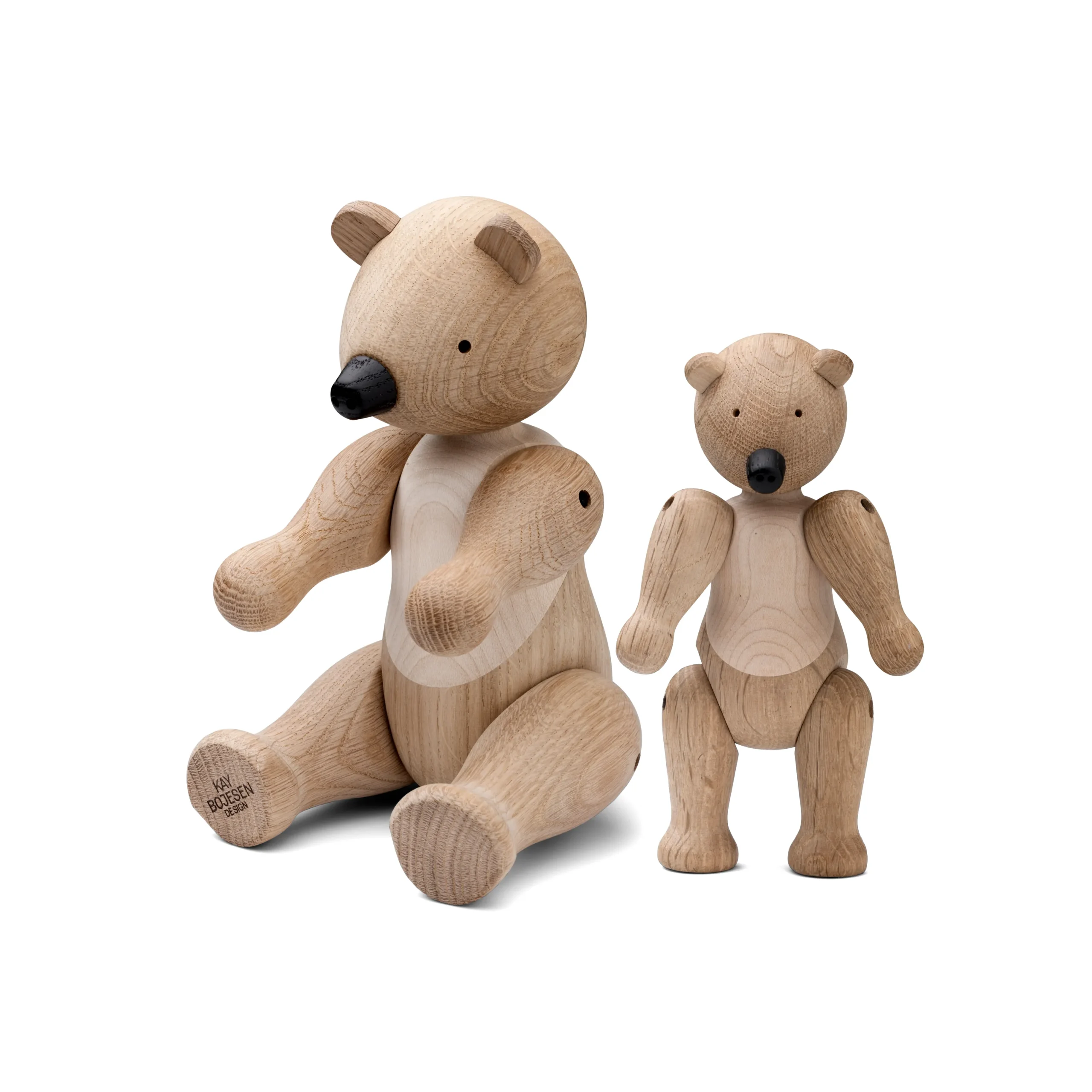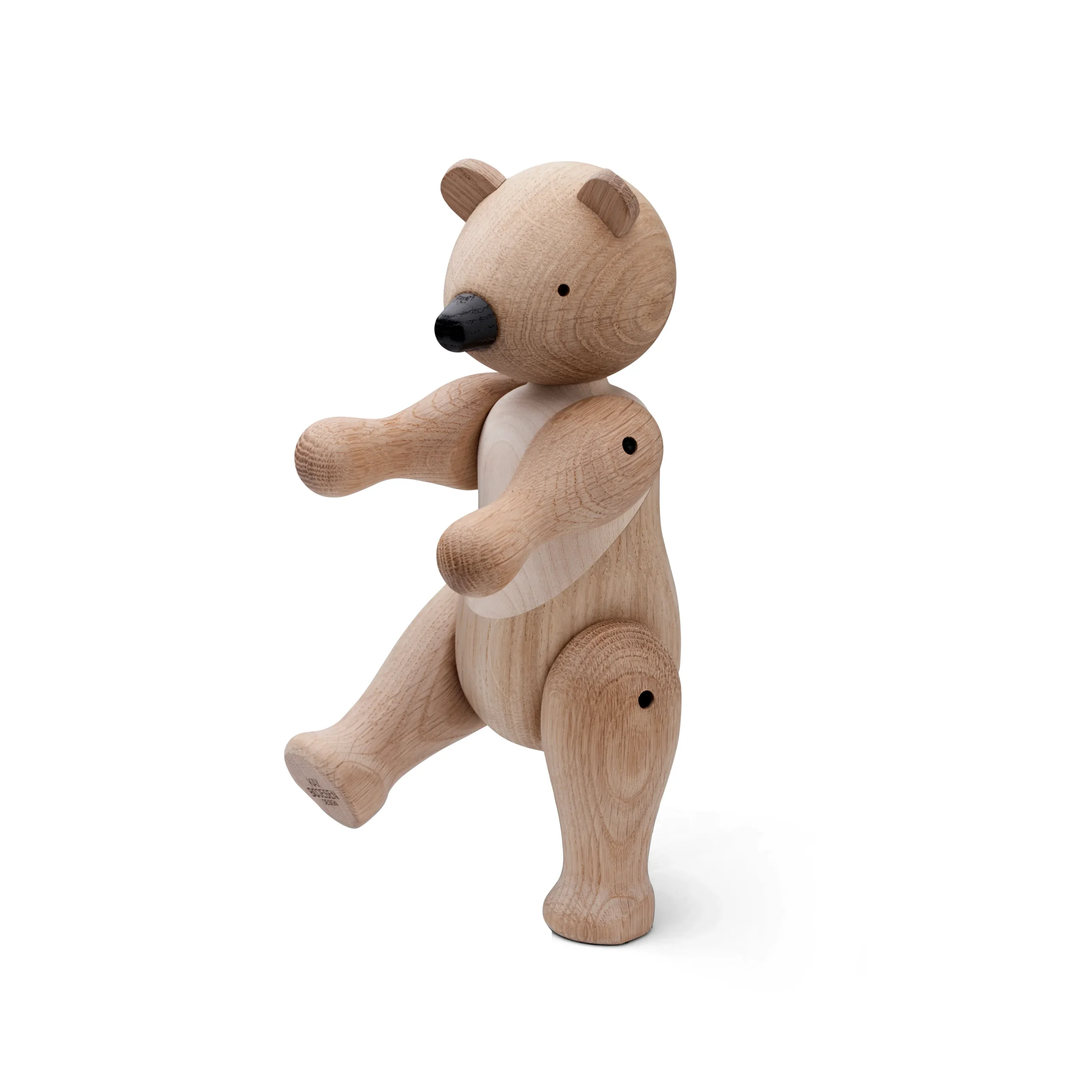 Den søde bjørn fra Kay Bojesen så oprindeligt dagens lys for første gang i 1952. Denne udgave er i mellemstørrelse og produceret i ubehandlet eg og ubehandlet ahorn, der får bjørnen til at passe godt ind blandt de øvrige figurer i træ fra Kay Bojesen. Bjørnen måler 25 cm i højden og er den perfekte gave til både store og små, idet den kan følge både barn og voksen igennem hele livet. Her får du et designikon i robust og tidløst design, der aldrig går af mode.