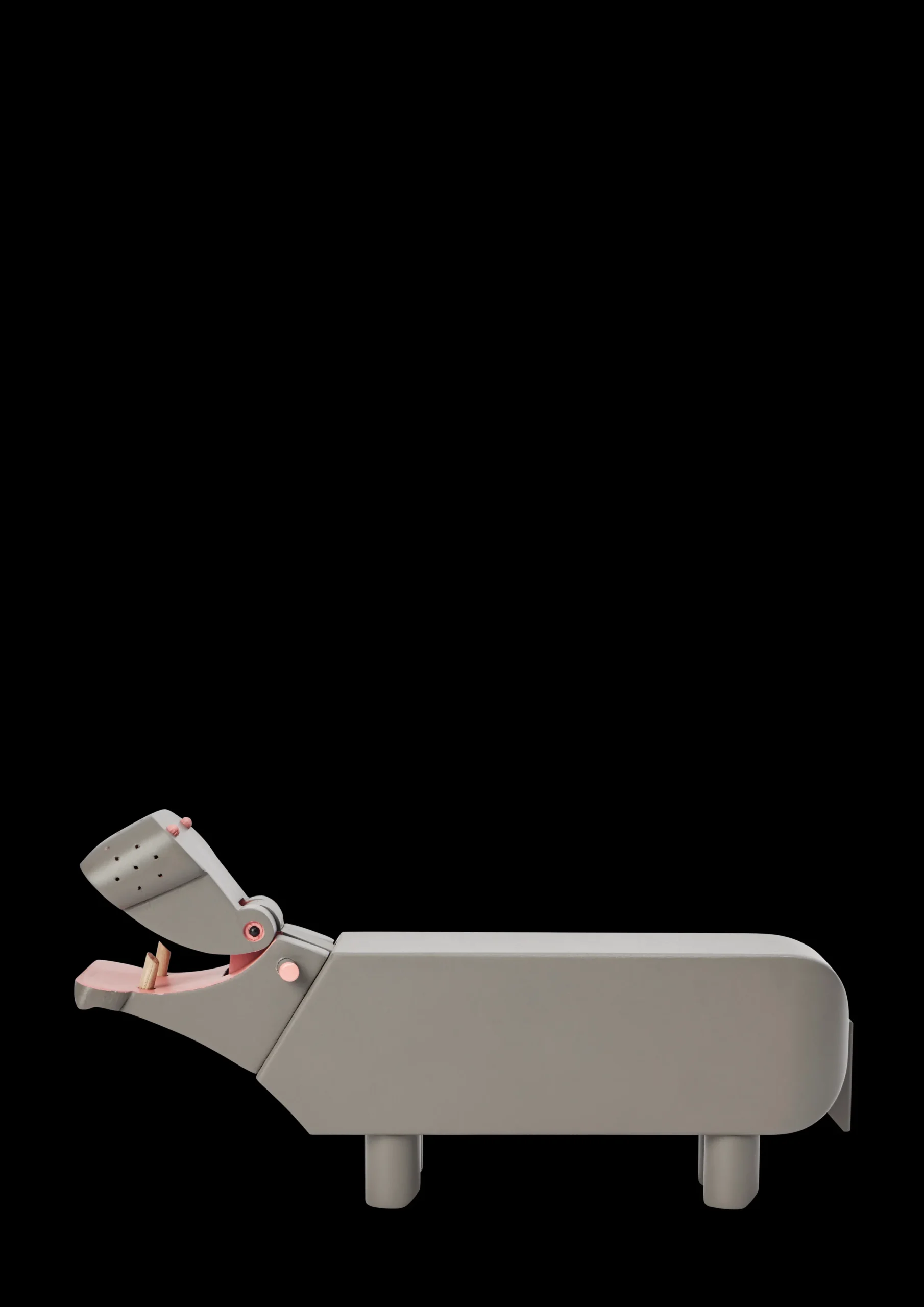 En charmerende sværvægter fylder 70 år. Med sit åbentstående gab og finurlige udtryk er Flodhesten en figur, man elsker ved første øjekast. Den er næsten for sjov til at være sand, og det er nemt at forstå, hvorfor Kay Bojesen lod sig inspirere af en af dyrerigets mest originale karakterer, da han skabte sin kendte og elskede Flodhest tilbage i 1955. I modsætning til de fleste andre af Kay Bojesens trædyr, der oftest ses i bløde og runde former, er Flodhesten noget mere firskåren i designet med overvejende rette og lige linjer – til gengæld brillerer den med et stort og kærligt smil og masser af power og glimt i øjet. Og så har Flodhesten det der umiskendelige udtryk af omsorg og harmoni. Ja, det er nærmest som om, at den stærke træfigur kommunikerer, ‘stol trygt på mig, jeg har altid din ryg’. Ifølge arkiverne havde Kay Bojesen selv en grå flodhest stående på sit skrivebord, og den runde fødselsdag fejres med to jubilæumsudgaver i FSC®-certificeret bøgetræ malet i en eksklusiv grå farve – en rigtig flodhestefarve – mens det store gab malet lyserødt. Uanset om du vælger denne jubilæumsversion på 9 cm i højden eller den lidt mindre Liliput-udgave på 6 cm, så får du håndlavet kvalitet i et elsket legende og tidløst design, hvor Flodhestene med deres venlige udtryk, de runde øjne og den lange stærke form vil tilføje et strejf af hygge og varme til ethvert rum. Brug dem for eksempel som små overraskende designelementer i boligen, der titter frem, hvor man mindst venter det. De to grå Flodheste produceres kun i 2025 og vil derfor også være oplagte som den unikke gave til dåb, fødselsdag, studentergave, bryllup – eller det store jubilæum.