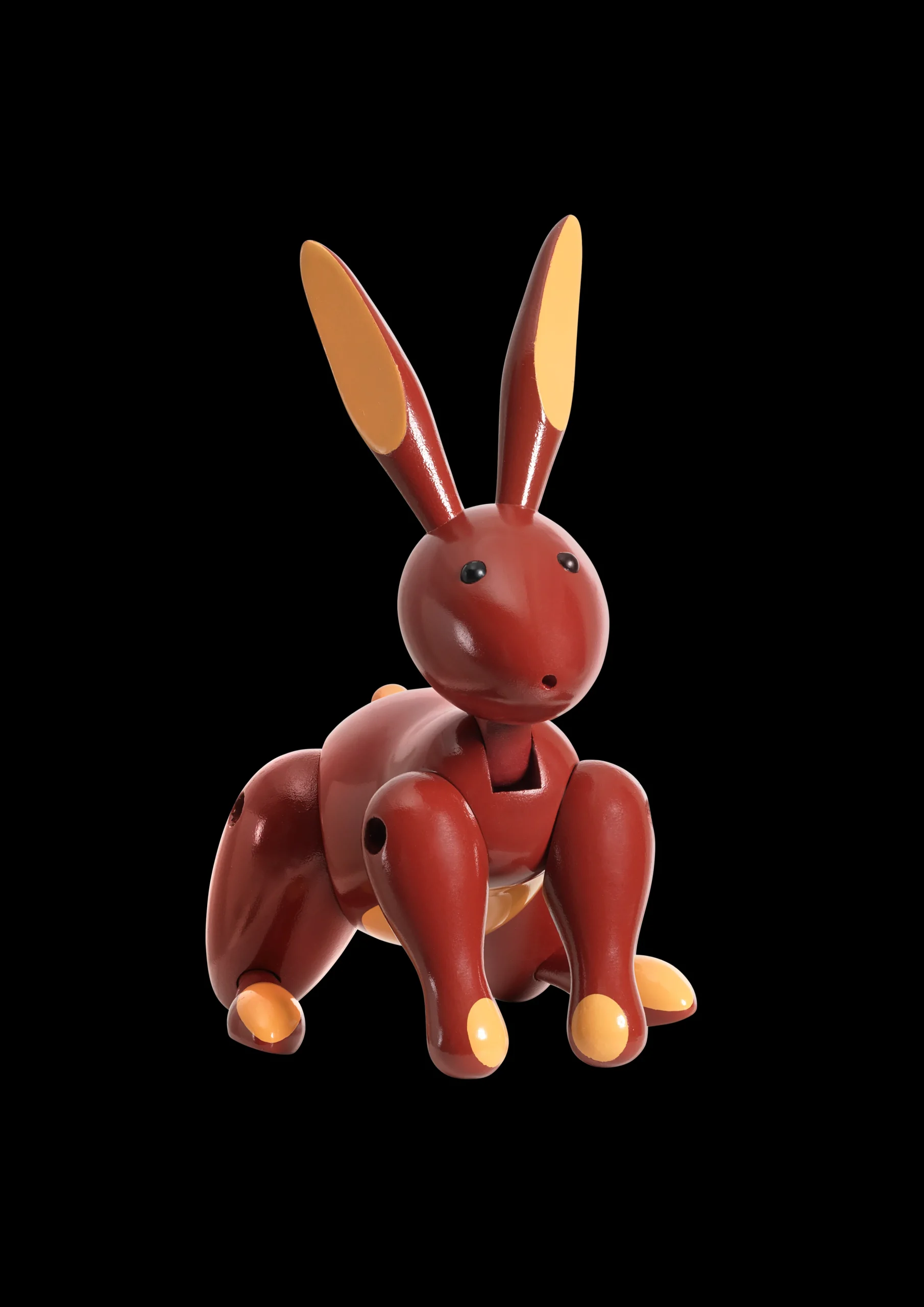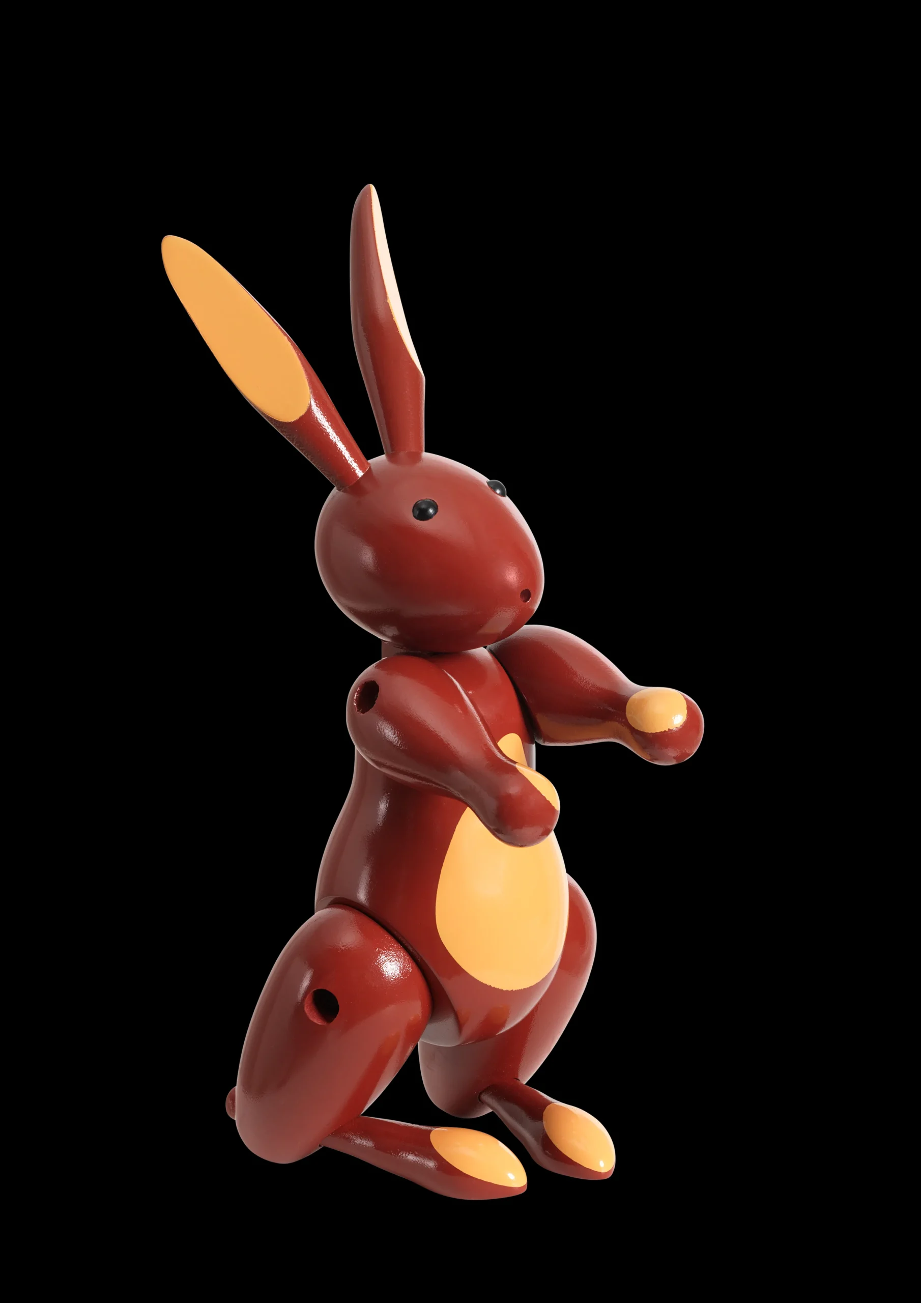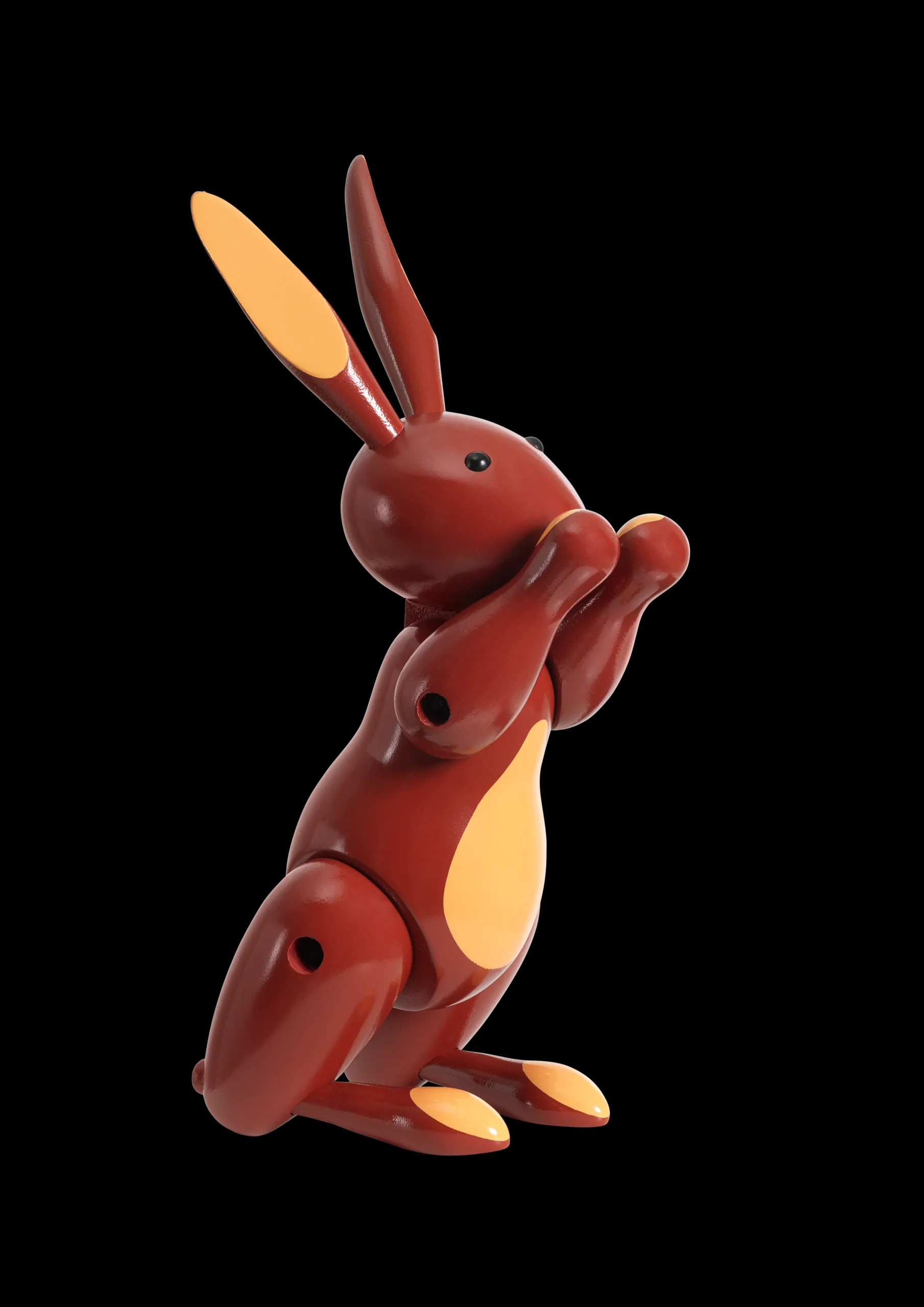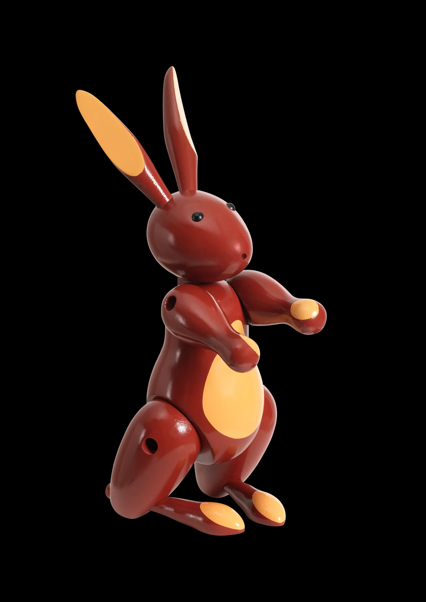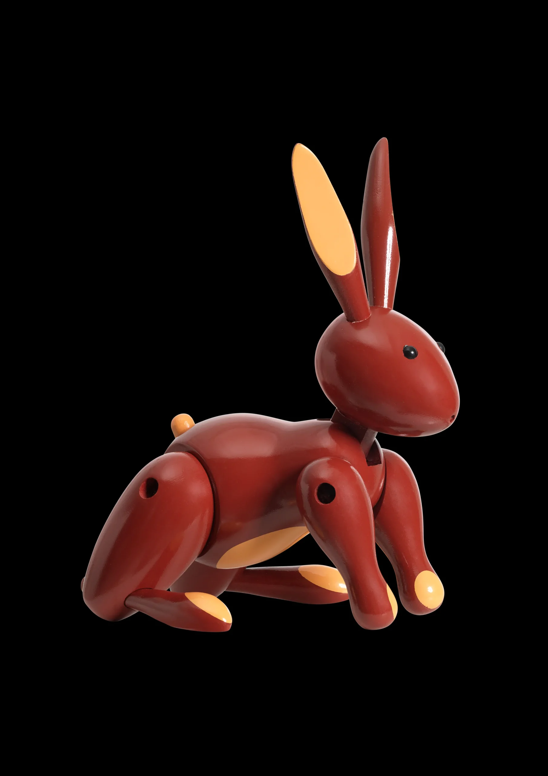 Kay Bojesen skabte sin kendte Kanin i 1957 – og det energiske design markerer på mange måder noget særligt i hans ikoniske designcirkus. Kaninen nåede at blive den sidste figur eftersom Bojesen døde året efter og satte dermed punktum for et af de mest originale universer i dansk designhistorie. Den Røde Kanin med gul mave og poter er kendt blandt samlere som den originale malede Kanin, som med glossy farveskær får endnu mere vitalitet i designet. Den Røde Kanin får følgeskab af en Blå Kanin i moderne midnats blå toner i mat bemaling.