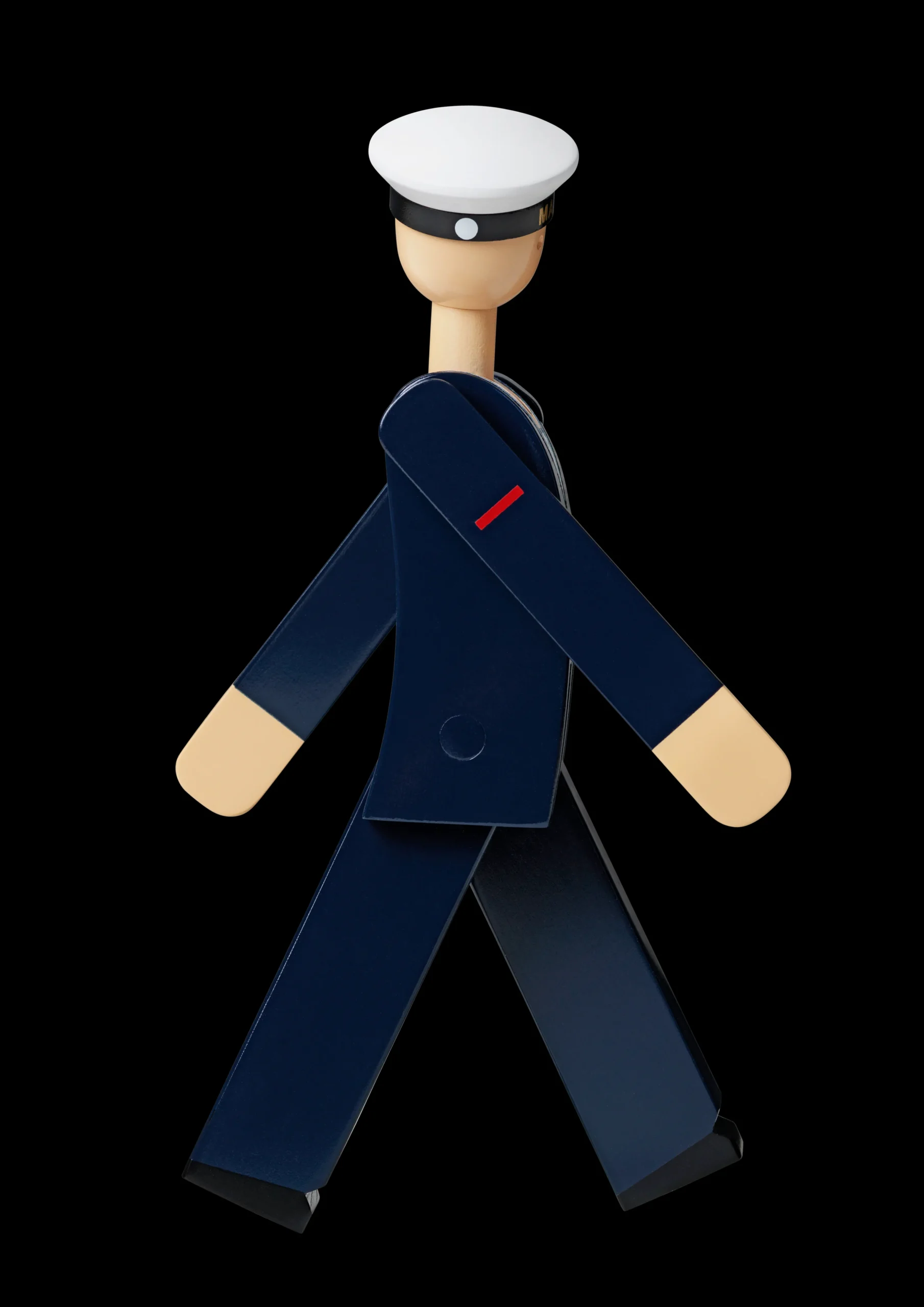 Kender du en, der arbejder med søfart, eller er du blot glad for dansk design? Stik til søs med en klassiker som Kay Bojesens Marine i mørkeblå og hvide farver. Med huen på skrå og en stribet krave bærer soldaten stolt sin uniform frem. nnDenne Marine er skabt i en ny og opdateret version – dog med den samme grundform som den originale figur. Desuden er hver en detalje malet i hånden med stor præcision. Der venter dig altså virkelig flot, dansk design. Den enkle træfigur i malet bøgetræ vil stå fint på eksempelvis en reol.nnHistorien bag den charmerende træfigur stammer fra en oplevelse i Kay Bojesens liv. En dag var han ombord på et russisk fragtskib ved navn Minsk og blev venner med sømændene ombord. Det inspirerede ham til at skabe den ranke og stolte marinesoldat. Bestil ham her på siden, og få ham leveret i en fin Kay Bojesen æske.