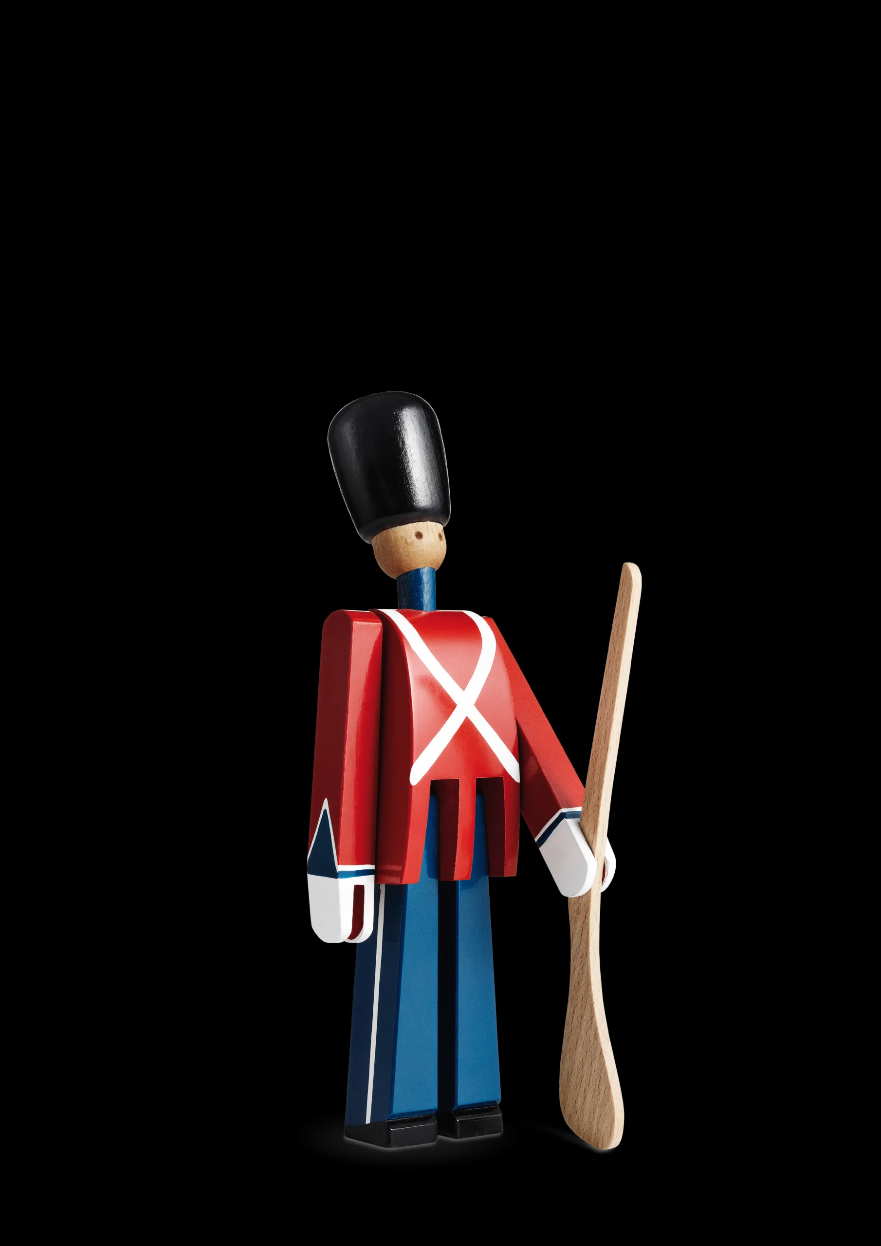 Inspireret af et af Danmarks nationalsymboler fra Amalienborg Slotsplads skabte Kay Bojesen i 1942 sine håndmalede gardere. Lige siden har Trommeslageren, Fanebæreren og den Menige garder med gevær været stolte repræsentanter for dansk kvalitetsdesign. En god gaveide for livet til både børn og voksne. Vær forsigtig når geværet placeres. Placer geværet forsigtigt i garderens hånd. Det er ikke nødvendigt at presse geværet helt ind – kun indtil det sidder fast.