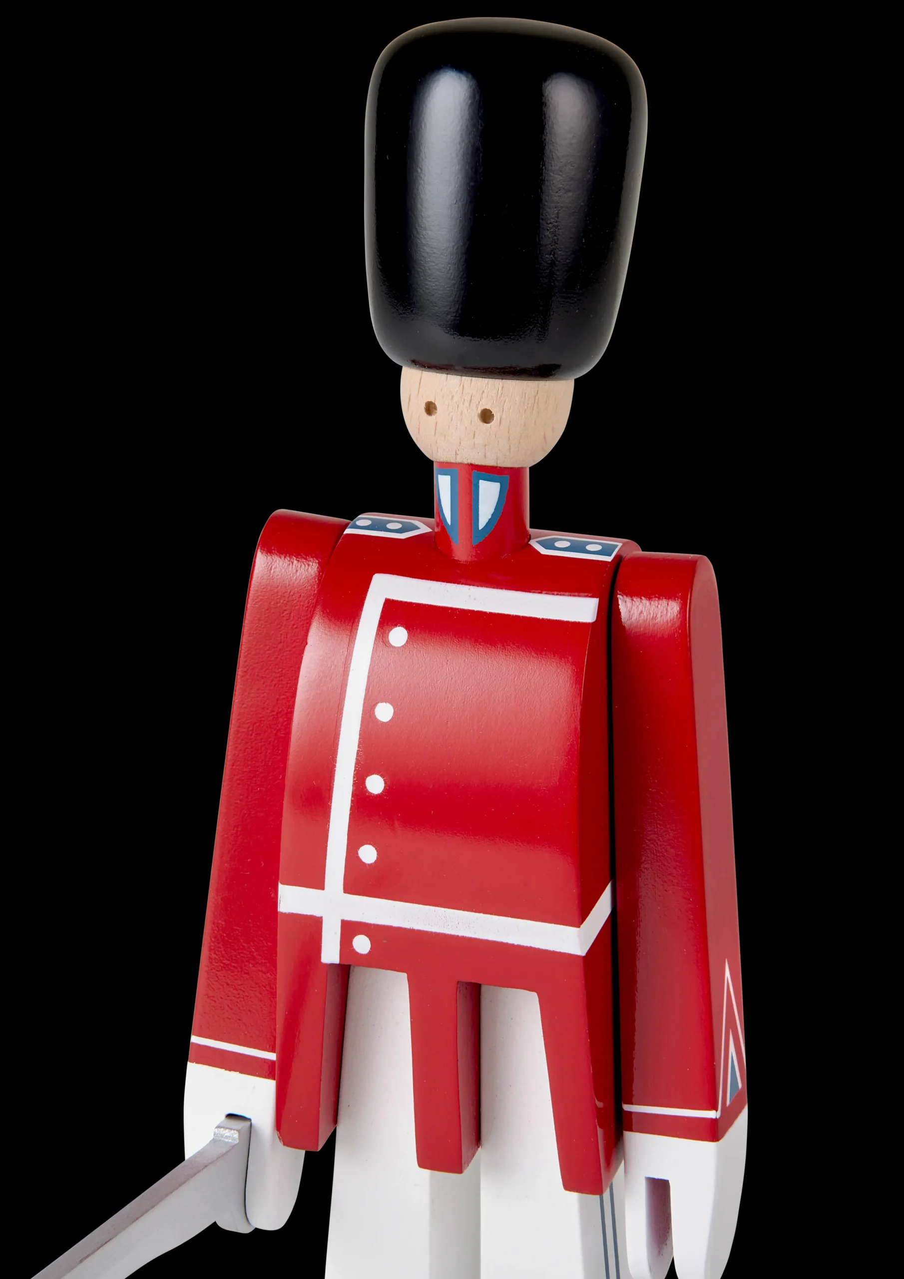 Kay Bojesen kunne som ingen anden skabe originale fortællinger i træ. Han kunne få træet til at leve. Eller som han selv formulerede det: ’Linjen skal smile’. Og det gør den hele vejen igennem serien af Træfigurer – den ene mere ikonisk end den anden. Se bare denne unikke Tivoli Officer i røde og hvide farver, der som alle de berømte Gardere er inspireret af et af Danmarks nationalsymboler fra Amalienborg Slotsplads. Kay Bojesen skabte soldaterne for første gang i 1940 i anledningen af Kong Christian X’s 70-årsfødselsdag som en hyldest til den danske konge. Den lille Tivoli Officer med sabel er drejet i FSC®-certificeret bøgetræ, og den manuelle produktion med maling og tryk er udført med den store præcision og omhyggelighed, der kendetegner Træfigurerne fra Kay Bojesen. Den vil være en populær gave til særlige lejligheder som jubilæer, bryllupper, barnedåb og fødselsdage. Tivoli-Garden er kendt for det flotte optog gennem Tivoli med musik og røde og hvide uniformer. Medlemmerne i verdens ældste ungdomsgarde bliver optaget allerede fra 7-årsalderen og gennemgår en musikalsk uddannelse på eliteplan. Kay Bojesen kunne som ingen anden skabe originale fortællinger i træ og skabte første gang den store garder i 1940 og senere den lille garder i 1942, som denne Tivoli-garder er inspireret af. Garderen med sabel leder Tambourkorpset. Vær forsigtig når sablen placeres. Placer sablen forsigtigt i garderens hånd. Det er ikke nødvendigt at presse sablen helt ind – kun indtil den sidder fast.