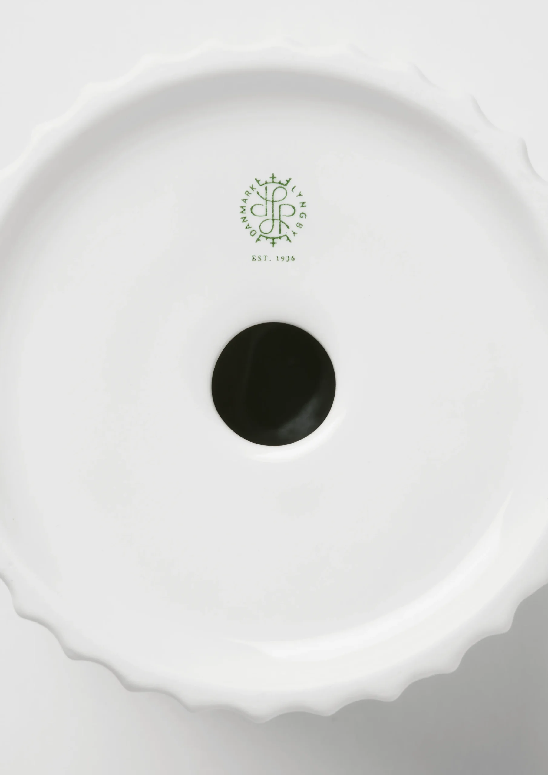 Elegante former, kant og masser af attitude. Med denne Tura-lysestage til bloklys får du enkel, stilren og skulpturel brugskunst, som vi kender det fra Lyngby Porcelæn, hvor arkivdesign, klassiske former, mønstre og rendyrket æstetik udfoldes med linjer til perfektion. Lysestagen måler 10 cm i højden og er designet, så den nærmest trækker lyset ned i den øverste halvkugle. De ikoniske Lyngby-rifler følger lysestagens markante former og skaber et moderne udtryk i kontrasten mellem det stringente og det bløde. Og detaljen med halvkuglerne, der møder hinanden i det smalle bånd, giver samtidig lysestagen en lethed, der passer perfekt ind i nutidens interiør, hvor Tura-lysestagen med sit voluminøse formsprog og store personlighed helt naturligt fanger opmærksomheden i rummet og nærmest er en skulptur i sig selv.