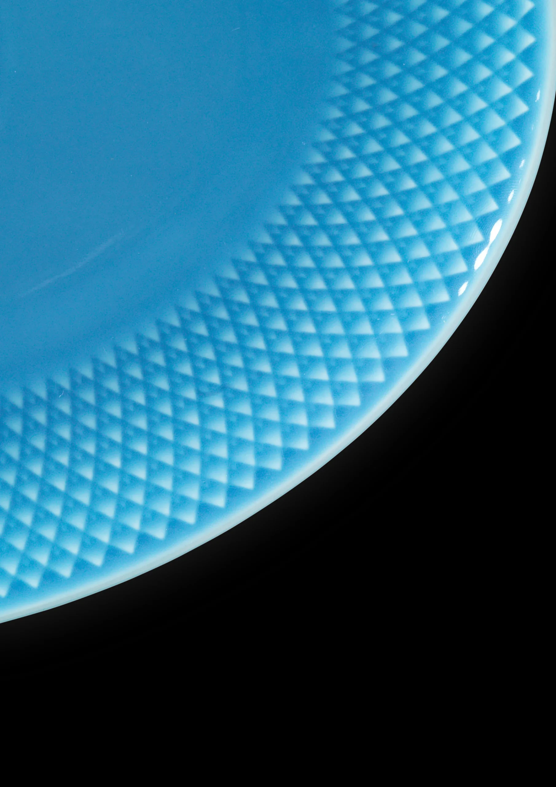 Både farven og formen på et serveringsfad er med til at skabe oplevelsen af den mad, vi spiser. Måske har fadet en farve, der står i stærk kontrast til ingredienserne i retten, så der skabes et overraskende visuelt udtryk. Eller en farve, der taler sammen med en eller flere af rettens elementer, så udtrykket bliver harmoniske og sammenhængende linjer til perfektion. Uanset hvad, er der rig mulighed for at skabe en personlig og kreativ præsentation og oplevelse af maden med fadene i Rhombe Color-serien. Rhombe Color-seriens store, ovale serveringsfad på 35 cm kommer nu også i mørkeblå, og det mellemstore serveringsfad på 28,5 cm kommer i blå. De blå farver har et køligt og indbydende udtryk, der skærper sanserne og præsenterer maden smukt og overraskende.