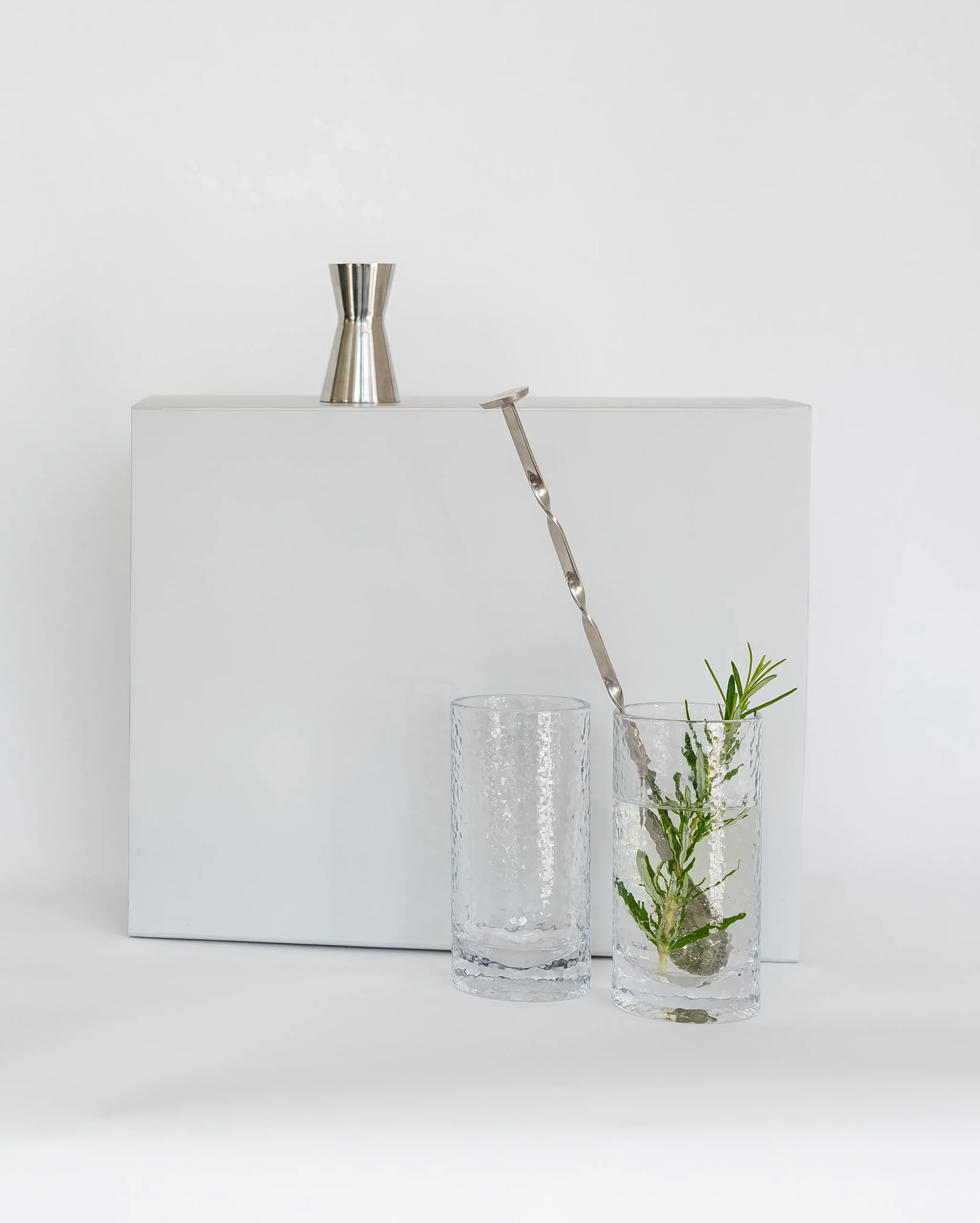 Cocktails og longdrinks er populære som aldrig før. Med det rigtige udstyr er det slet ikke så svært at komme videre fra den klassiske gin u0026 tonic. Men selv med enkle drinks er der en fin balance mellem succes og fiasko. Perfekte drinks kræver nøjagtig opmåling af ingredienserne og det stilrene målebæger i rustfrit stål er en helt uundværlig del, der gør det til en fornøjelse at mikse drinks både de avancerede og de helt enkle. Målebægeret kan afmåle både 2 og 4 cl. Den kunstfærdige røreske i rustfrit stål kan bruges både som måleske og til skånsomt at blande ingredienserne.nDet ideelle glas til longdrinks er et højt og slankt highball glas. Forma longdrinkglas fra Holmegaard er en perfekt cylinder med en robust base, hvor overfladens struktur giver liv til dine drinks. Her har du det perfekte barware sæt til alt fra helt enkle drinks til de meste avancerede cocktails.nnBoksen indeholder:nRosendahl Grand Cru – bar-ske med muddler H31. Vejl. pris: 149,95 kr.nRosendahl Grand Cru – målebæger 2cl/4cl. Vejl. pris: 149,95 kr.nHolmegaard Forma – Longdrinkglas 32 cl 2 stk. Vejl. Pris 299,95 kr.nTotal værdi: 599,85 kr.