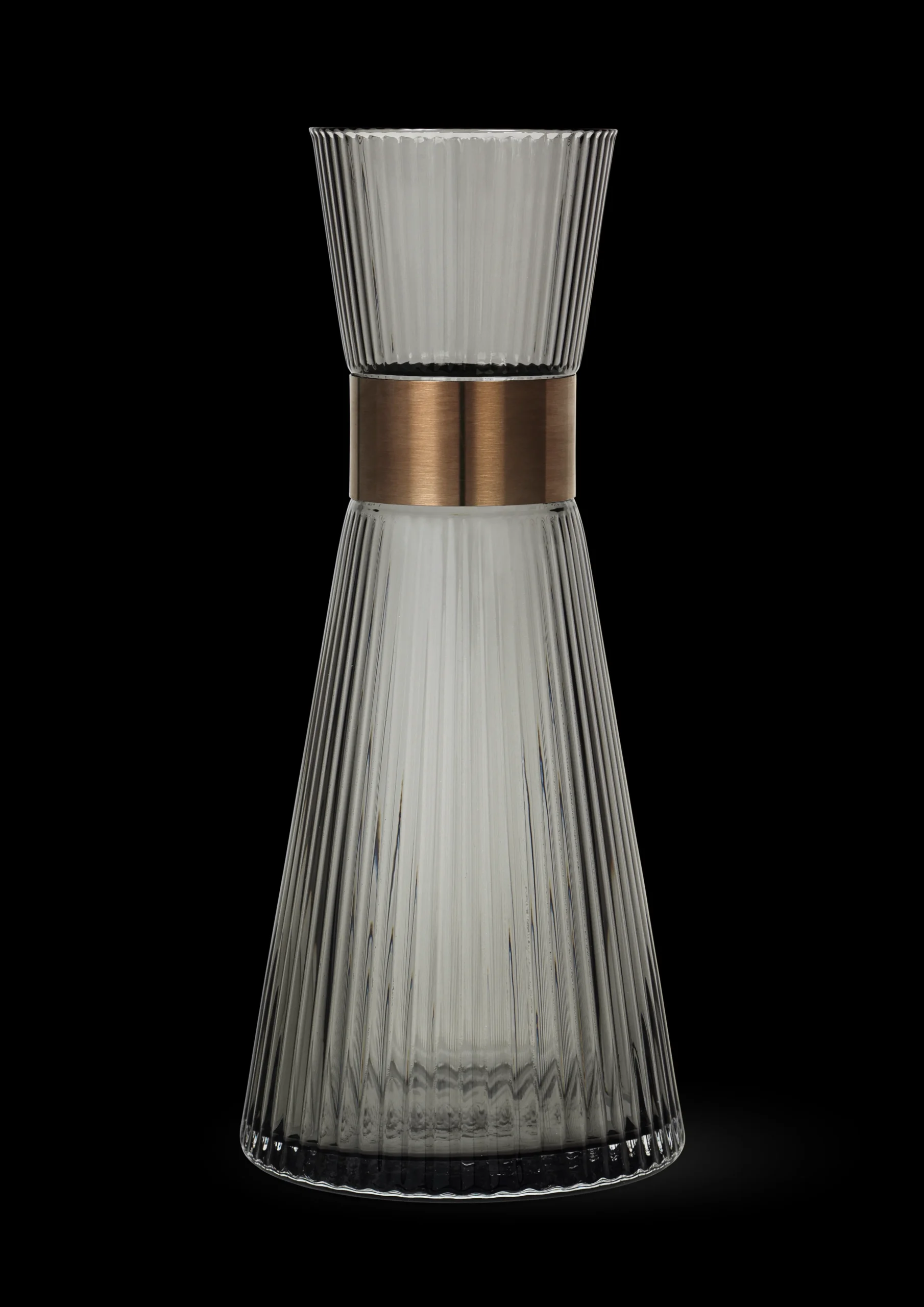 Servér iskoldt, forfriskende vand i den elegante Grand Cru Nouveau-vandkaraffel. Den er skabt i røgfarvet glas og er både let og elegant. Gentagende riller pryder overfladen i glasset og skaber et raffineret optisk spil, når lyset brydes. Et elegant eksempel på funktionelt glasdesign til det moderne liv. Den rummer 1 liter og tåler opvaskemaskine op til 55 grader.