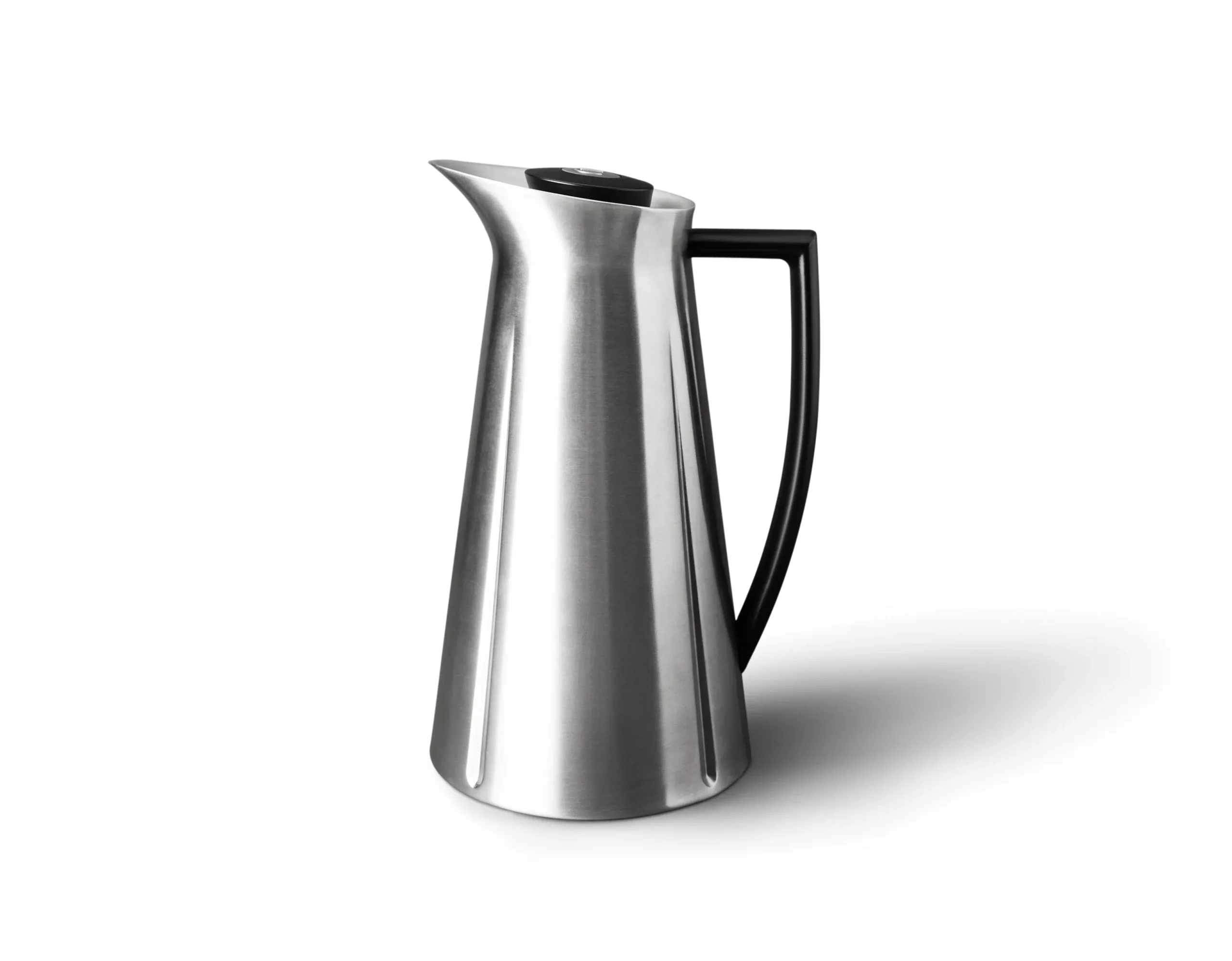 Med denne termokande i blankpoleret stål får du en testvinder, der både er dekorativ og holder på varmen. Trykknapfunktionen lukker mindst mulig varme ud ved servering, og den dobbeltvæggede glasindsats øger isoleringen.