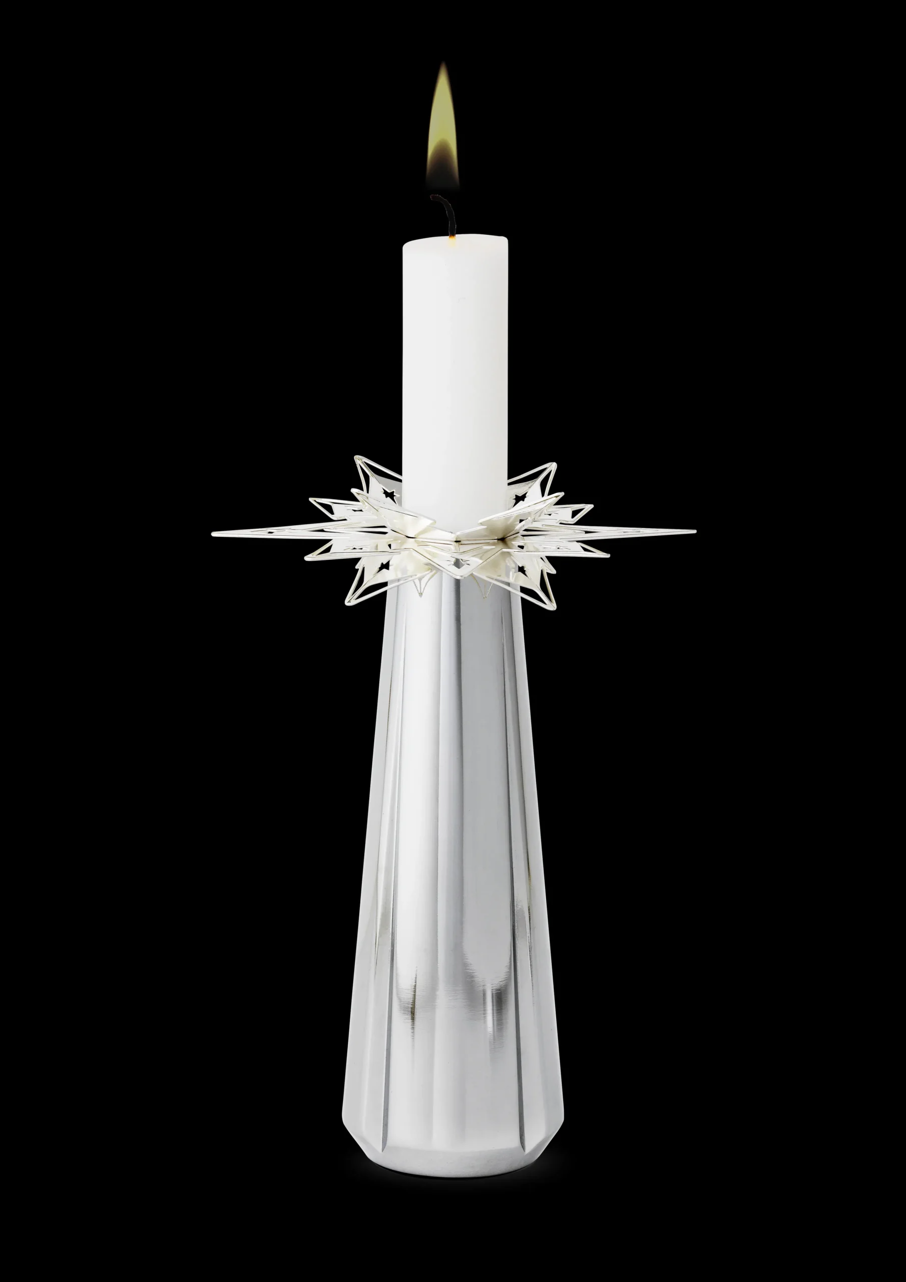 Skru op for julestemningen med Karen Blixens Jul – en fantastisk kollektion fyldt med historier og magi. De fine skulpturelle lysmanchetter formet som stjerner er designet af kunstneren Zarah Voigt, som med sit æstetisk smukke design gør det nemt at tilføje lidt julemagi. Brug fx de forsølvede stjernemanchetter sammen med Grand Cru lysestagerne eller adventsstagen og vær ikke bange for at mikse guld og sølv. Manchetterne fås også forgyldt. Produktet vil patinere med tiden. Vi anbefaler ikke at benytte pudsemiddel på produktet. Vi anbefaler at produktet opbevares i original kasse, da dette vil forlænge levetiden på produktet.