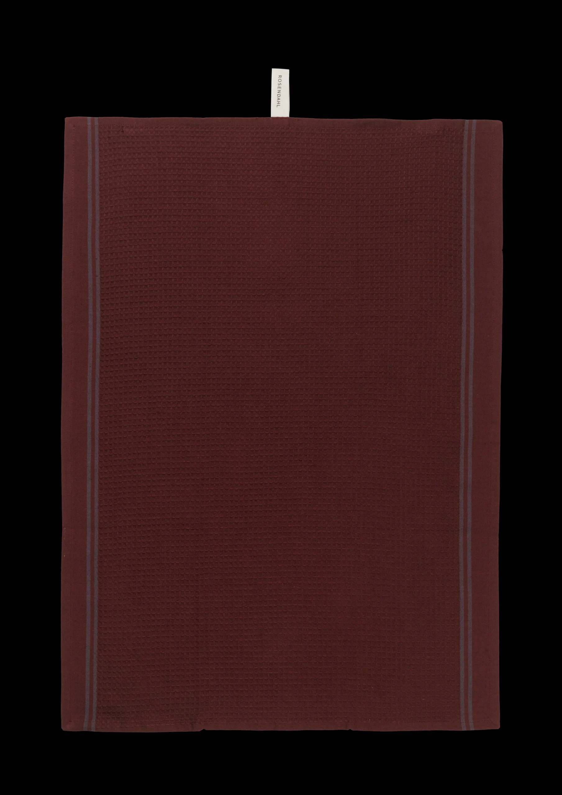 Rosendahl Textiles Alpha-viskestykket er fremstillet af 100% økologisk bomuld ,GOTS-certificeret, og er kendetegnet ved den dybe tredimensionelle vaffeltekstur. Viskestykket måler 50×70 cm og er her i burgundy farve med sidestriber i mørkegrå. Det er meget absorberende og tilføjer et øjeblikkelig løft til ethvert køkkenrum. Kan vaskes op til 60 grader. Rosendahl Textiles Alpha-viskestykket fås i flere farver.