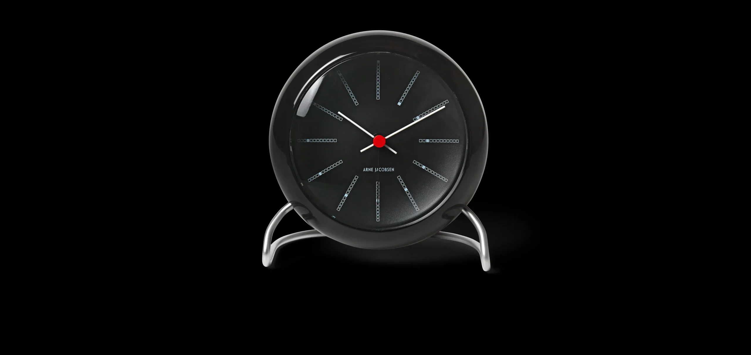 Det smukke Bankers bordur fra Arne Jacobsen er fremstillet i et hærdet slagfast topglas. Borduret Bankers måler 11 cm i diameter og er fremstillet sort i sort. Det er med til at give uret et unikt udtryk. Foden er i massiv rustfrit stål. nBankers blev designet i 1971 med formålet om at udsmykke Danmarks Nationalbank. I 1978 stod bygningen færdig, hvor Bankers blandt andet pryder den 20 m høje forhal. Arne Jacobsen vandt flere konkurrencer om den danske nationalbank i 1961. nDet unikke og særlige bordur udtrykker dansk design på en neutral, men alligevel detaljefuld måde. Borduret vil være et dekorativt og minimalistisk element i din indretning.