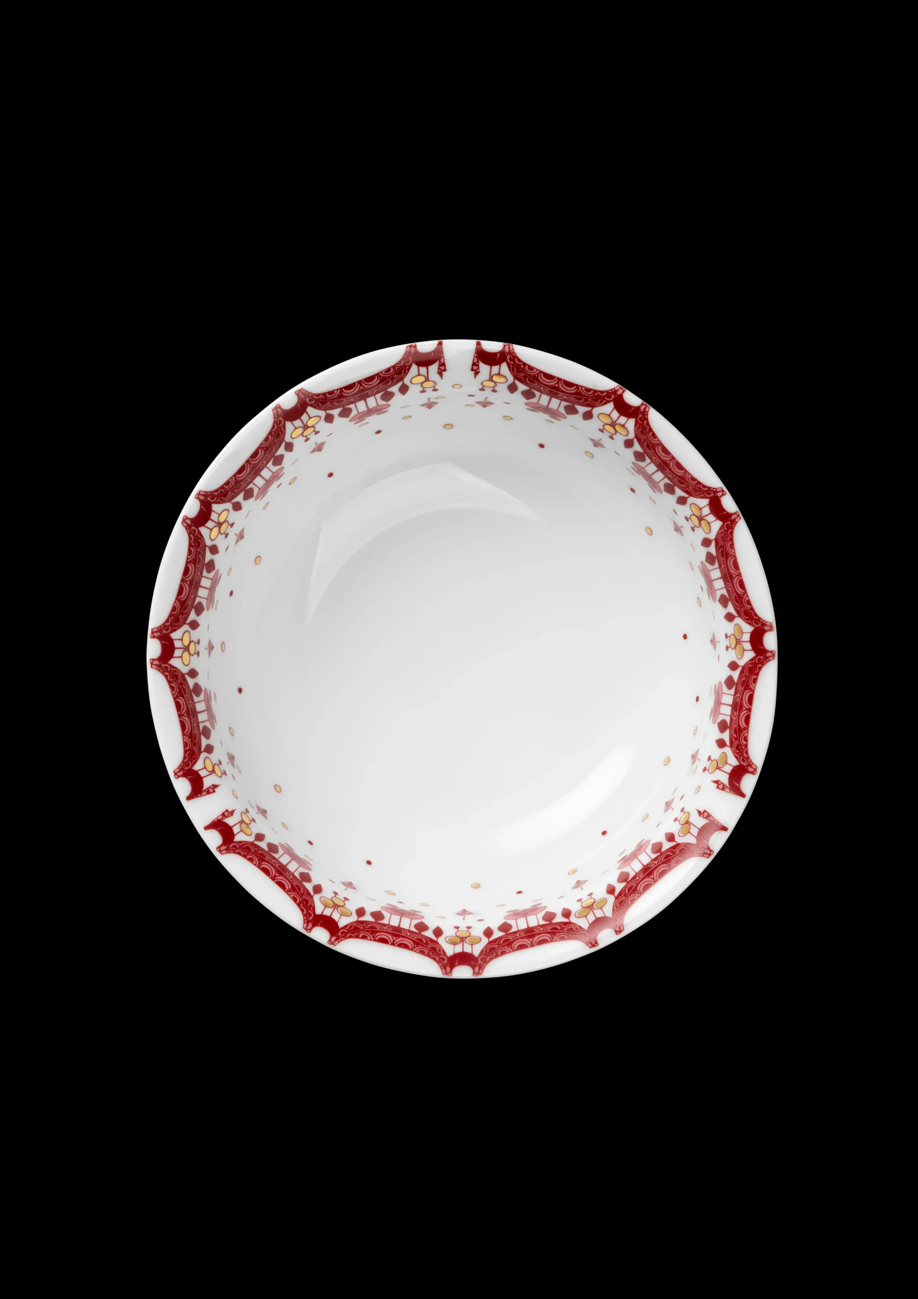 Denne søde juleskål i porcelæn spreder julestemning i ethvert hjem. Skålen er dekoreret med håndapplikerede julemotiver i ægte guld og rød, hvilket giver en flot effekt, når skålen stilles på bordet.nJuleskålen har en diameter på 20 cm og er 8 cm høj og kan kombinéres med tallerkener fra samme serie, og skab et eventyrligt julebord. nGuirlande-serien er en god gaveidé for alle, der holder af Bjørn Wiinblads fantasifulde univers.