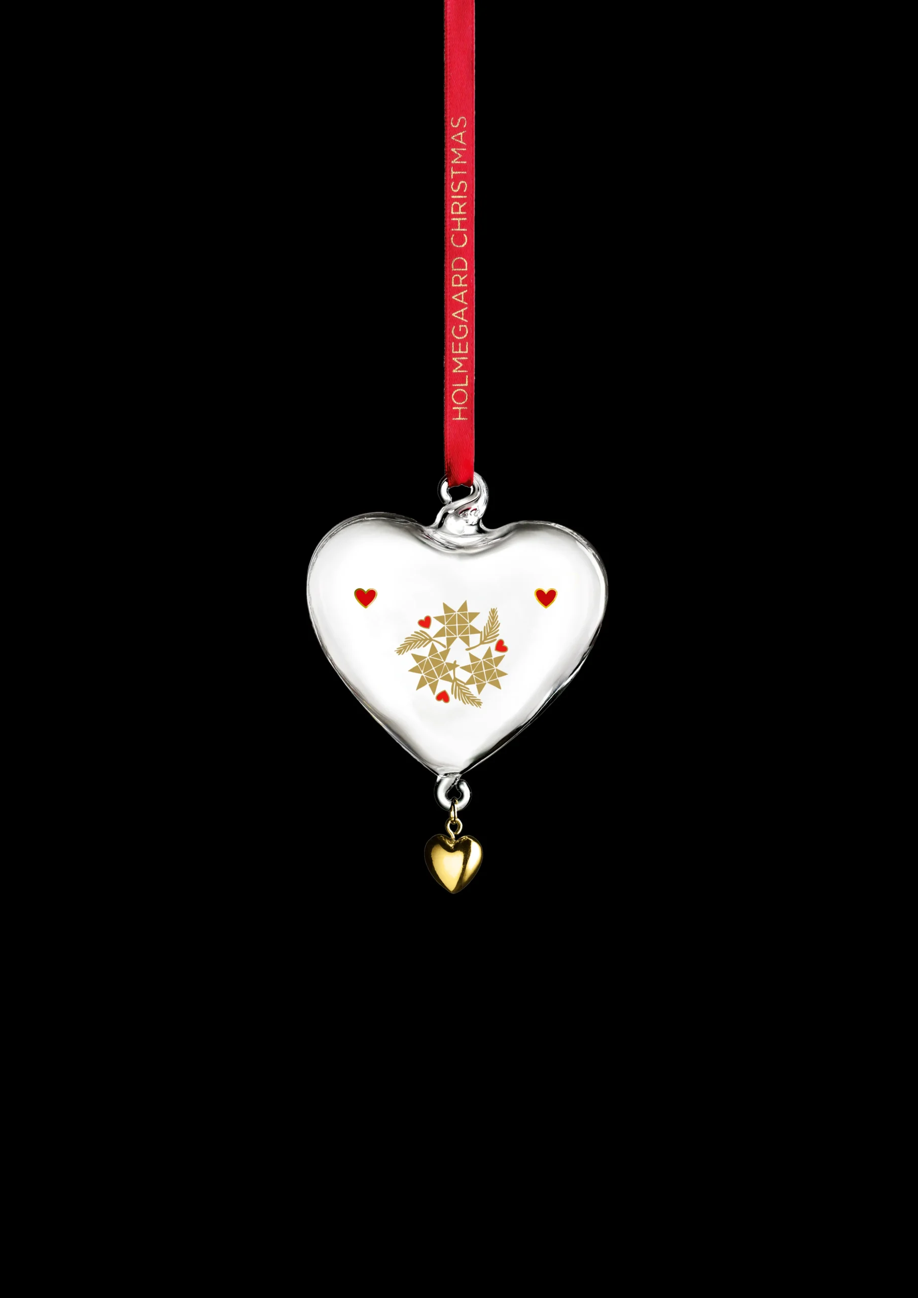 År efter år skaber Holmegaards glaspynt nye minder gennem refleksioner i glas. Holmegaards årlige juleklokke, hjerte og stjerne lavet i mundblæst glas er i nogle hjem blevet et regulært samlerobjekt. Bag det elegante ophæng står den danske designer Ann-Sofi Romme, der i 1993 skabte den første Holmegaard-juleklokke med motiv. Og siden da er det blevet til en hel kollektion bestående af klokker, hjerter, stjerner og kugler i mundblæst glas, der hvert år får et nyt, smukt julemotiv – 2024-kollektionen har den flettede papirstjerne som omdrejningspunkt for julehyggen. Årets lille julehjerte 2024 fra Ann-Sofi Romme er 8 cm højt, prydet med en flettet stjerne og kommer som altid i mundblæst glas. Farverne er holdt klassiske i rød og guld og med en afsluttende metallisk finish, og de små, røde hjerter skaber en hyggelig stemning til hjerternes fest. Den grafiske dekoration er helt i tråd med både juletraditioner og tidens farvetrend med matchende røde silkesnore, der indbyder til ophæng på træet, i vinduet eller på grangrene rundtomkring i hjemmet sammen med resten af den nostalgiske serie.