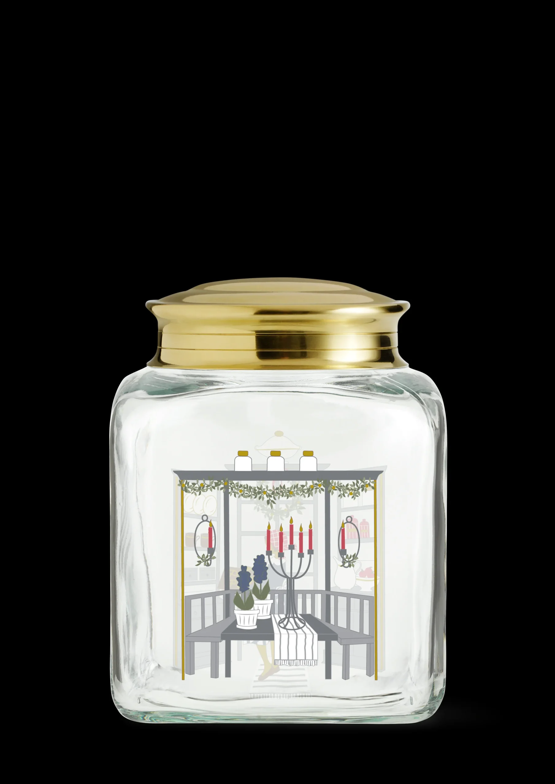 En følelse af jul som i gamle dage. Med kunstner Jette Frölichs nostalgiske og mesterlige papirklip inviterer Holmegaard Christmas dig med indenfor i julekøkkenet, der stemningsfuldt og levende rammer en nostalgisk og hyggelig julestemning. Oplev det smukke Holmegaard Christmas Julekageglas i 2024-udgaven og nyd kombinationen af Holmegaards refleksioner i glas og Jette Frölichs originale og kunstneriske univers, mens du hilser julen velkommen med familie og venner. Det 16 cm høje og meget dekorative glas er både meget æstetisk og praktisk til årets bagværk og må gerne stå fremme på køkkenbordet som en juleudsmykning i sig selv. I 2024-motivuniverset tager Jette Frölich os med ind i hjemmets hjerte: køkkenet. I december er det her, magien sker, når der skal bages julekager og laves julemad, som vi har glædet os til smagen og duften af lige siden sidste jul. Men køkkenet er ikke kun et sted, hvor alskens julelækkerier bliver frembragt. Det er også her, vi hygger os og er sammen. Det er her, vi pakker gaver ind, hvor adventskransen tændes, og hvor vi får lidt varmt at drikke, når frosten bider udenfor. Her kommer bagværket duftende ud af ovnen, mel og sukker står fremme, juleæblerne pynter i skåle, og hyggen fuldendes med hyacinter i glas og julekranse i vinduerne.