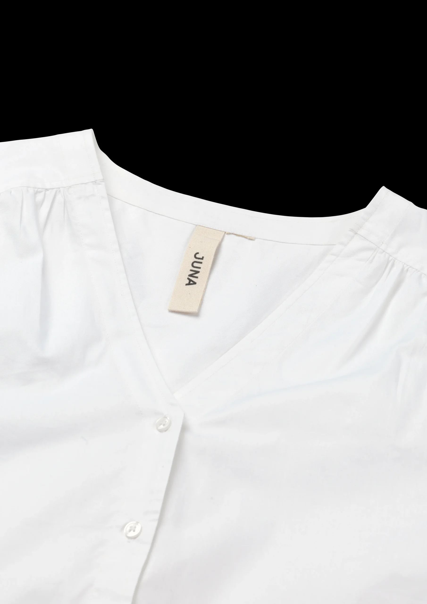 Juna Garderobe er fyldt med det fineste lette og luftige sommertøj, der både kan bruges som nattøj til de varme sommernætter og som en del af en casual sommergarderobe perfekt til lange sommerdage i haven, is på kajen og ture ud i det blå. Som en del af Junas bæredygtige designfilosofi bruges der altid overskudsstof fra produktionen af sengetøj til Juna Garderobe, og lige netop denne vævning og farve er den sidste af sin slags på Junas lager. Juna Soft har en helt unik struktur og kvalitet, der nærmest svæver over huden – stilfuldt og elegant. Stoffet kommer i hvid farve som passer til alt og er smuk mod solgylden sommerhud. Skjorten i modellen Adele har mange fine detaljer som V-neck, gennemgående knapper, læg ved skuldrene og øverst på ryggen og elastik ved ærmerne, der giver et klassisk og feminint look. Skødesløst og casual, men i et skarpt snit og en lækker stofkvalitet. Tøjet i Juna Garderobe er altid fremstillet i 100% økologisk bomuld, produceres i overensstemmelse med EU standarder og tåler maskinvask op til 40°, hvilket ikke blot er skånsomt for miljøet, men også for tøjet, som får længere levetid ved den lavere temperatur. Bemærk, at dette produkt er stor i størrelsen.