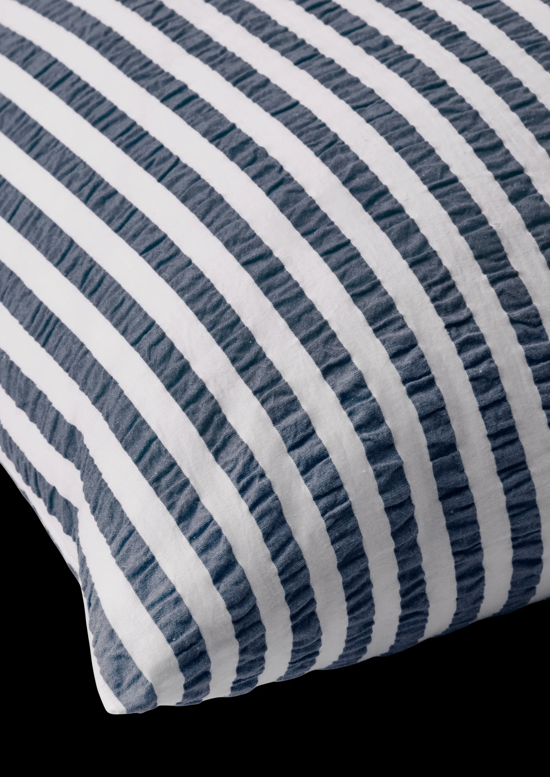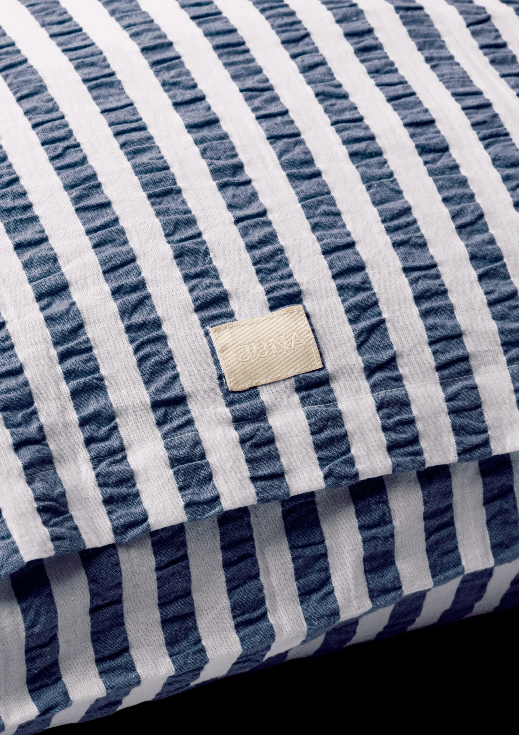 Det sæt tøj du bruger allermest tid i, er dit sengetøj. Derfor er sengetøj fra Juna skabt med intentionen om at være sanseligt, behageligt og 100% økologisk og bæredygtigt, så du trygt kan lægge dig til ro hver aften og få en god nats søvns. Juna handler om glæden ved at omgive sig med tekstiler, der gør livet smukkere, blødere, mere farverigt og sjovere. Derfor er farver og mønstre en stor del af Juna og giver sengetøjet en hyggelig og uhøjtidelig følelse. Den velkendte og klassiske stribede vævning fortolkes i en moderne farvepalet og det er netop kombinationen af det nostalgiske og nyskabende er med til at skabe en unik og glad stemning i indretningen. De stribede Bæk u0026 Bølge i mørkeblå/hvid har en skøn sommerfarve der leder tankerne hen på stribede vintage liggestole og parasoller. Pudebetrækket måler 63×60 cm, lukkes med kuvertlukning og er fremstillet i 100% økologisk bomuld, der både er OEKO-TEX®-mærket og GOTS-certificeret. Pudebetrækket lukkes med kuvertlukning. Har du flere forskellige sengesæt fra Juna, kan du mixe og matche de forskellige farver og mønstre på kryds og tværs og skabe din helt egen stil i soveværelset. Bæk u0026 Bølge er vævet, så det har en helt speciel tekstur, der lader luften cirkulere mellem huden og dynen – perfekt til de varme sommernætter. Det giver en god nats søvn, så du kan restituere og lade op til en ny dag. Og så er det ovenikøbet strygefrit, så du kan lade den lune sommervind om tørringen og lægge sengetøjet på direkte fra tørresnoren.
