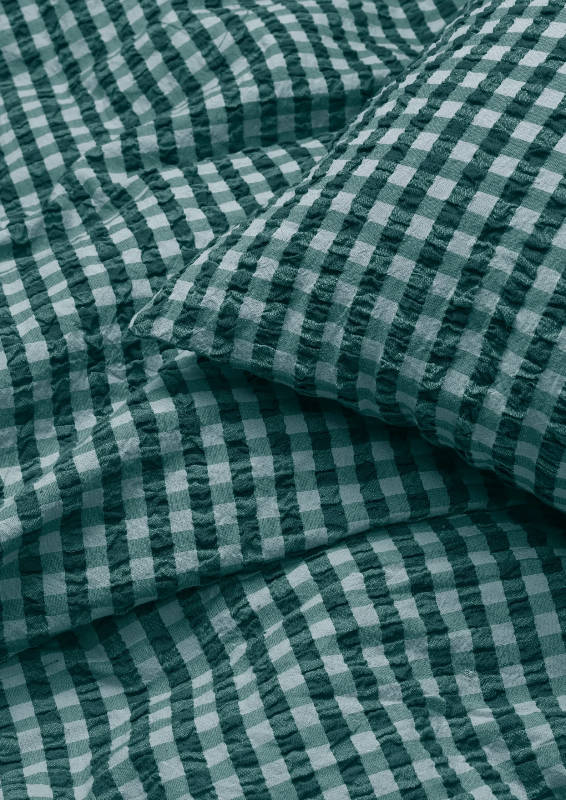Sanseligt, behageligt, 100% økologisk og GOTS-certificeret. Sengetøjet Bæku0026Bølge fra JUNA er produceret ud fra bæredygtige principper og har en helt speciel vævning med en tekstur, der vækker minder. Måske kan du huske følelsen af stoffet fra barndommen, bedsteforældrene eller sommerhusferierne? Ikke alene er der noget nostalgisk over materialet – det er også funktionelt og lader luften cirkulere mellem din hud og stoffet. Det kalder på en god nats søvn, så du kan restituere og lade op til en ny dag. Sengetøjet til almindelige dyner måler 140×200 cm og kommer i den drømmende farvekombination grøn/lys blå, der er inspireret af det nordiske vinterlandskabs helt særlige nuancer som nåletræernes stedsegrønne farvepalet og de bundfrosne søers isblå toner. Har du flere forskellige Bæku0026Bølge-sengesæt fra JUNA, kan du lege med at blande de forskellige farver og mønstre på kryds og tværs og skabe dit eget drømmende univers i soveværelset, i sofaen, i hængekøjen, på altanen, eller hvor du nu tager din dyne og pude med hen. Du kan gøre lige, hvad du drømmer om. (GOTS ”Organic” Certified by Control Union, CU1026087)