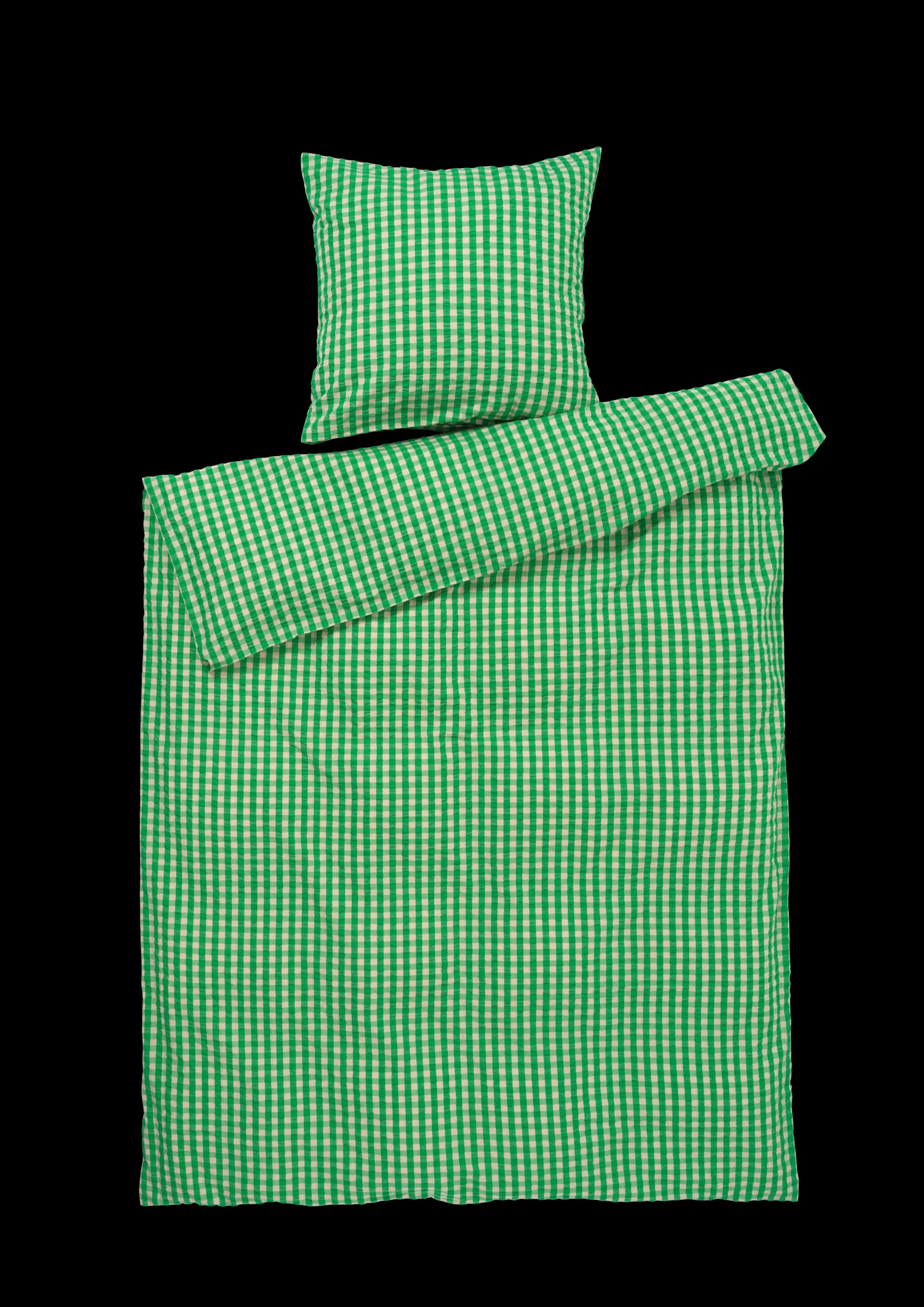 Det sæt tøj du bruger allermest tid i, er dit sengetøj. Derfor er sengetøj fra Juna skabt med intentionen om at være sanseligt, behageligt og 100% økologisk og bæredygtigt, så du trygt kan lægge dig til ro hver aften og få en god nats søvns. Juna handler om glæden ved at omgive sig med tekstiler, der gør livet smukkere, blødere, mere farverigt og sjovere. Derfor er farver og mønstre en stor del af Juna og giver sengetøjet en hyggelig og uhøjtidelig følelse. Den velkendte og klassiske ternede vævning fortolkes i en moderne farvepalet og det er netop kombinationen af det nostalgiske og nyskabende er med til at skabe en unik og glad stemning i indretningen. Den ternet Bæk u0026 Bølge i grøn/sand har en skøn friskhed og sprødhed over sig – nærmest som nyudsprungne bøgeblade. Materialet er 100% økologisk bomuld, der både er OEKO-TEX®-mærket og GOTS-certificeret. Pudebetrækket lukkes med kuvertlukning, mens dynebetrækket lukkes med knaplukning. Har du flere forskellige sengesæt fra Juna, kan du mixe og matche de forskellige farver og mønstre på kryds og tværs og skabe din helt egen stil i soveværelset. Bæk u0026 Bølge er vævet, så det har en helt speciel tekstur, der lader luften cirkulere mellem huden og dynen – perfekt til de varme sommernætter. Det giver en god nats søvn, så du kan restituere og lade op til en ny dag. Og så er det ovenikøbet strygefrit, så du kan lade den lune sommervind om tørringen og lægge sengetøjet på direkte fra tørresnoren. Sengesættet består af 1 dynebetræk på 140×220 cm og 1 pudebetræk på 60×63 cm