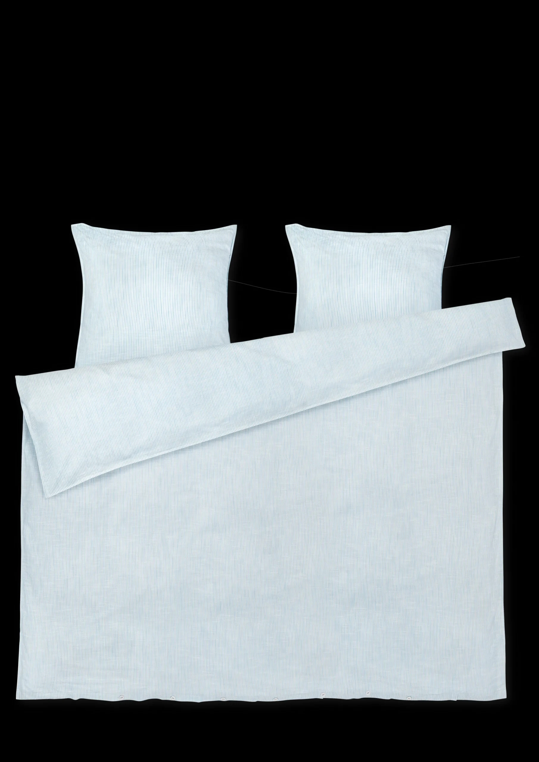 JUNA Monochrome Lines Sengetøj 200×220 cm lys blå/hvid