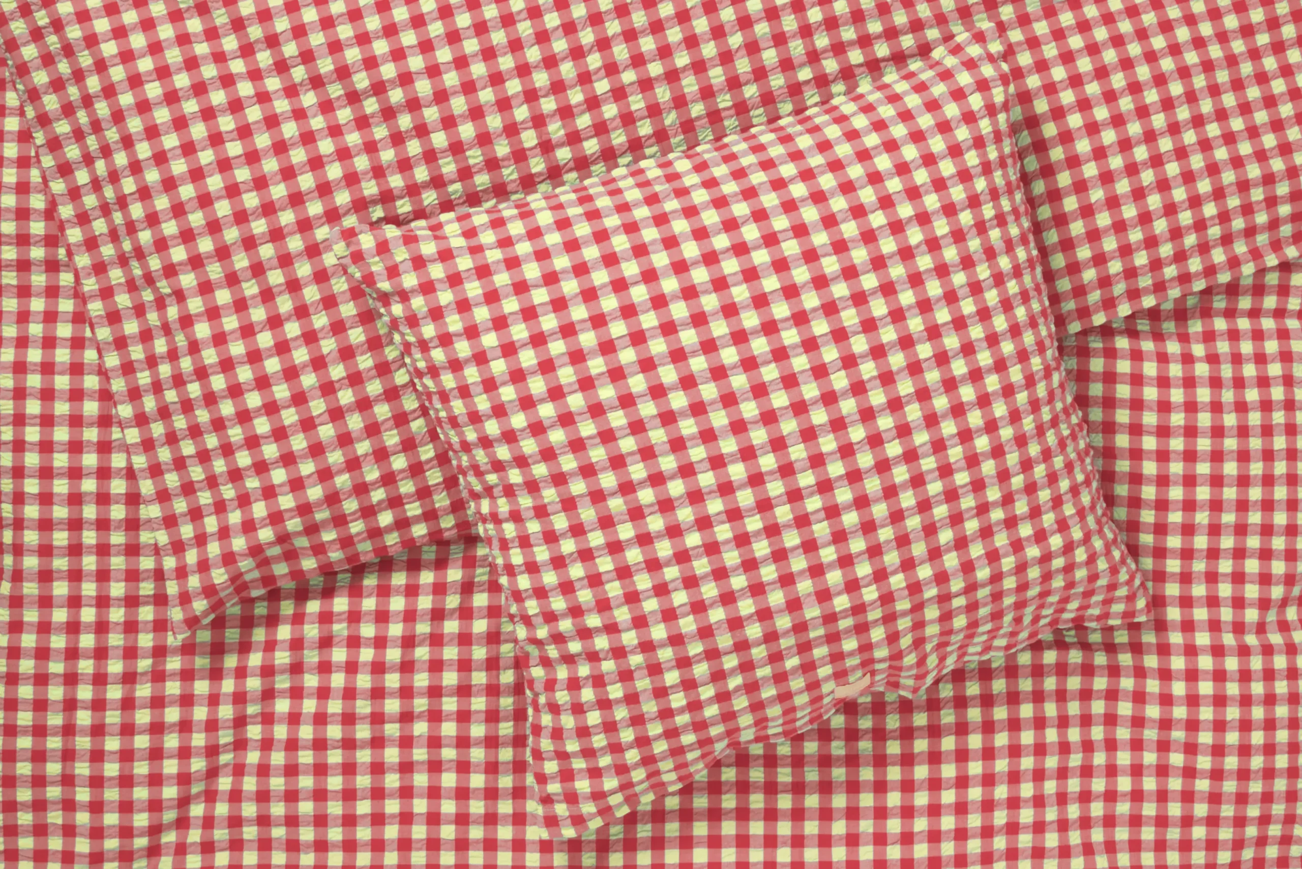 Sanseligt, behageligt, 100% økologisk og GOTS-certificeret. Sengetøjet Bæku0026Bølge fra JUNA er produceret ud fra ansvarlige principper og har en helt speciel vævning med en tekstur, der vækker minder. Måske kan du huske følelsen af stoffet fra barndommen, bedsteforældrene eller sommerhusferierne? Ikke alene er der noget nostalgisk over materialet – det er også funktionelt og lader luften cirkulere mellem din hud og stoffet. Det kalder på en god nats søvn, så du kan restituere og lade op til en ny dag. Bæku0026Bølge har det helt rigtige casual og naturlige udtryk, der præger tidens mode og indretningstrends. Uperfekt på den helt perfekte måde. Sengetøjet til dobbeltdyne med ekstra længde måler 200×220 cm og kommer i farvekombinationen rød/gul, der fortæller historien om lækre farver fra sommerens solnedgange ved havet eller en panna cotta-dessert med nyplukkede hindbær. Med den friske og revitaliserende røde farve sat sammen med en lys gul får du tilført masser af sommerstemning, der giver energi og livsglæde til soveværelset. Sæsonfarver, men alligevel så gennemført klassiske, at det nye JUNA-sengetøj sagtens kan bruges året rundt. Og år efter år. Har du flere forskellige Bæku0026Bølge-sengesæt fra JUNA, kan du lege med at blande de forskellige farver og mønstre på kryds og tværs og skabe dit eget drømmende univers i soveværelset, i sofaen, i hængekøjen, på altanen, eller hvor du nu tager din dyne og pude med hen. Du kan gøre lige, hvad du drømmer om. (GOTS ”Organic” Certified by Control Union, CU1026087)