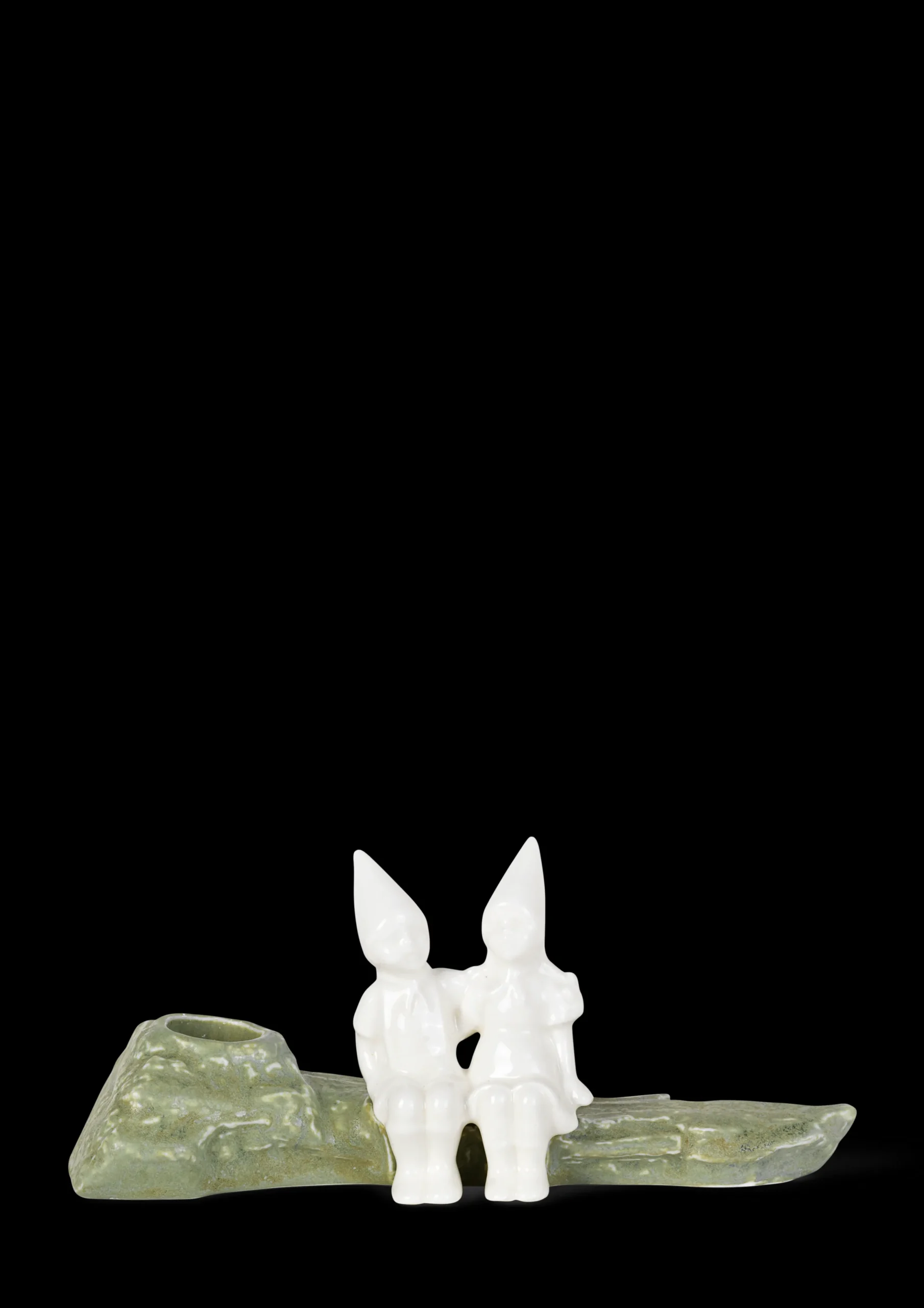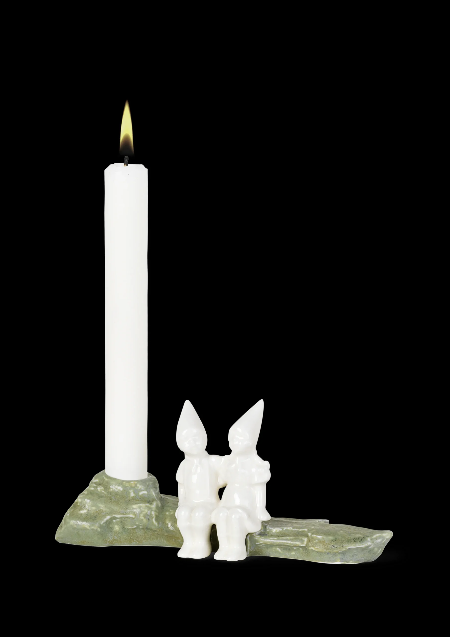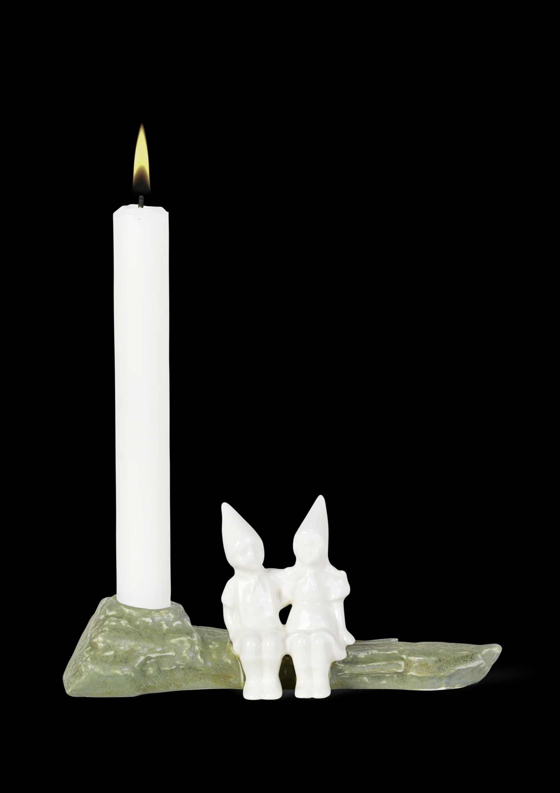 De dekorative porcelænsfigurer i Christmas Tales kollektionen er fulde af julemagi. De er inspireret af gamle julefortællinger, og hver af dem fortæller en historie med elementer fra den smukke nordiske natur. Formerne er skabt ved afstøbninger fra naturens overflader og træstubbe, hvilket skaber en smuk kontrast til de stilistiske figurer. De to venners kram viser os, at omsorg og nærhed er to af de vigtigste elementer i en glædelig jul. Lad et lys fuldende den kærlige atmosfære.